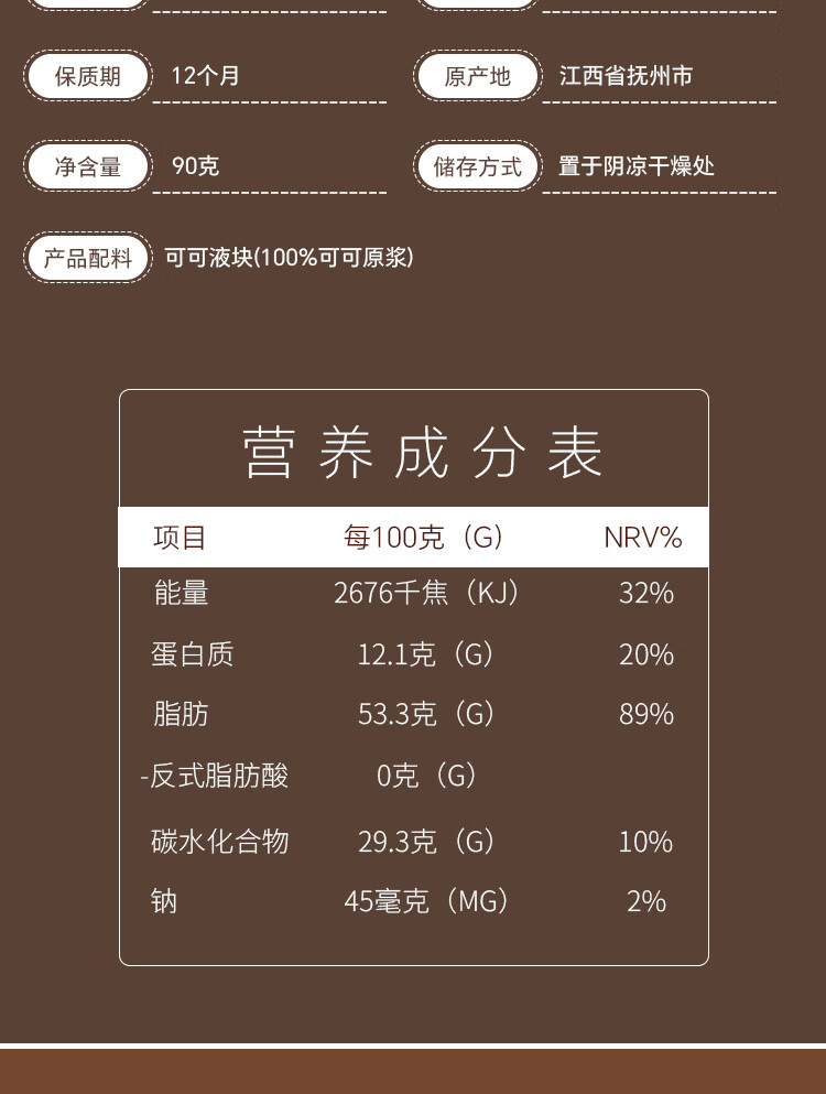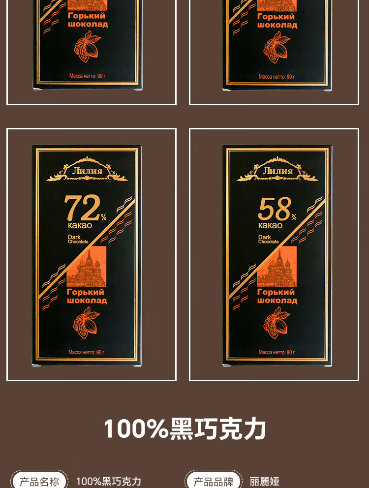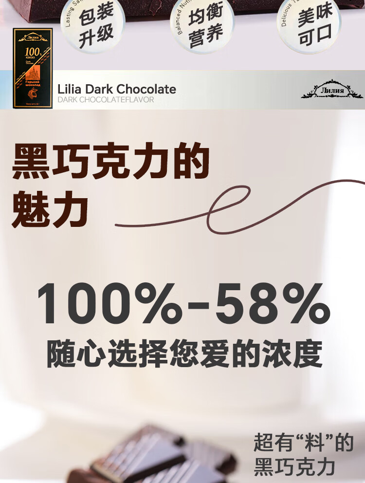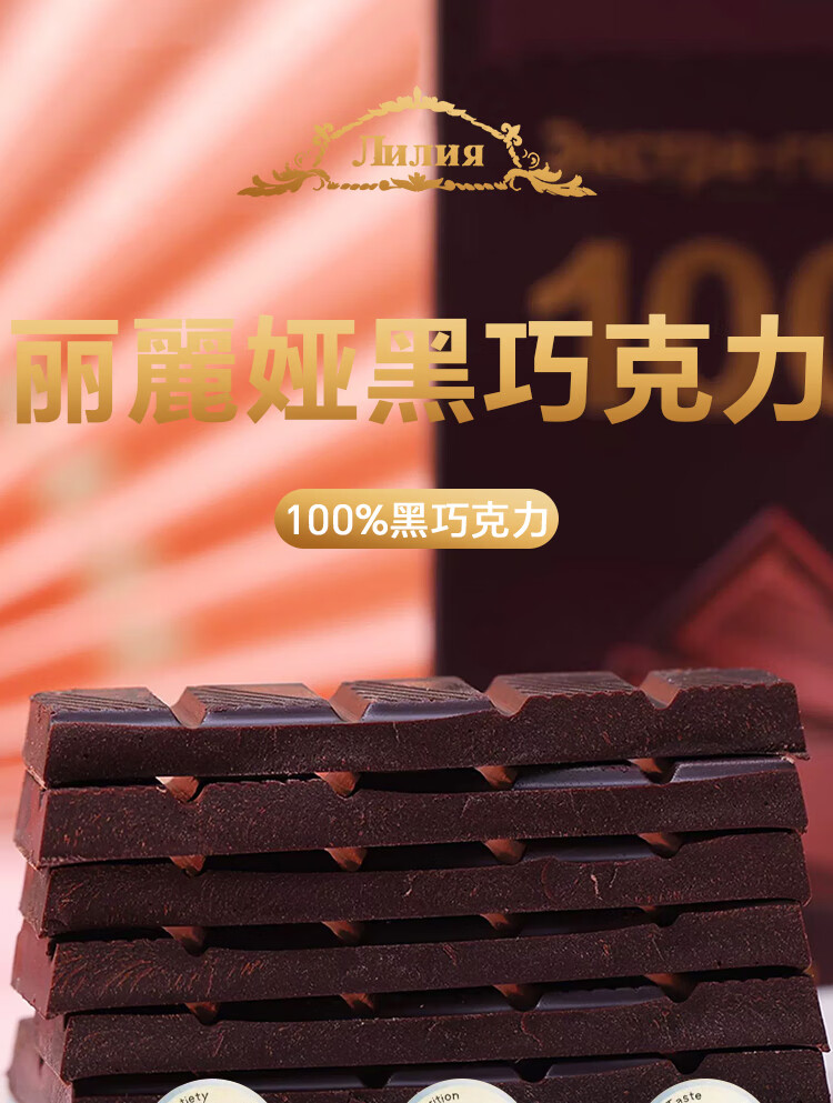 丽丽娅100%纯黑巧克力90g 健身食品 网红休闲零食 苦味美食