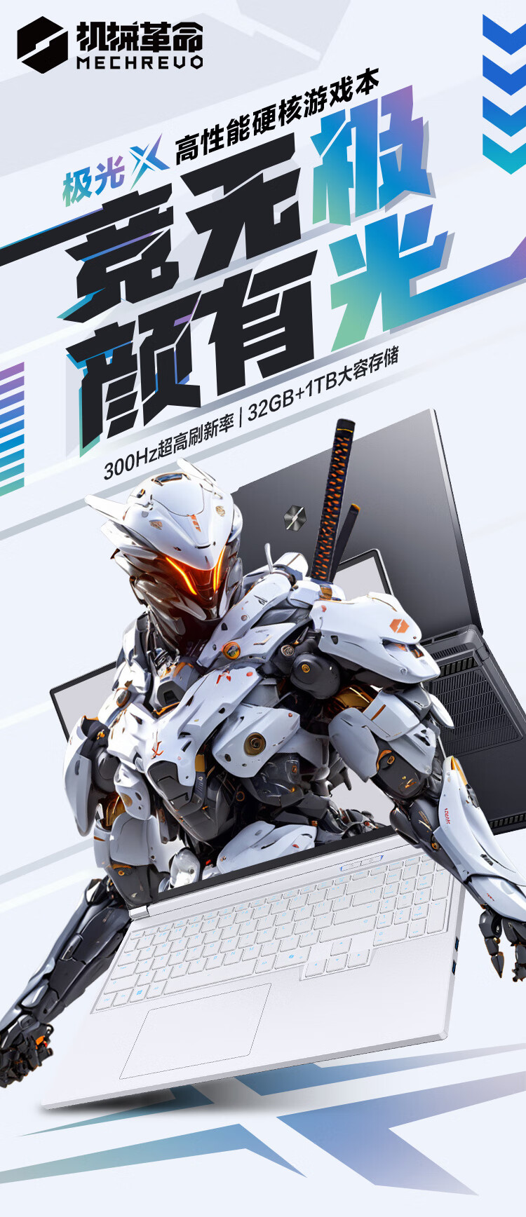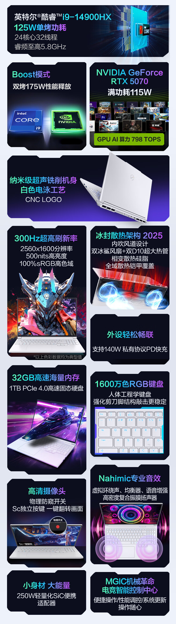 机械革命极光X 酷睿i9HX 游戏本笔记本电脑(i9-14900HX 32G 1T RTX5070 2.5K屏 300Hz 白)