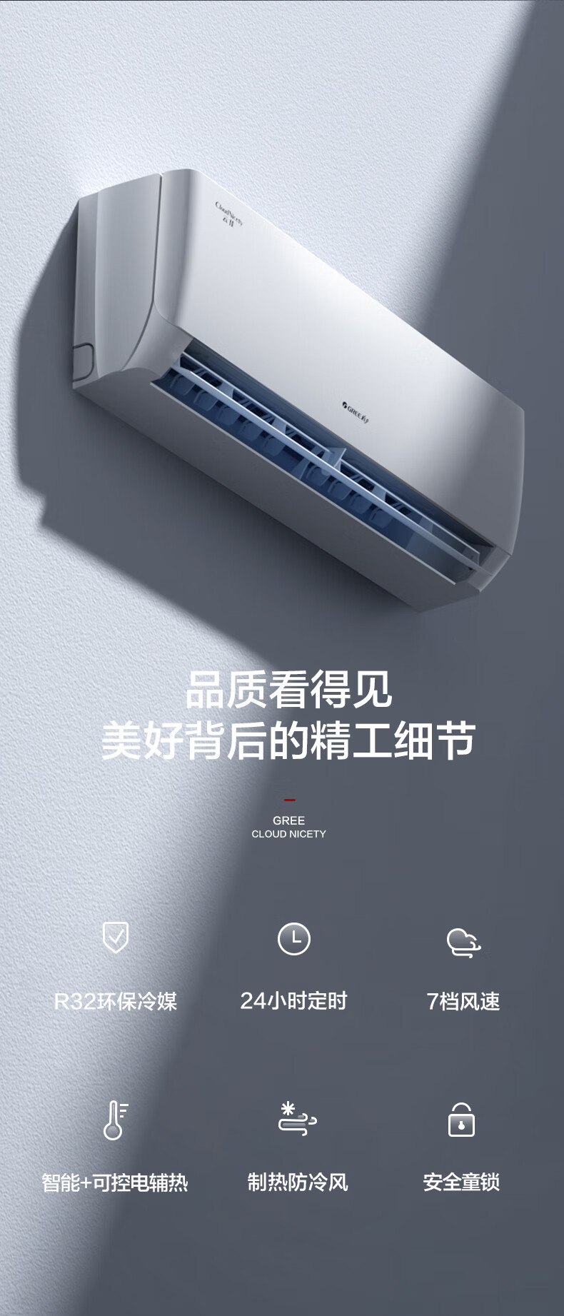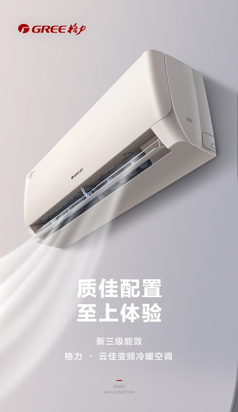 格力(GREE)空调 云佳 天仪 大1匹/1.5匹新一级能效变频冷暖净菌自清洁家用壁挂式空调挂机 以旧换新 国家补贴 大1匹一级能效丨天仪-性价比款 (皓雪白)
