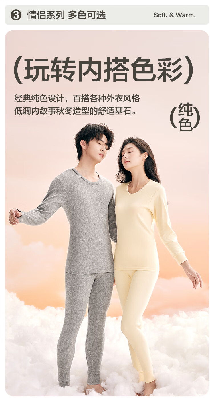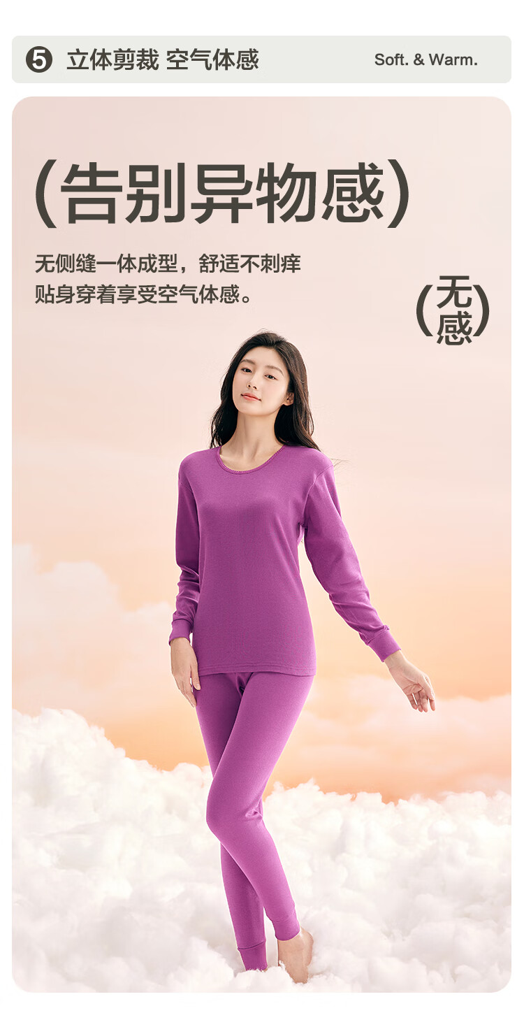 红豆内衣女7A抑菌升级秋衣秋裤纯棉套装圆领薄款打底保暖内衣