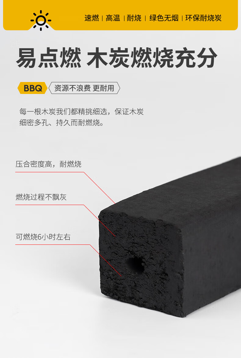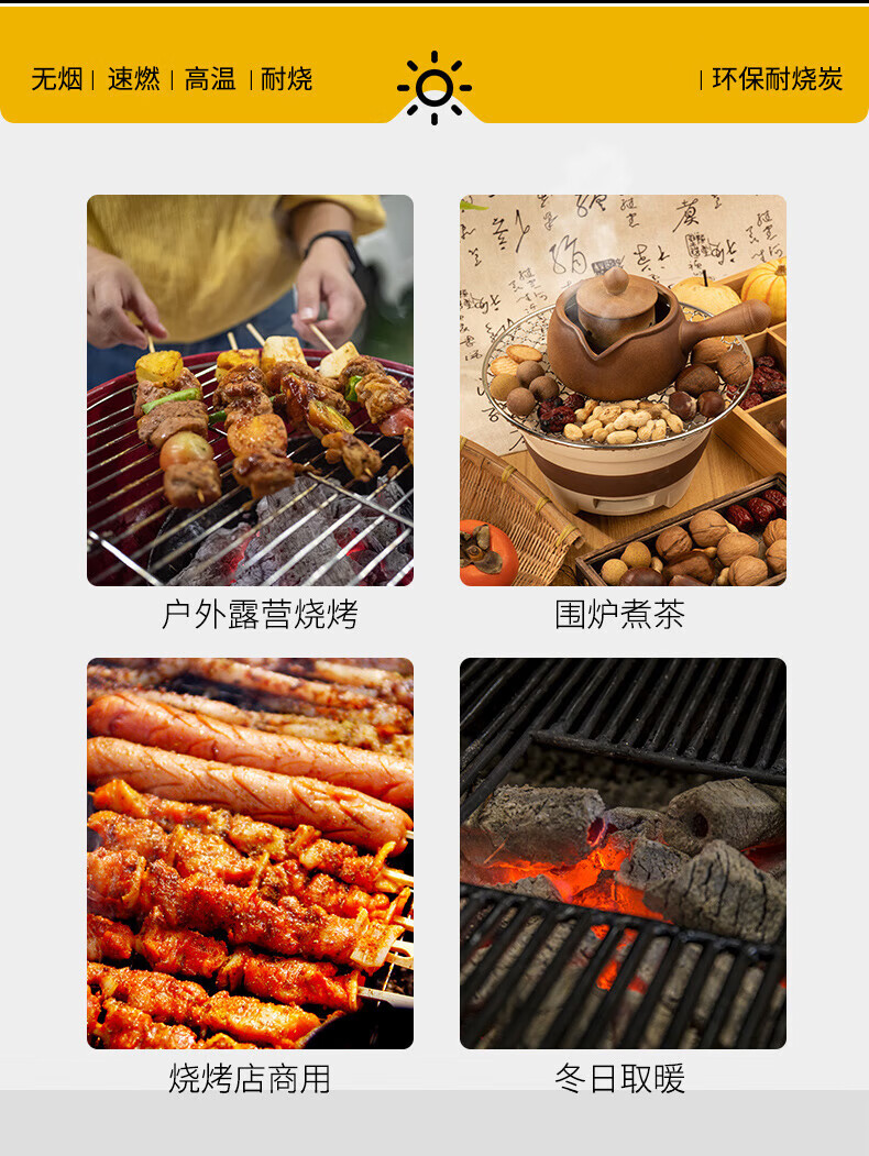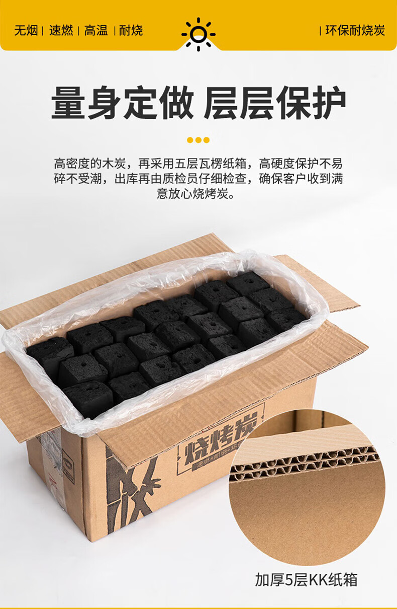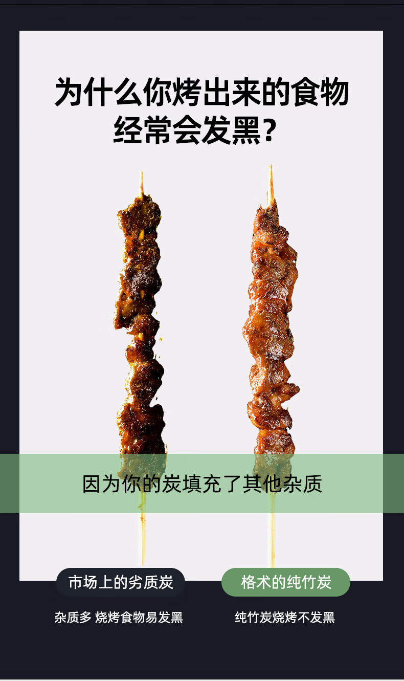 格术烧烤炭 烧烤木炭无烟速燃竹炭 取暖烤火炉围炉煮茶炭火锅木碳5斤