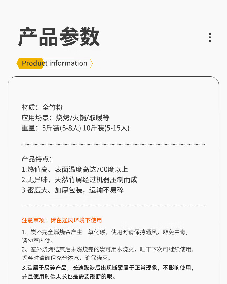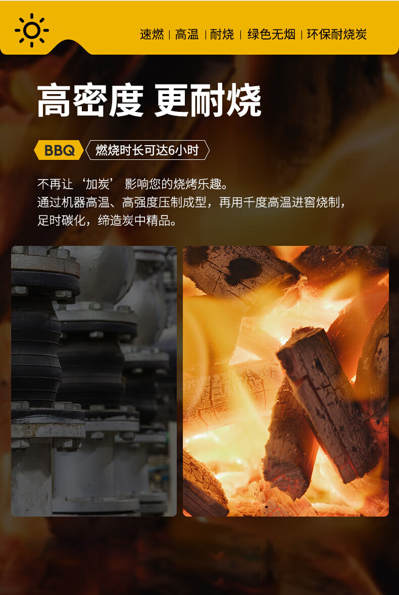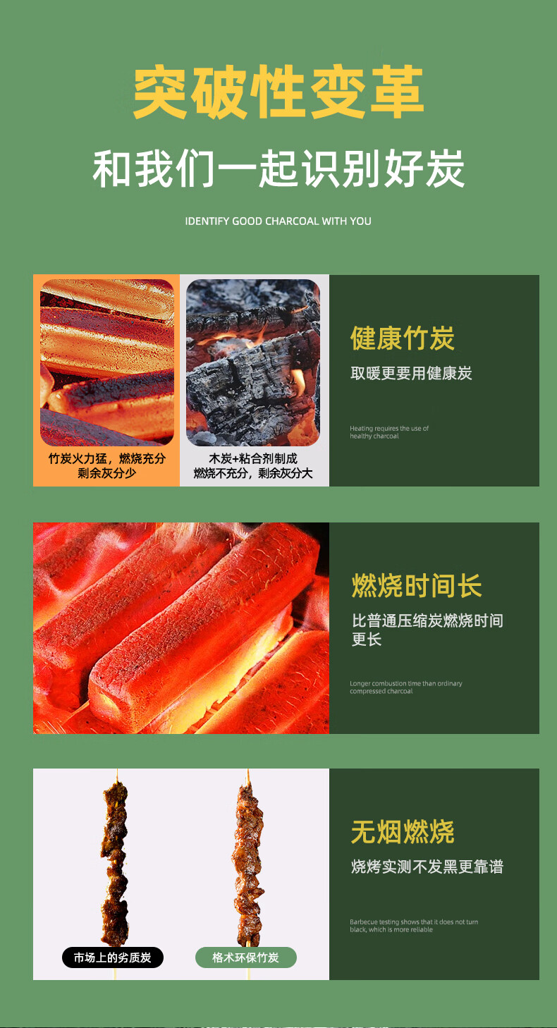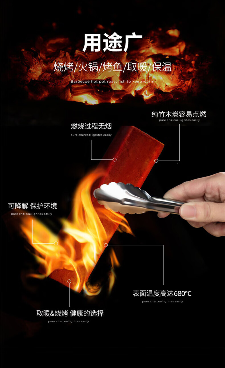 格术烧烤炭 烧烤木炭无烟速燃竹炭 取暖烤火炉围炉煮茶炭火锅木碳5斤