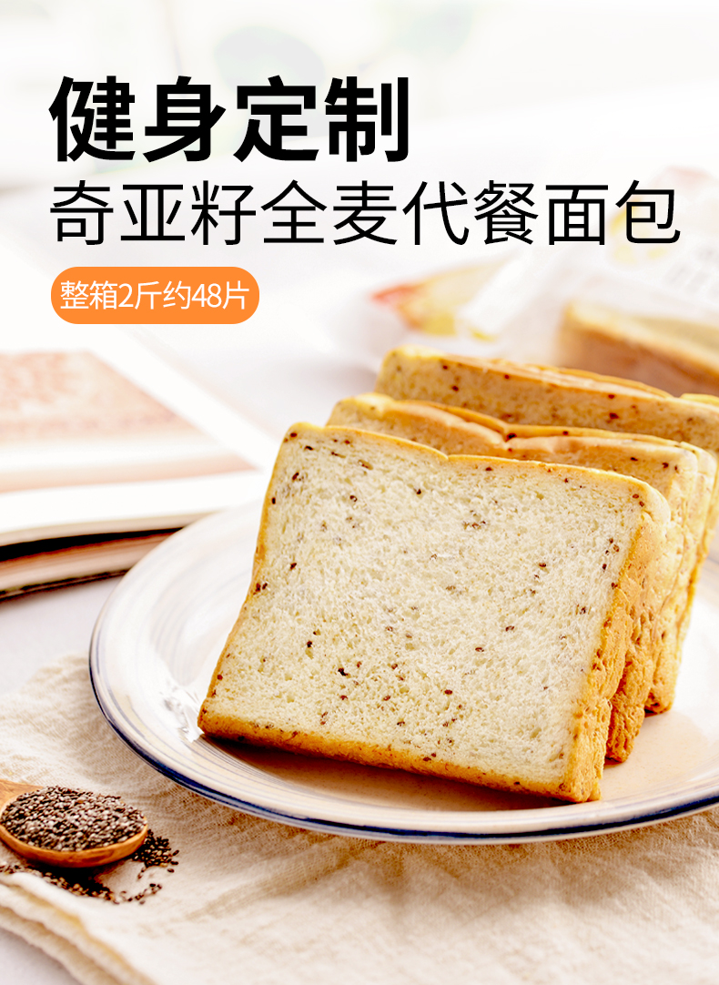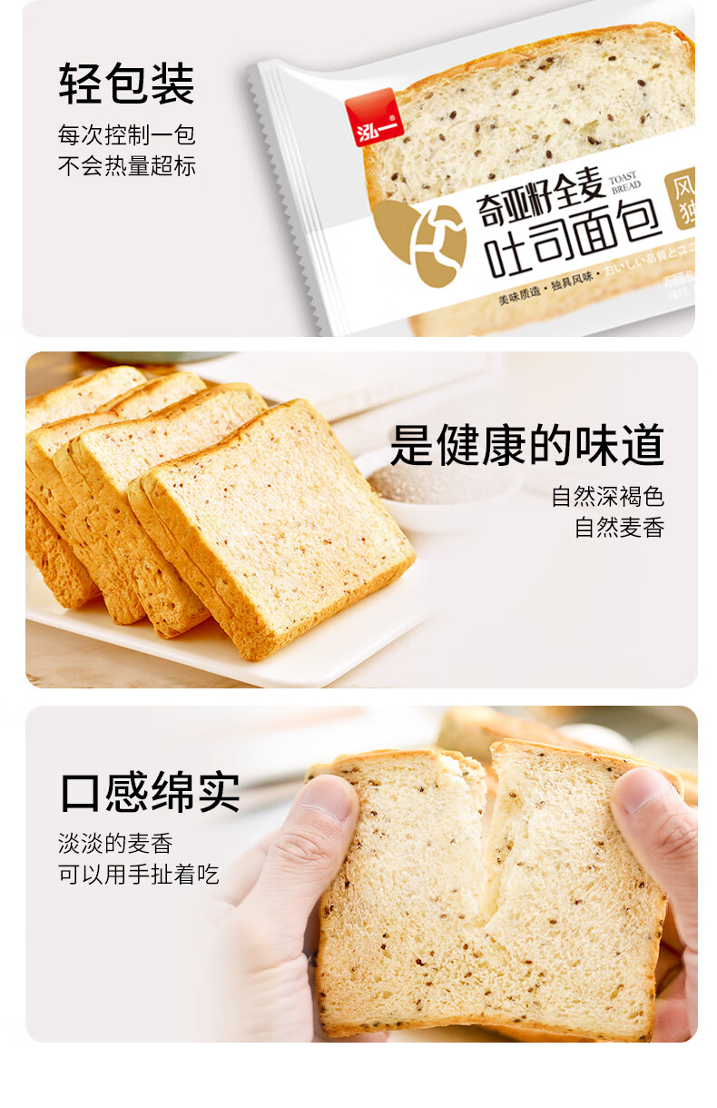 泓一 奇亚籽面包无蔗糖粗粮健身下午茶充饥夜宵早餐食品吐司 奇亚籽吐司面包1000g