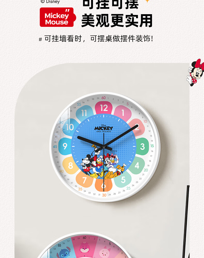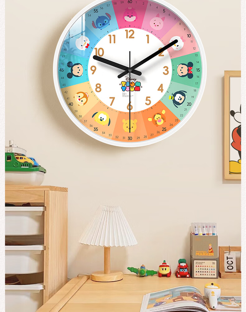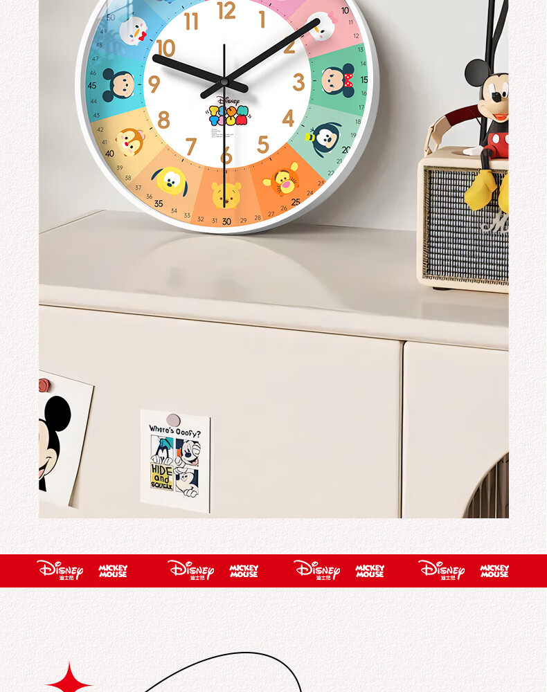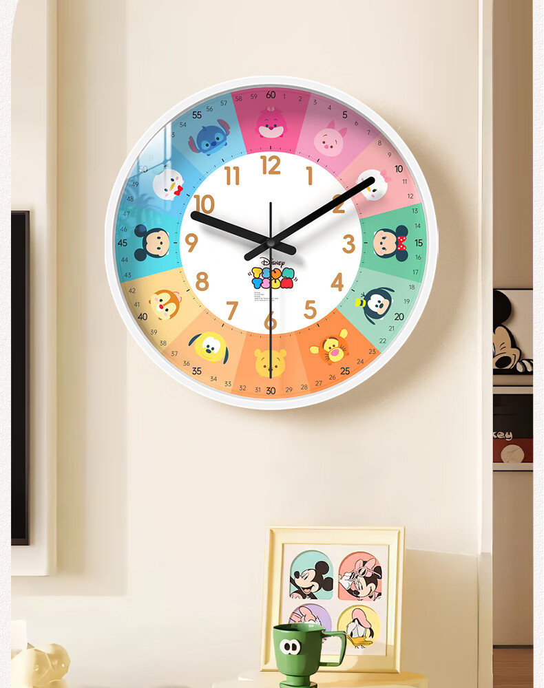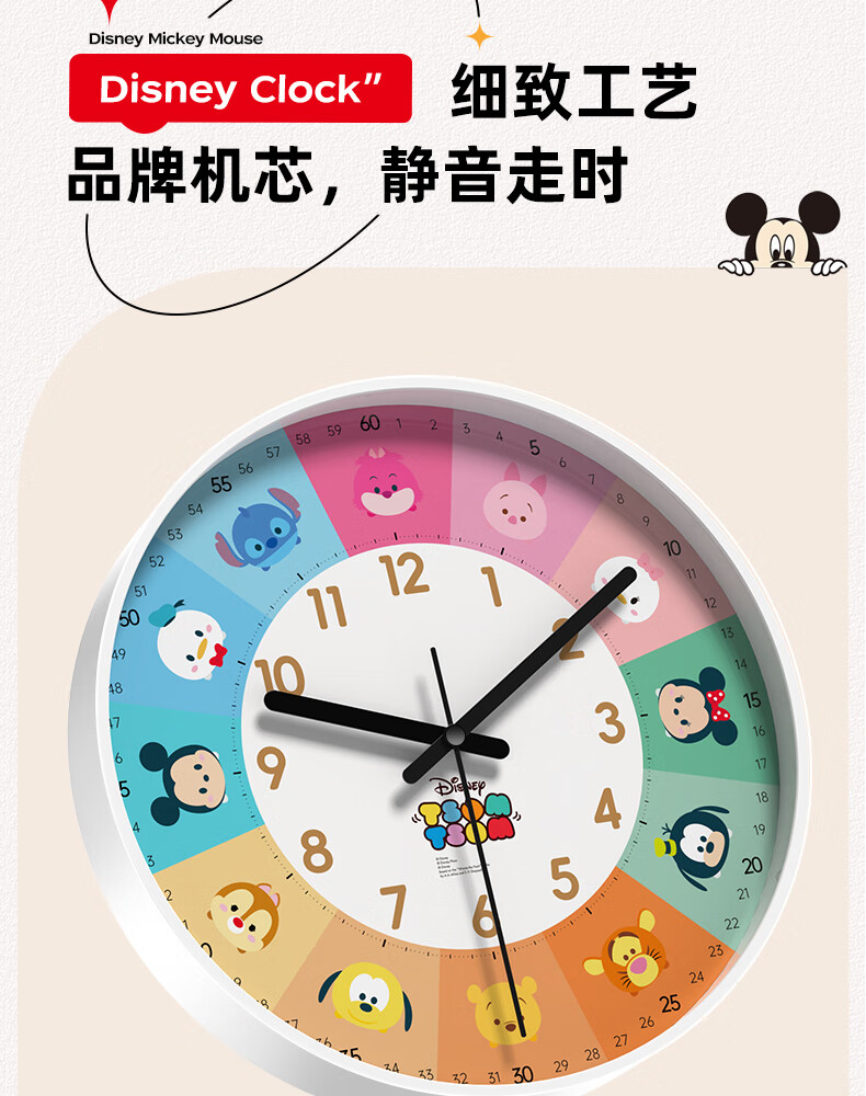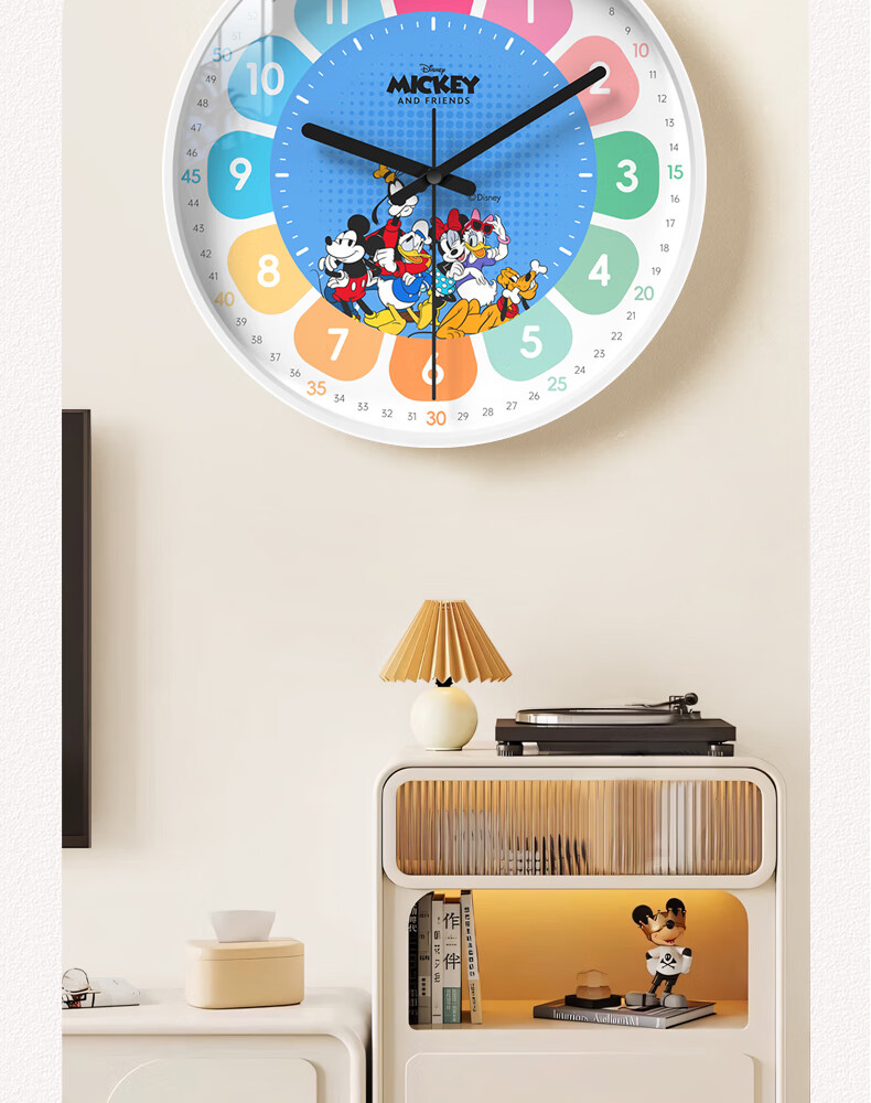 Timess迪士尼联名款创意卡通钟表客厅家用时钟早教儿童房卧室挂钟30.5cm
