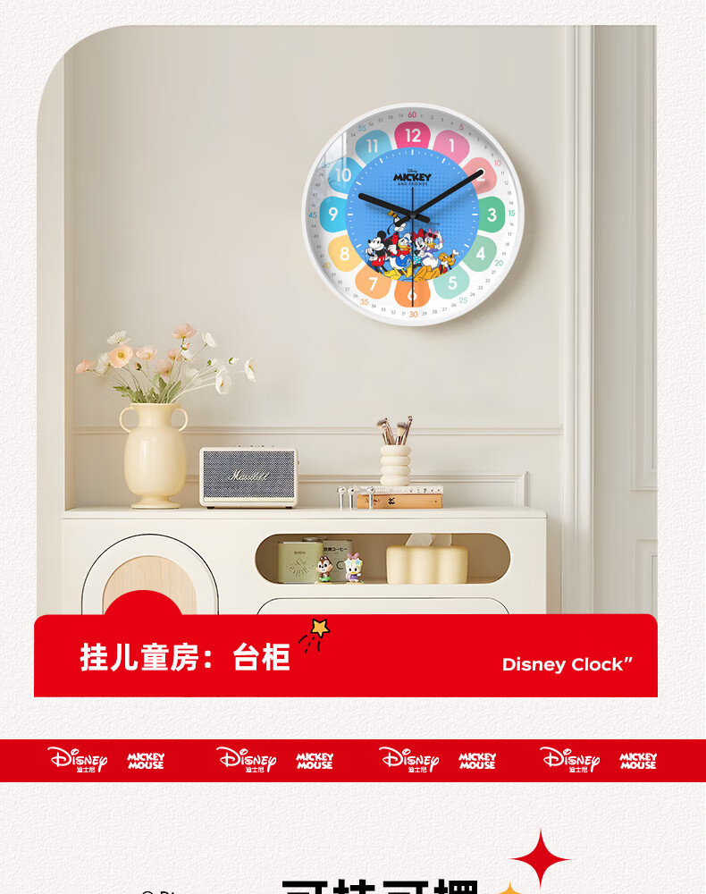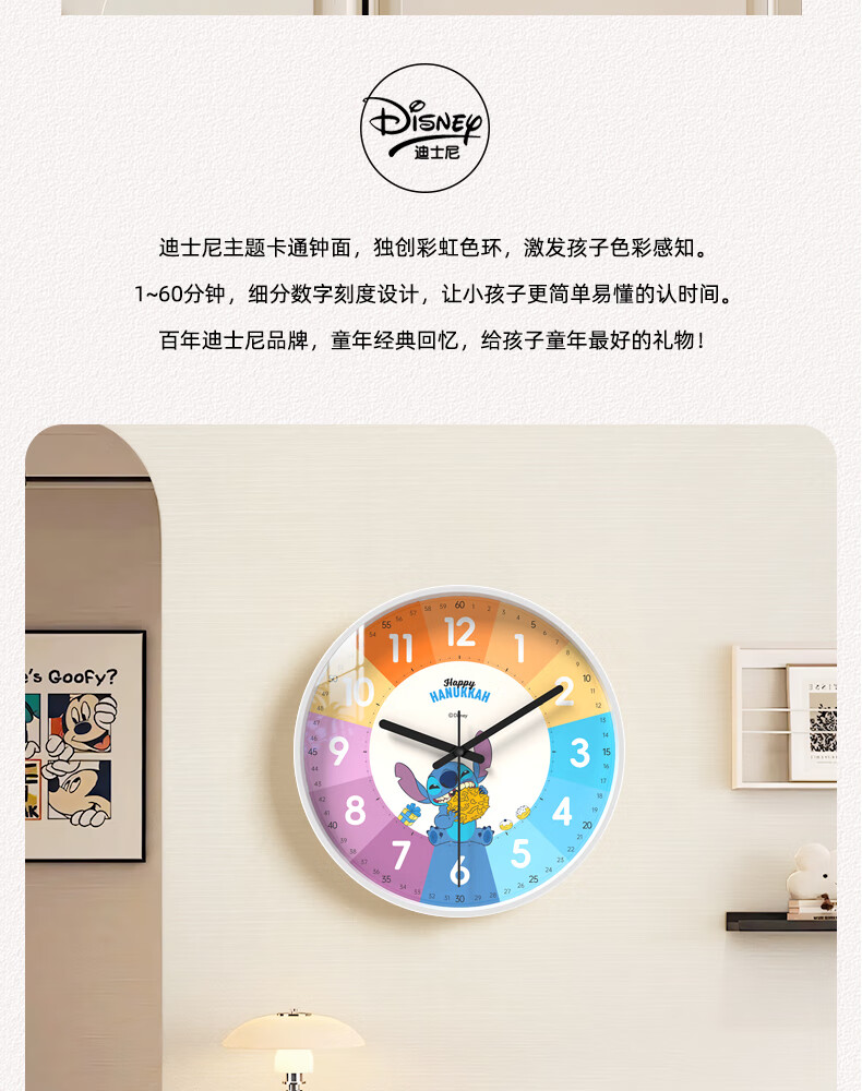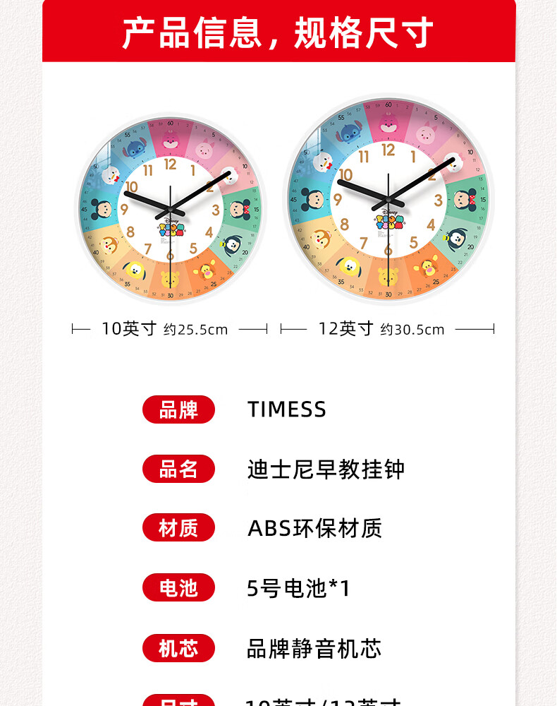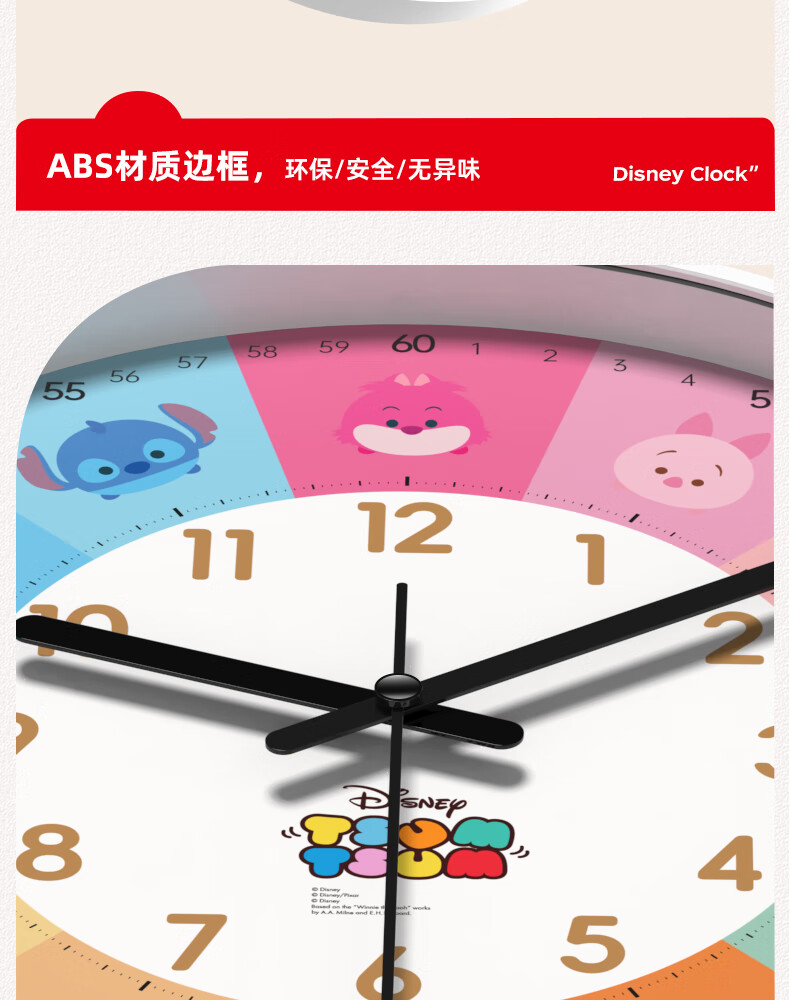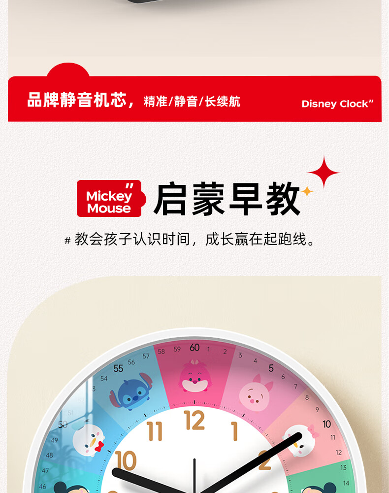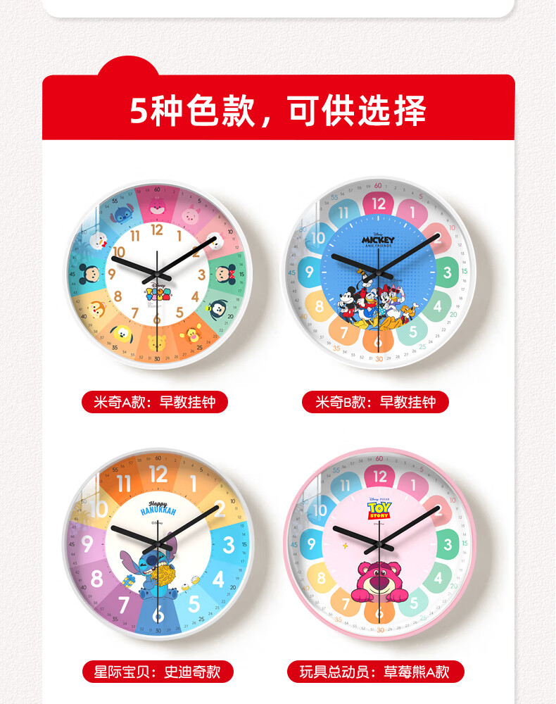 Timess迪士尼联名款创意卡通钟表客厅家用时钟早教儿童房卧室挂钟30.5cm