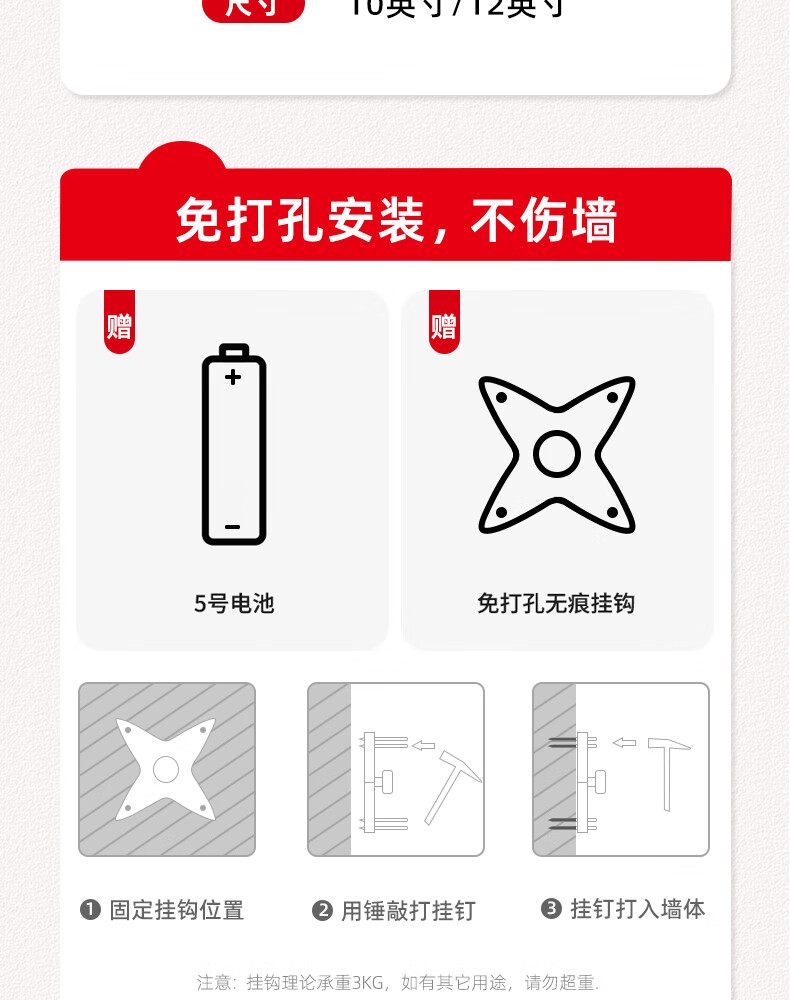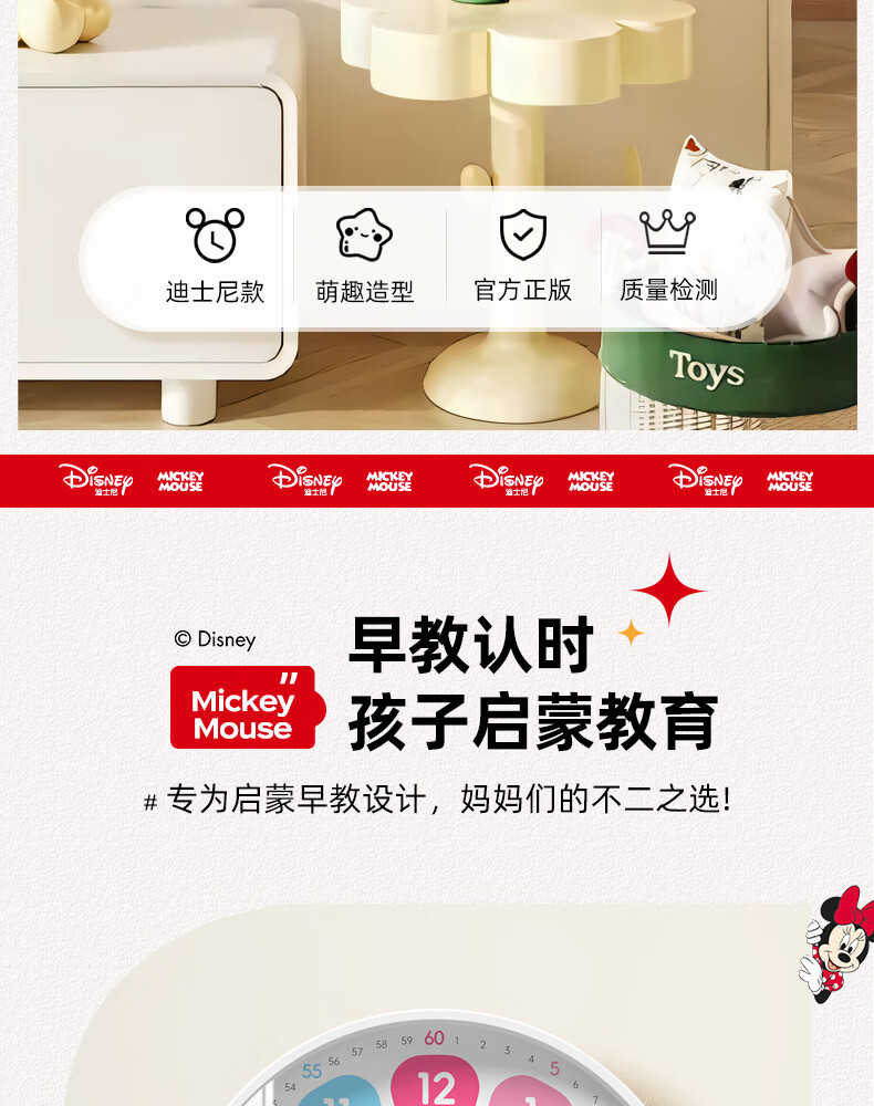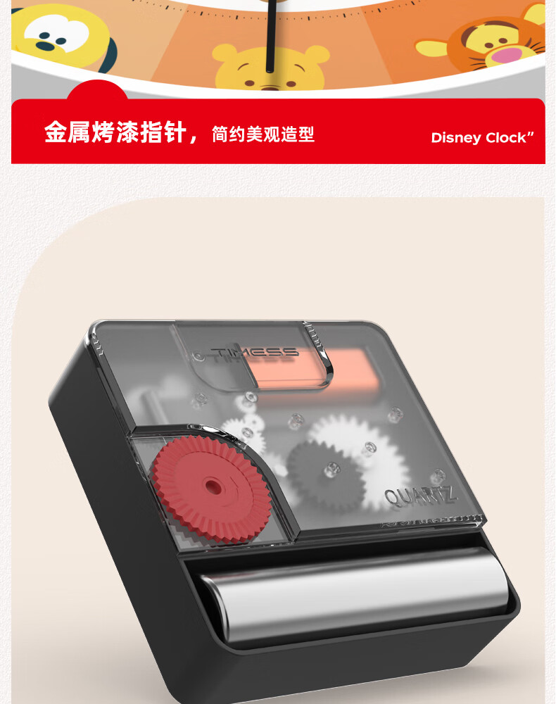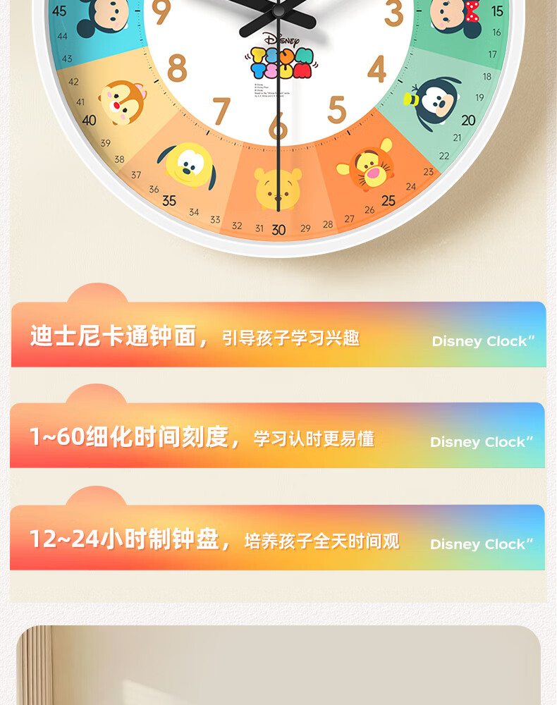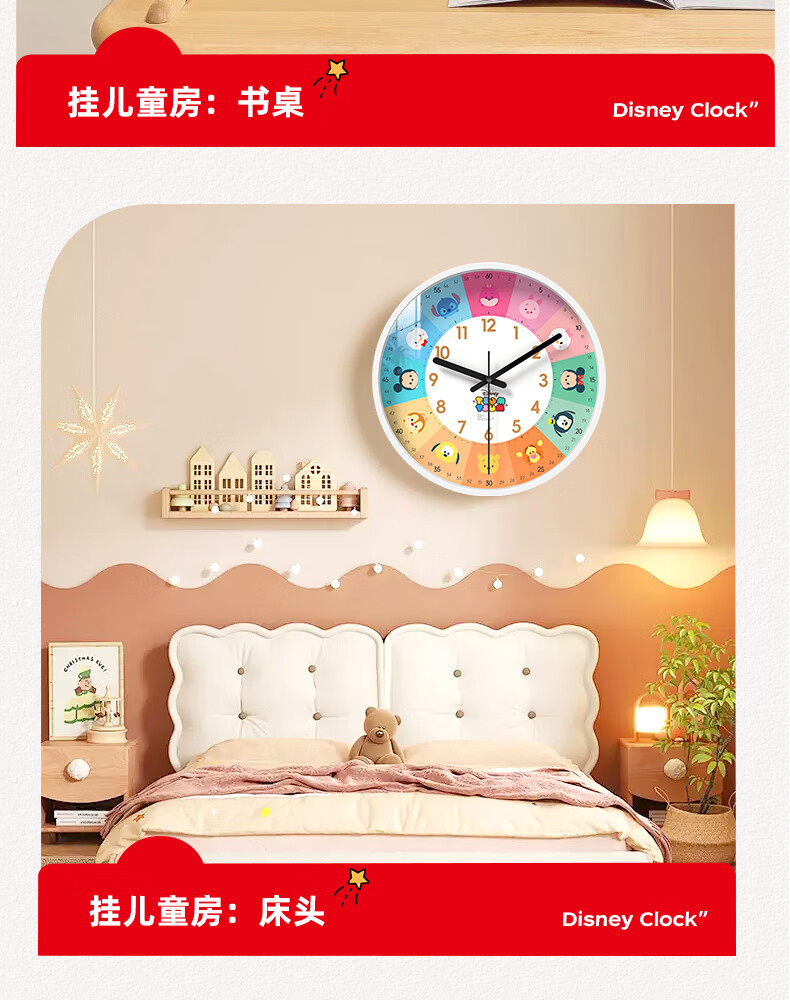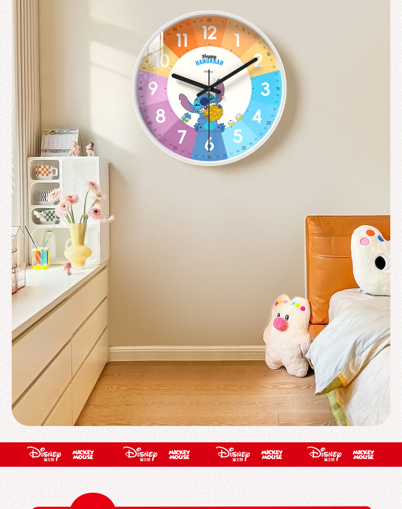 Timess迪士尼联名款创意卡通钟表客厅家用时钟早教儿童房卧室挂钟30.5cm