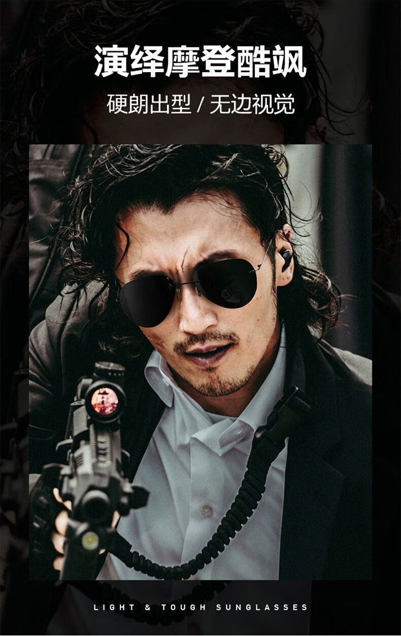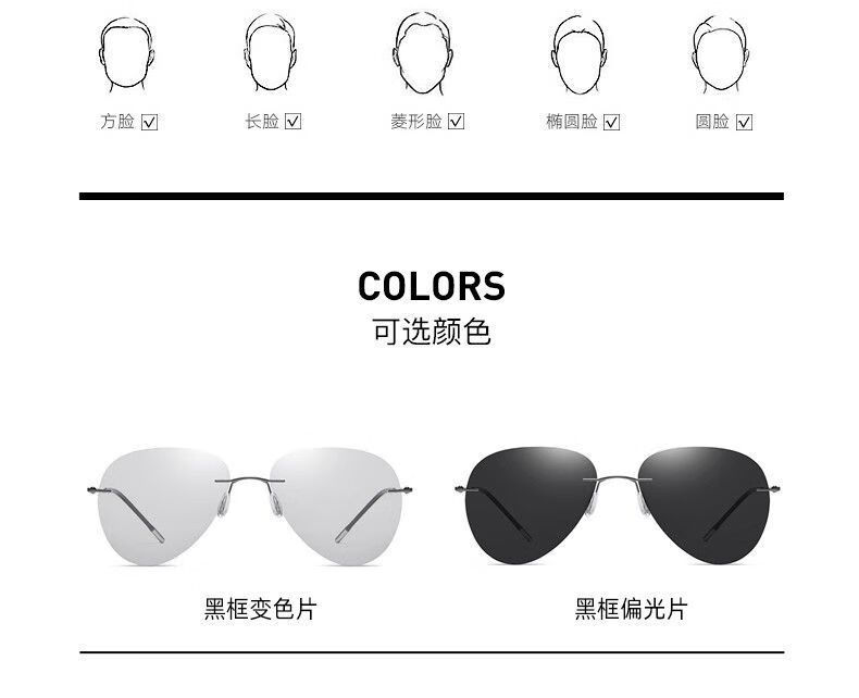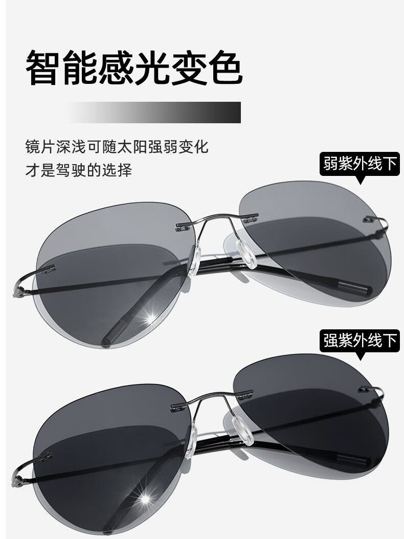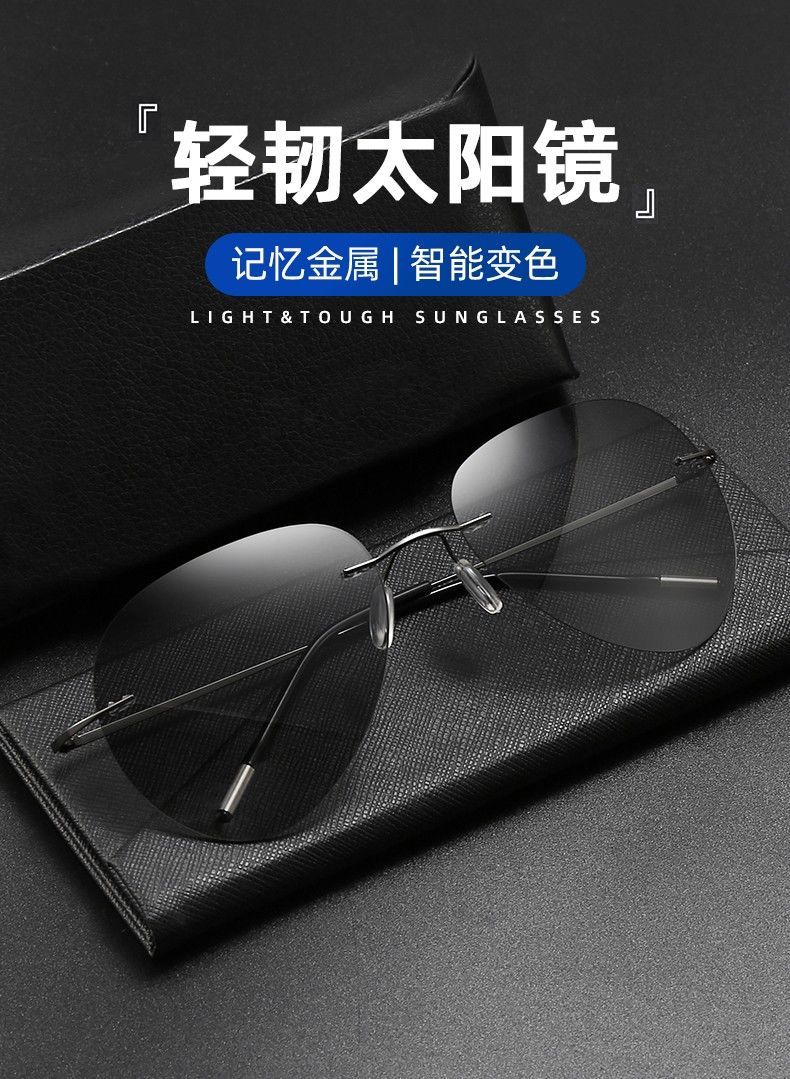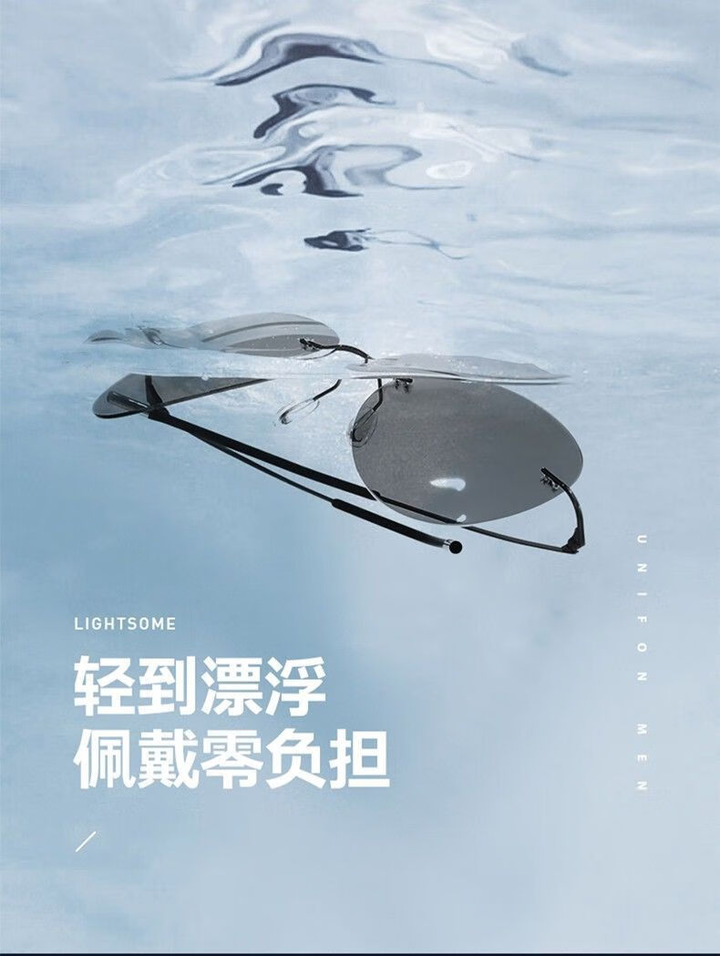 LESCA LUNETIER超轻墨镜无框偏光太阳镜男开车专用不变色驾驶眼镜钓鱼飞行员圆形