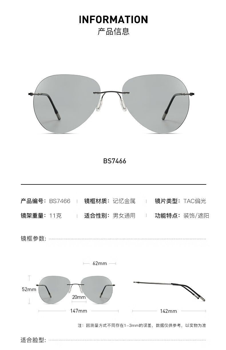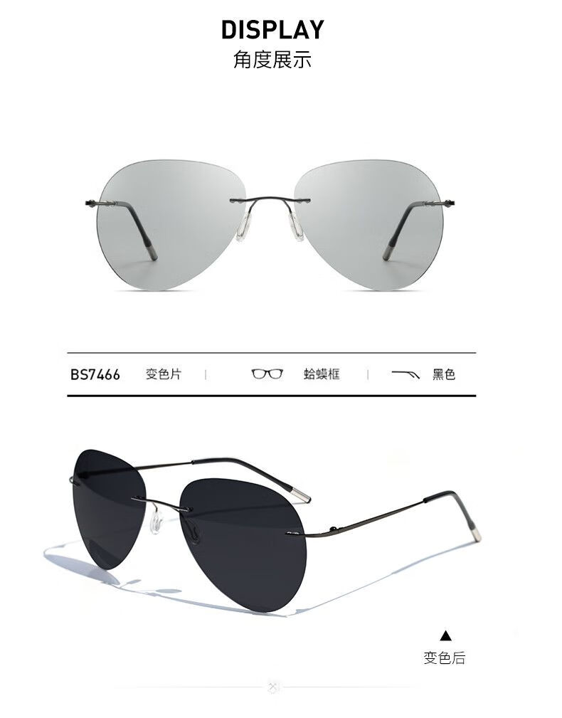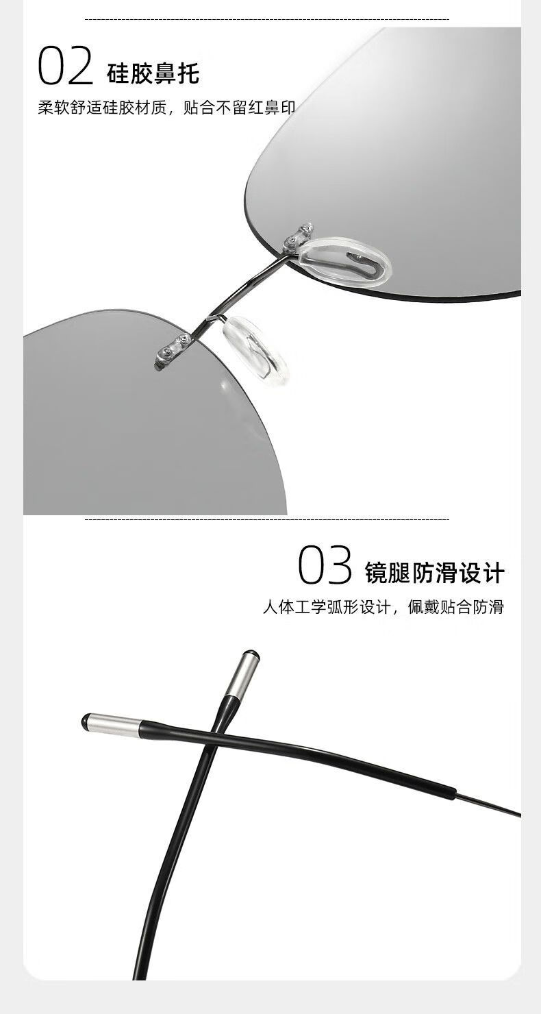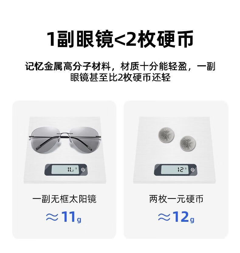 LESCA LUNETIER超轻墨镜无框偏光太阳镜男开车专用不变色驾驶眼镜钓鱼飞行员圆形
