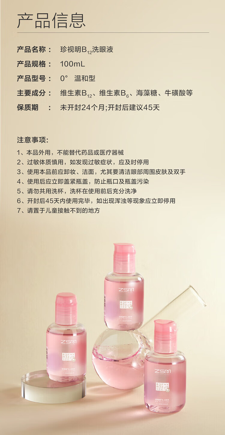 珍视明B12洗眼液洗眼水清洁眼睛滋润眼部护理液 温和型100ml 1瓶