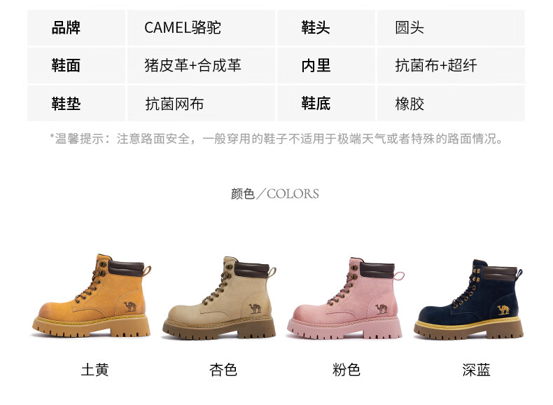 骆驼(CAMEL)马丁靴女2025秋季新款厚底户外徒步登山鞋短靴工装大黄靴 L25W076081土黄 38