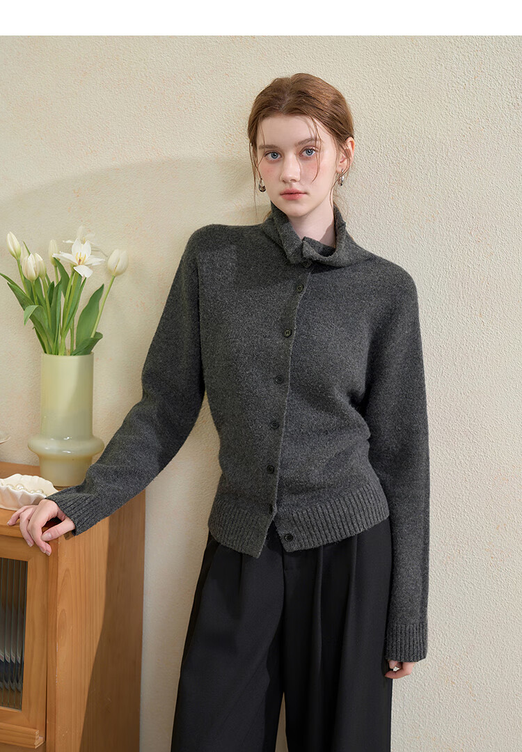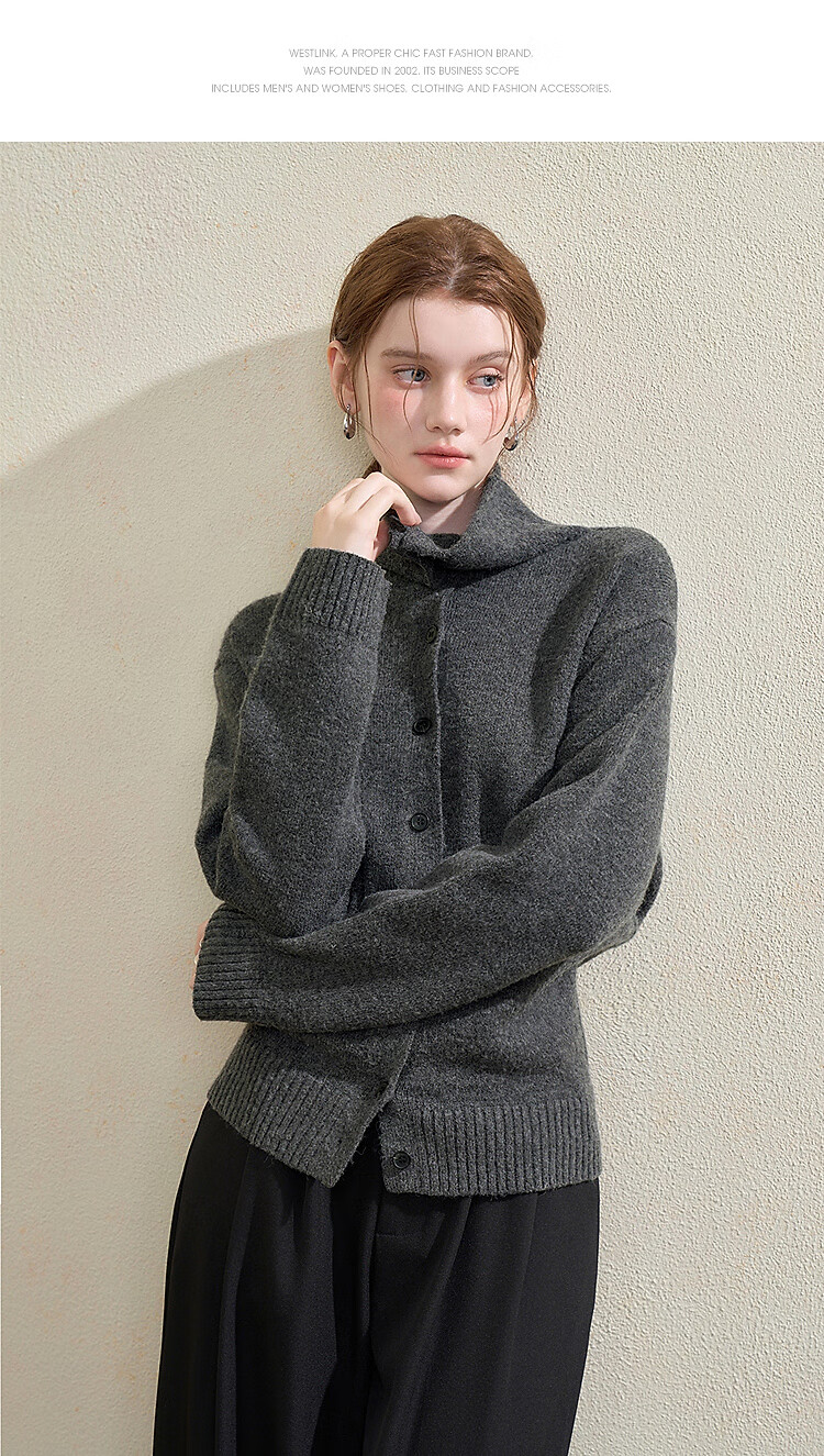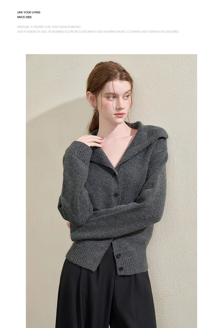 西遇(Westlink)韩系高级感单排扣毛衣外套女2025秋季复古百搭通勤针织开衫 灰色 (预售9月25日) M (160)