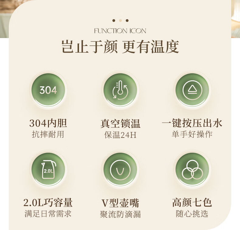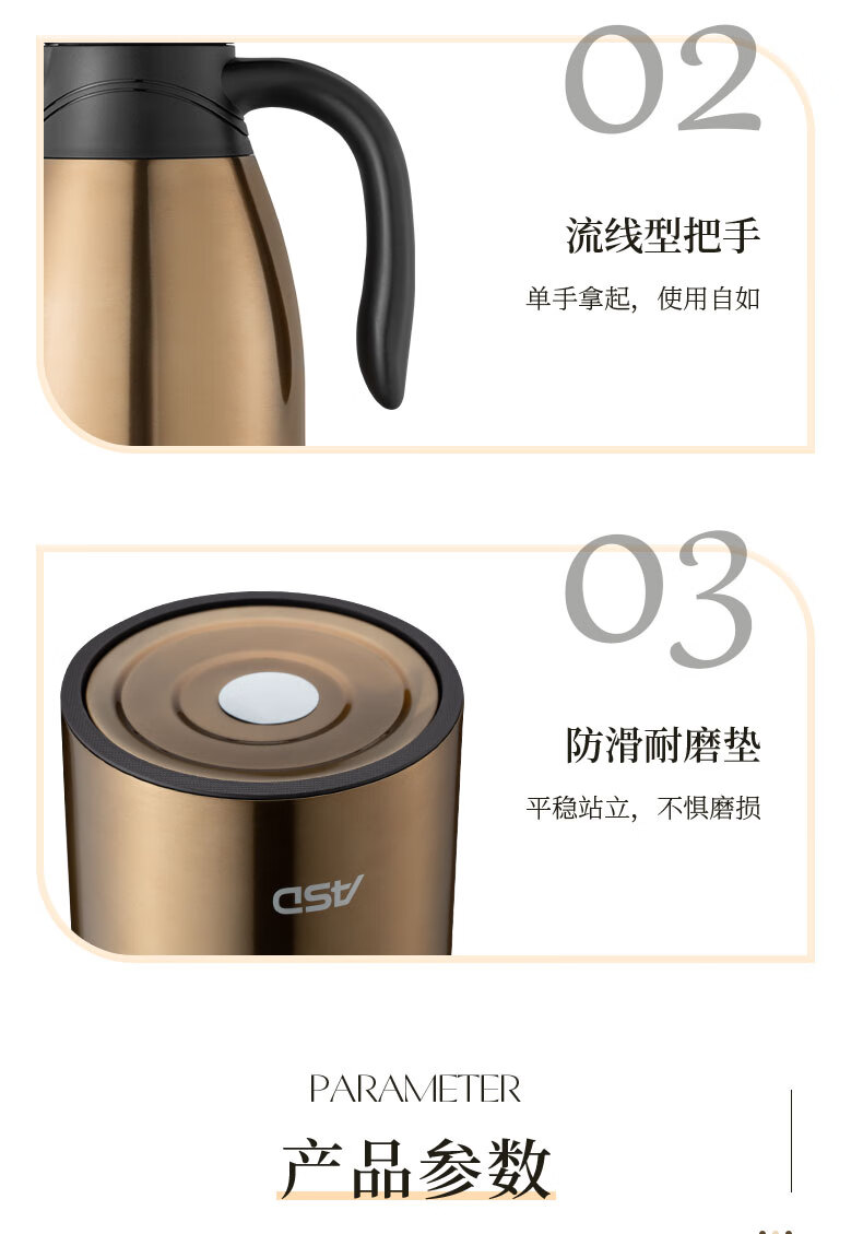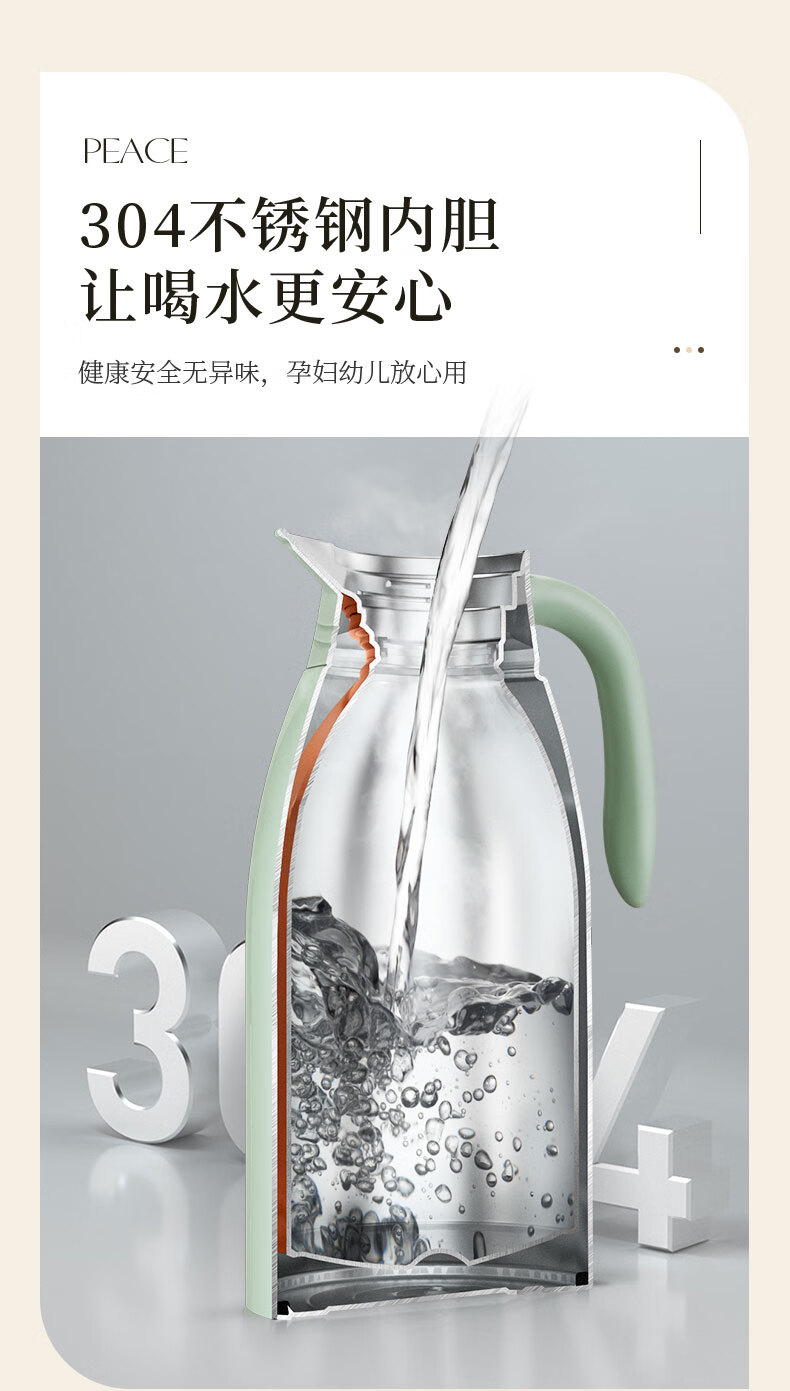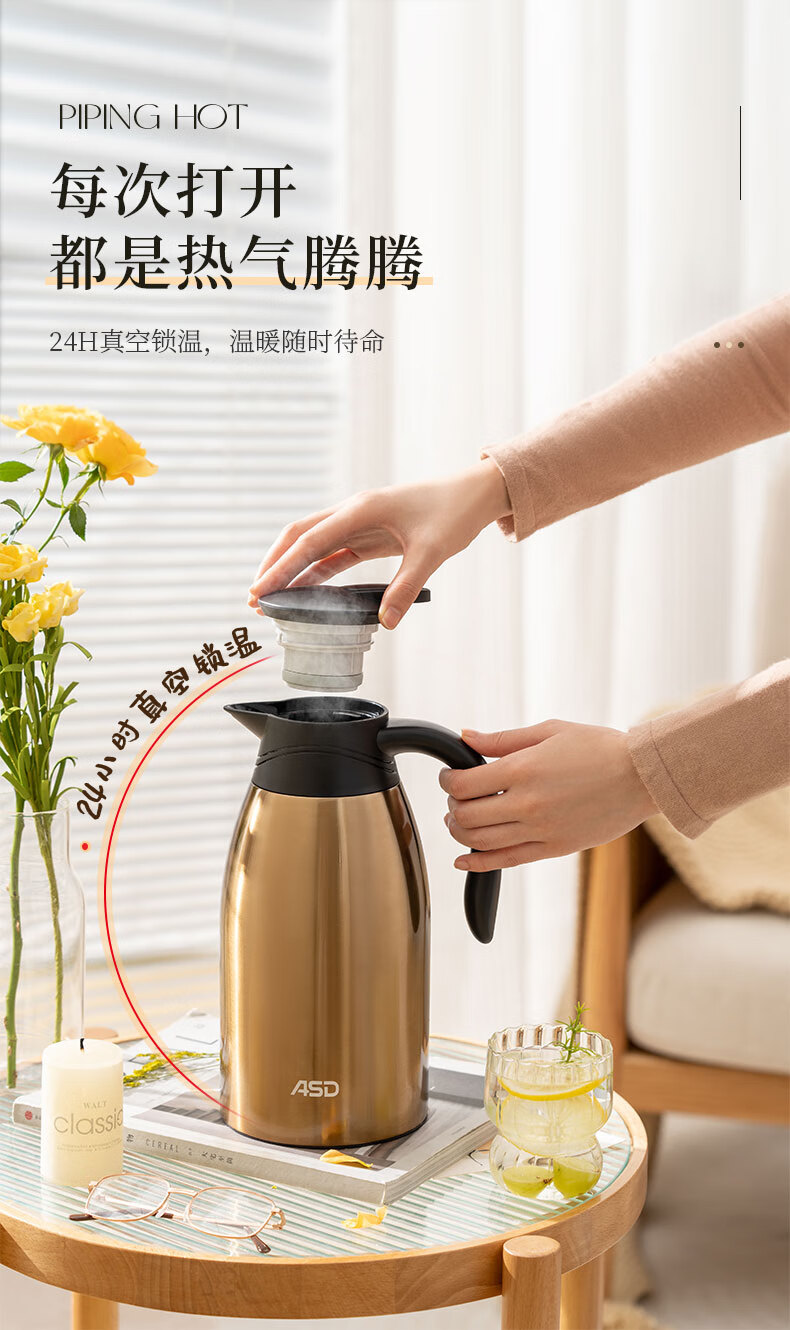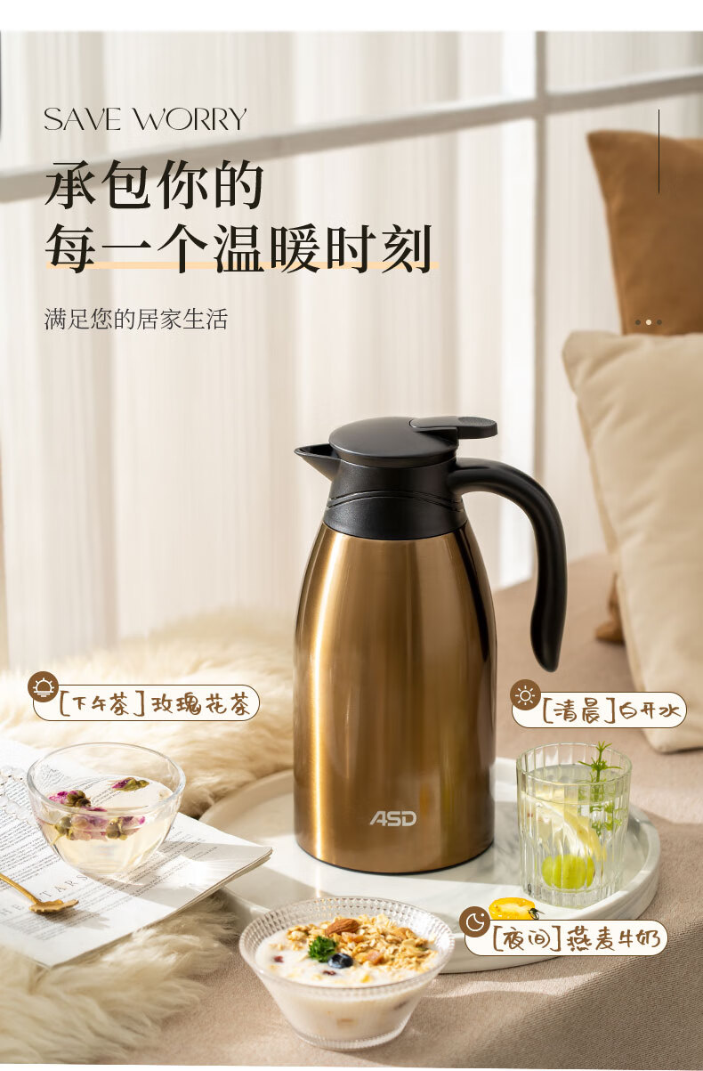 爱仕达(ASD)304不锈钢真空保温壶 家用办公大容量热水瓶 长效保温 2.0L 绿色