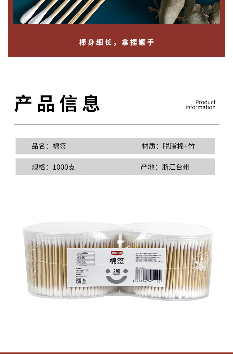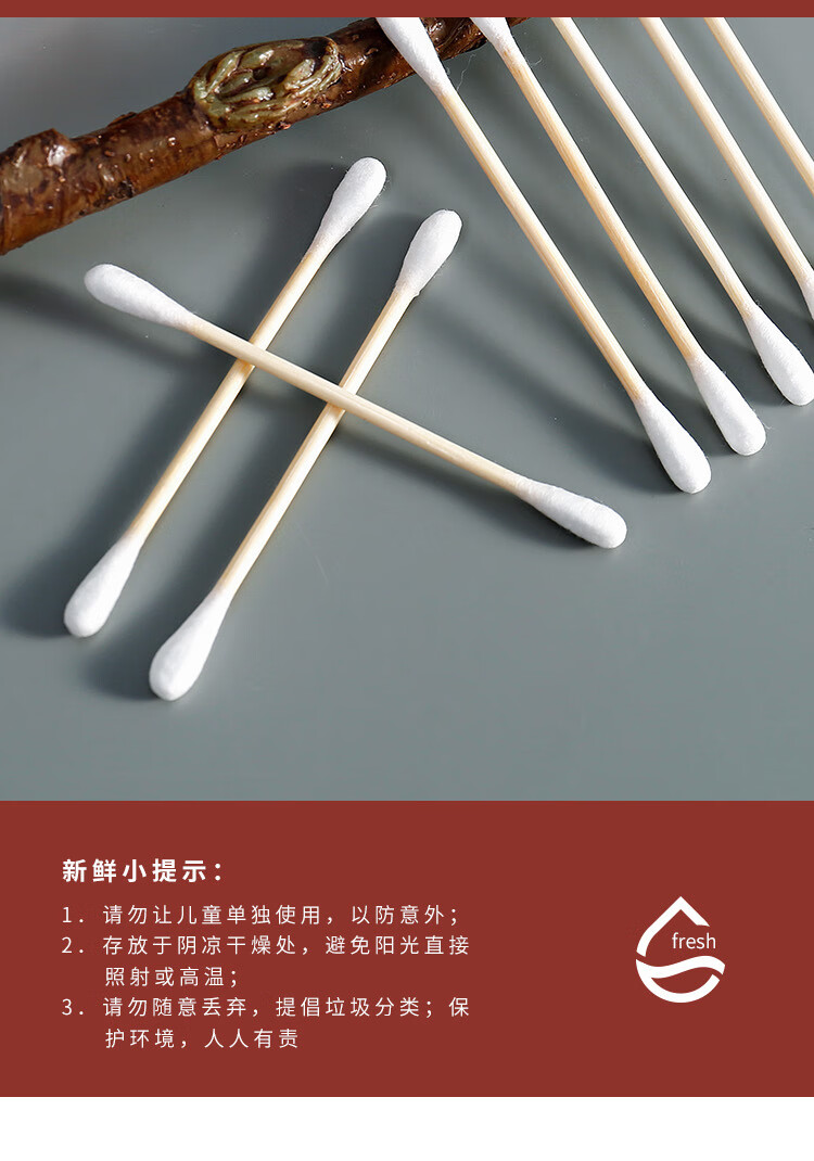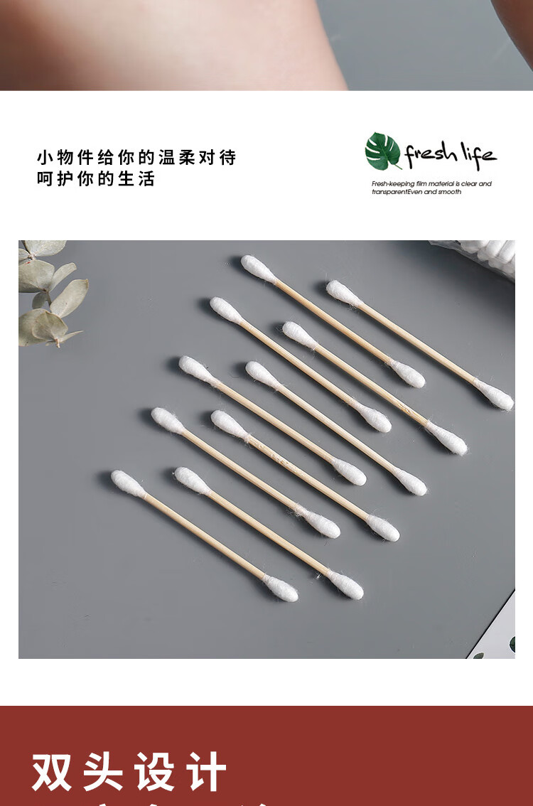 新鲜生活双头棉签1000支化妆用棉签棉棒家用一次性球清洁卫生棉