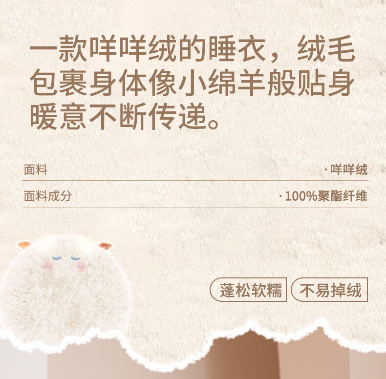 芬腾睡衣女士【双面暖绒】秋冬翻领立体卡通羊长袖保暖家居服套装 萌粉 2XL