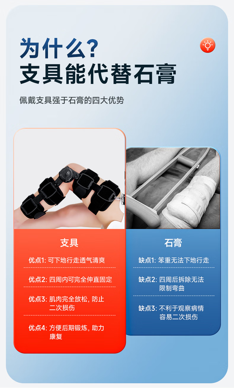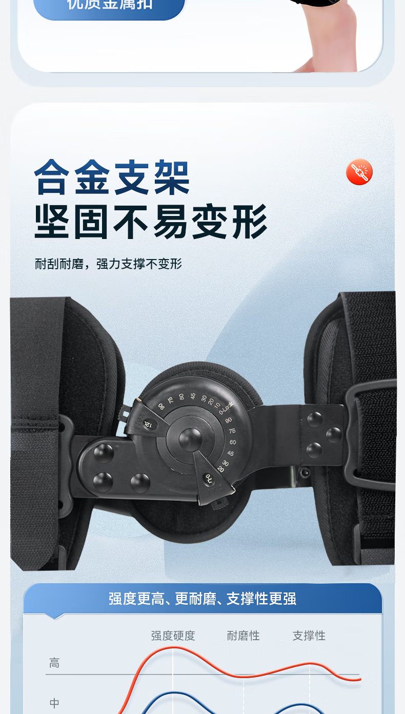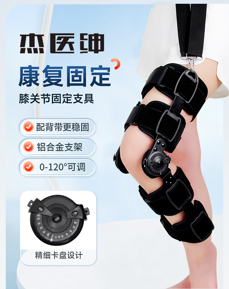 杰医绅膝关节固定支具医用膝盖护具可调节半月板损伤专用护膝韧带髌骨折 高端医用JE-KM001【160-190】