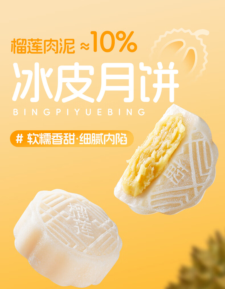 自然道中秋送礼榴莲冰皮月饼休闲零食 榴莲冰皮月饼50g*10枚