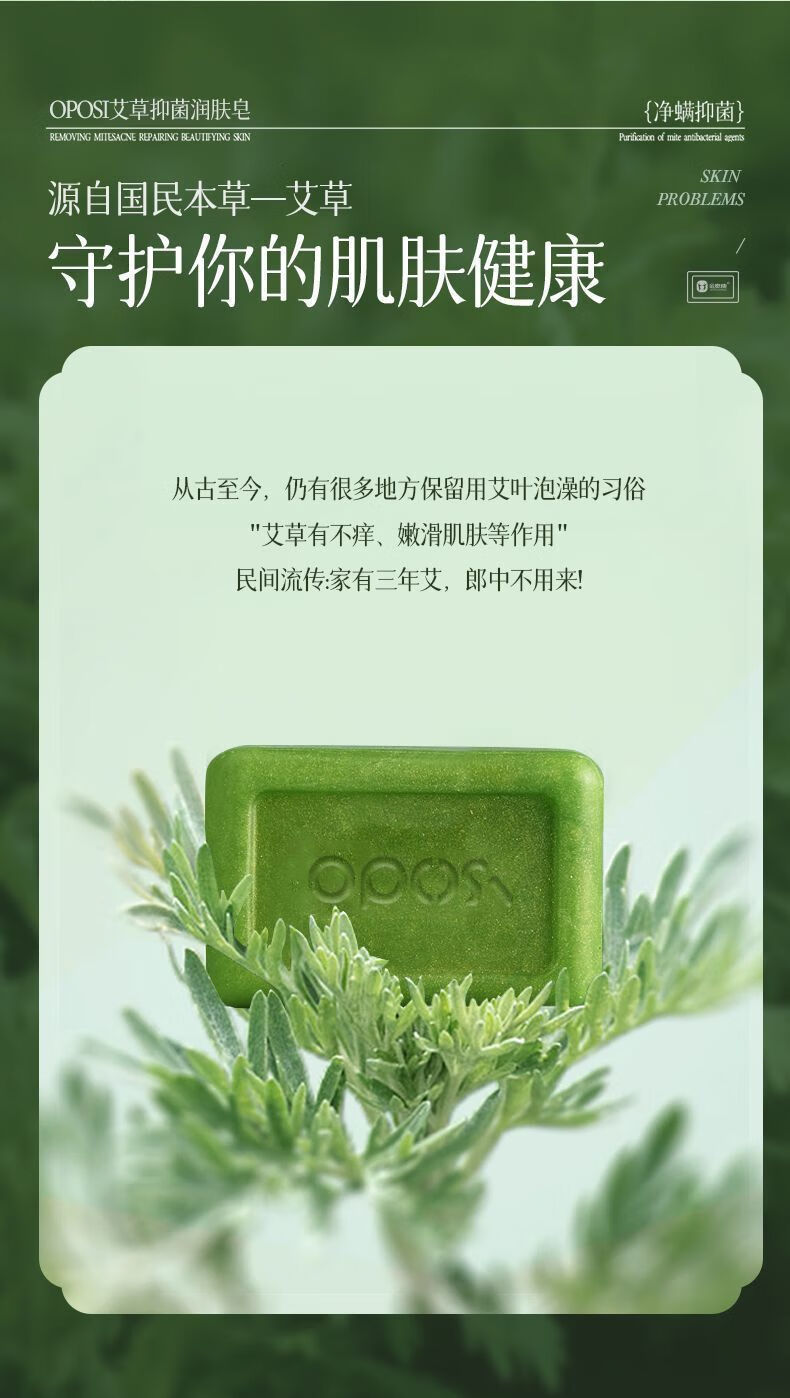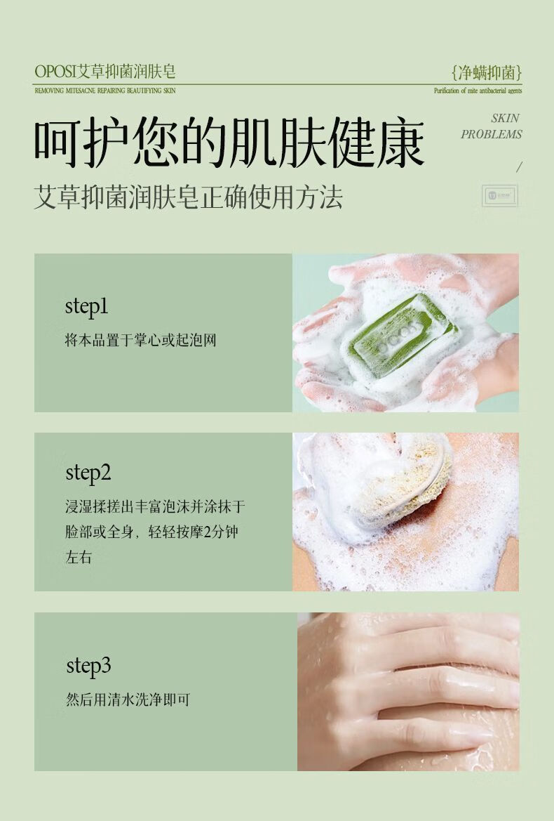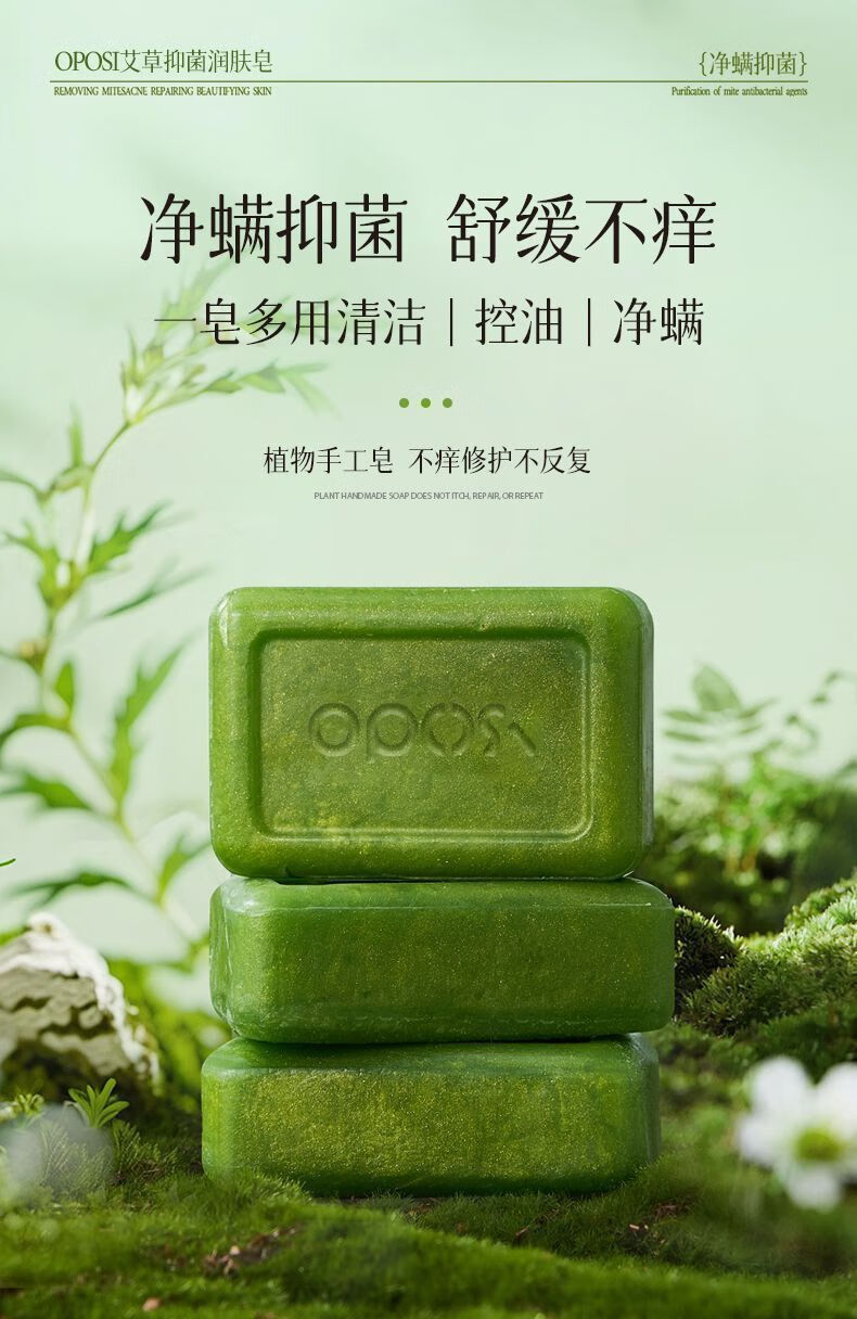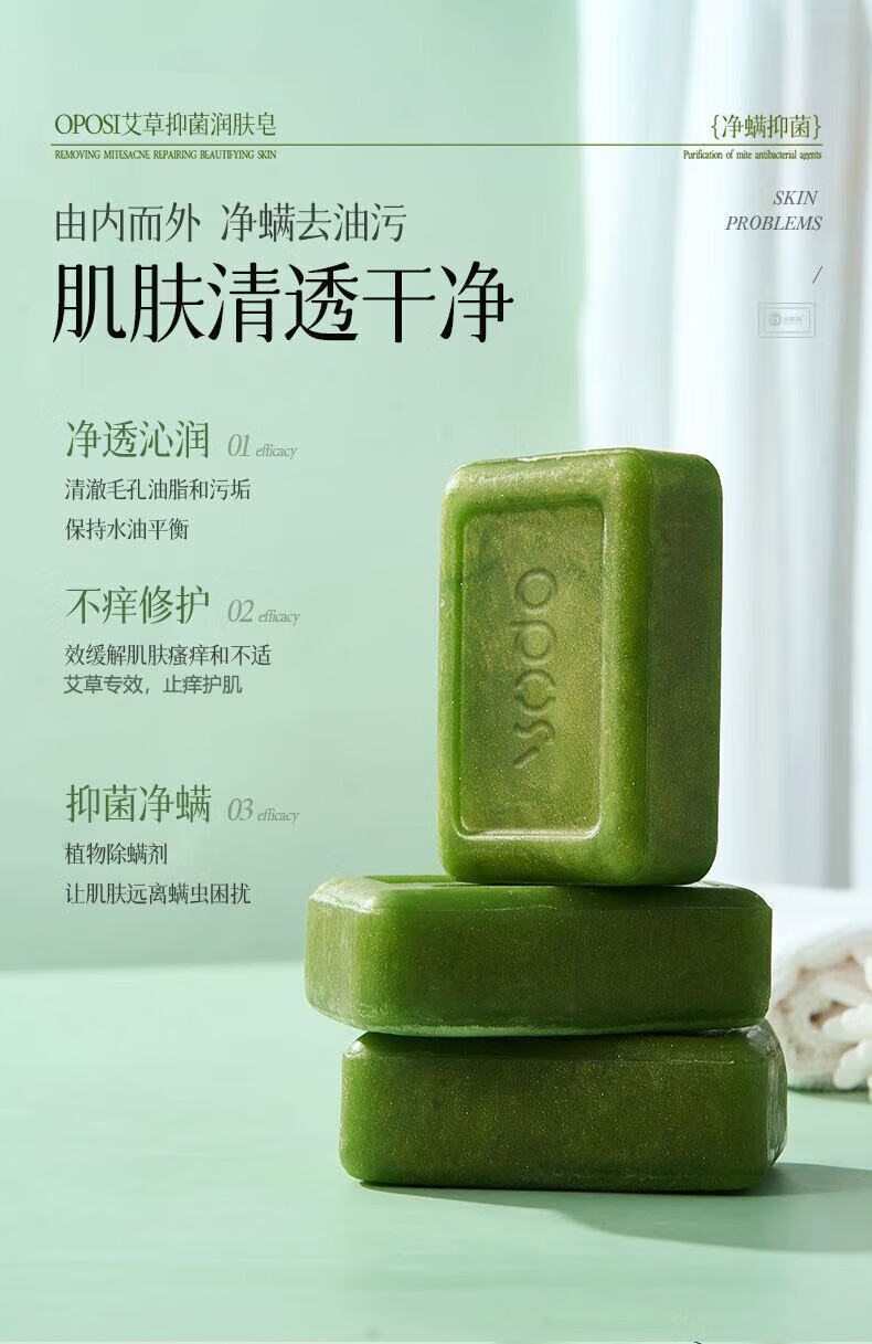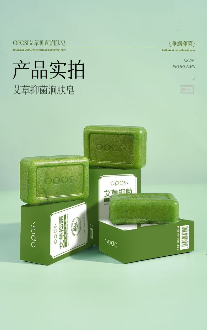 OPOSI【老牌国货】艾草止痒香皂抑菌洗脸皂沐浴皂身体清洁除螨手工肥皂 【2盒装】艾草抑菌润肤皂