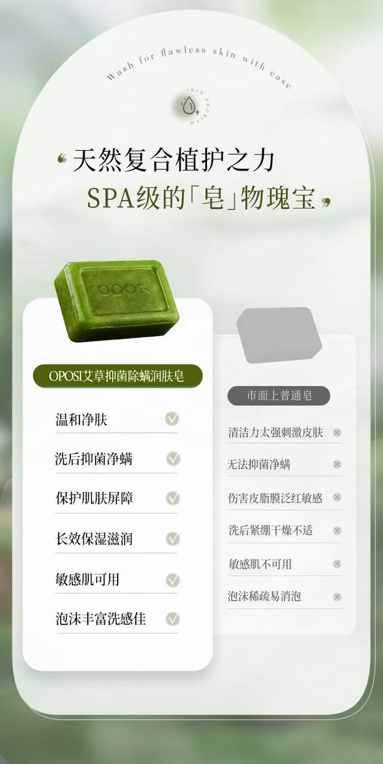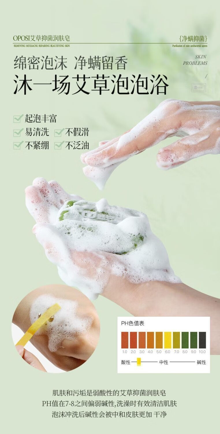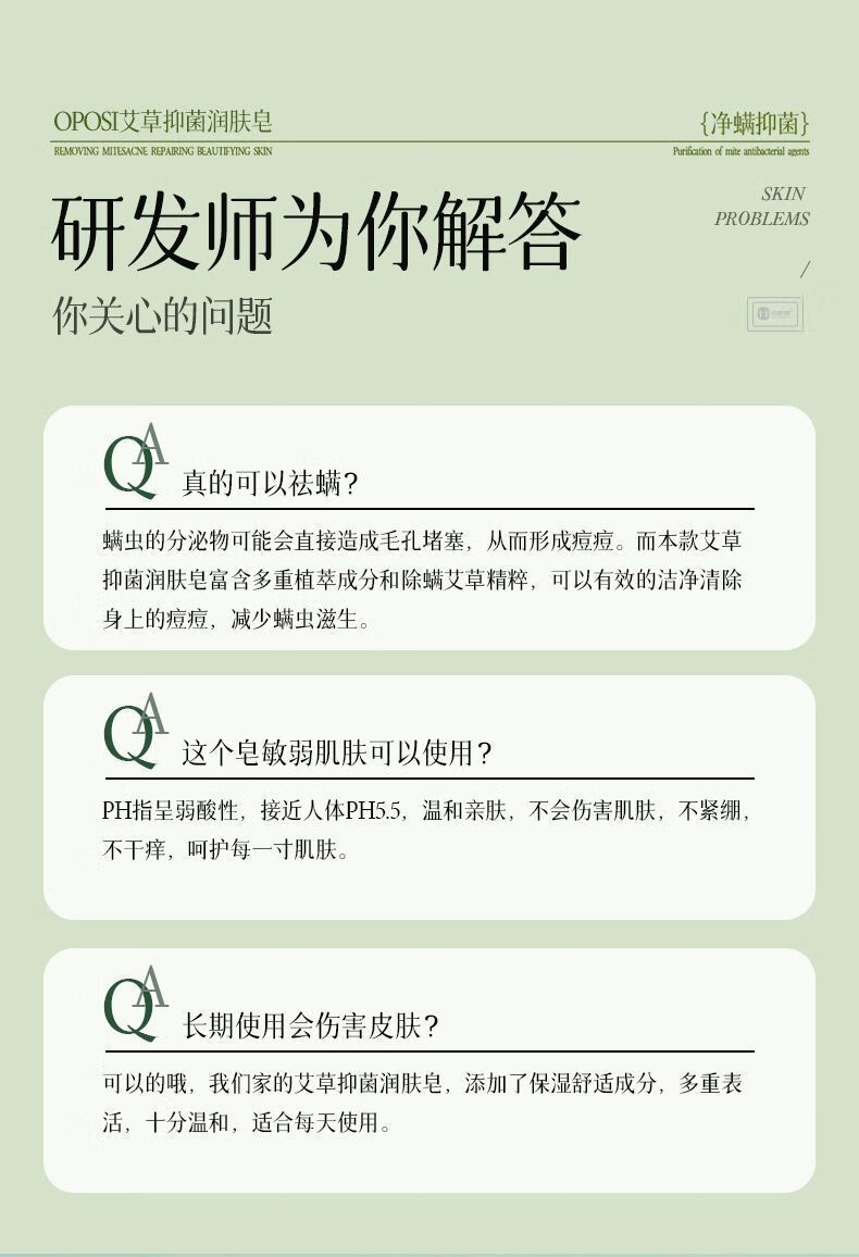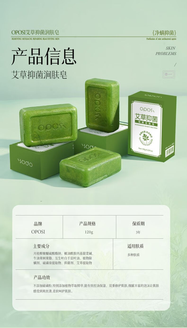 OPOSI【老牌国货】艾草止痒香皂抑菌洗脸皂沐浴皂身体清洁除螨手工肥皂 【2盒装】艾草抑菌润肤皂