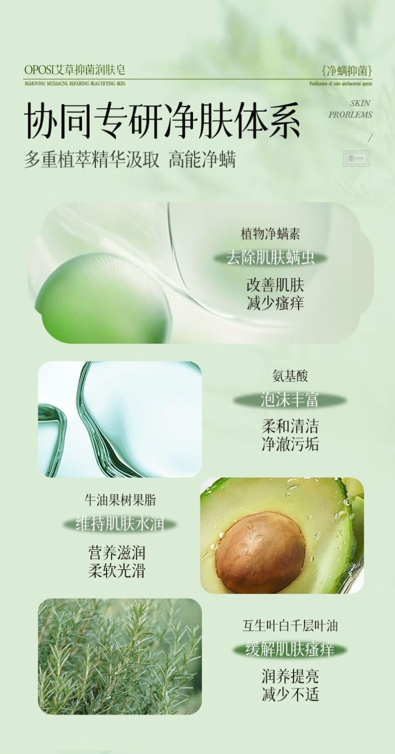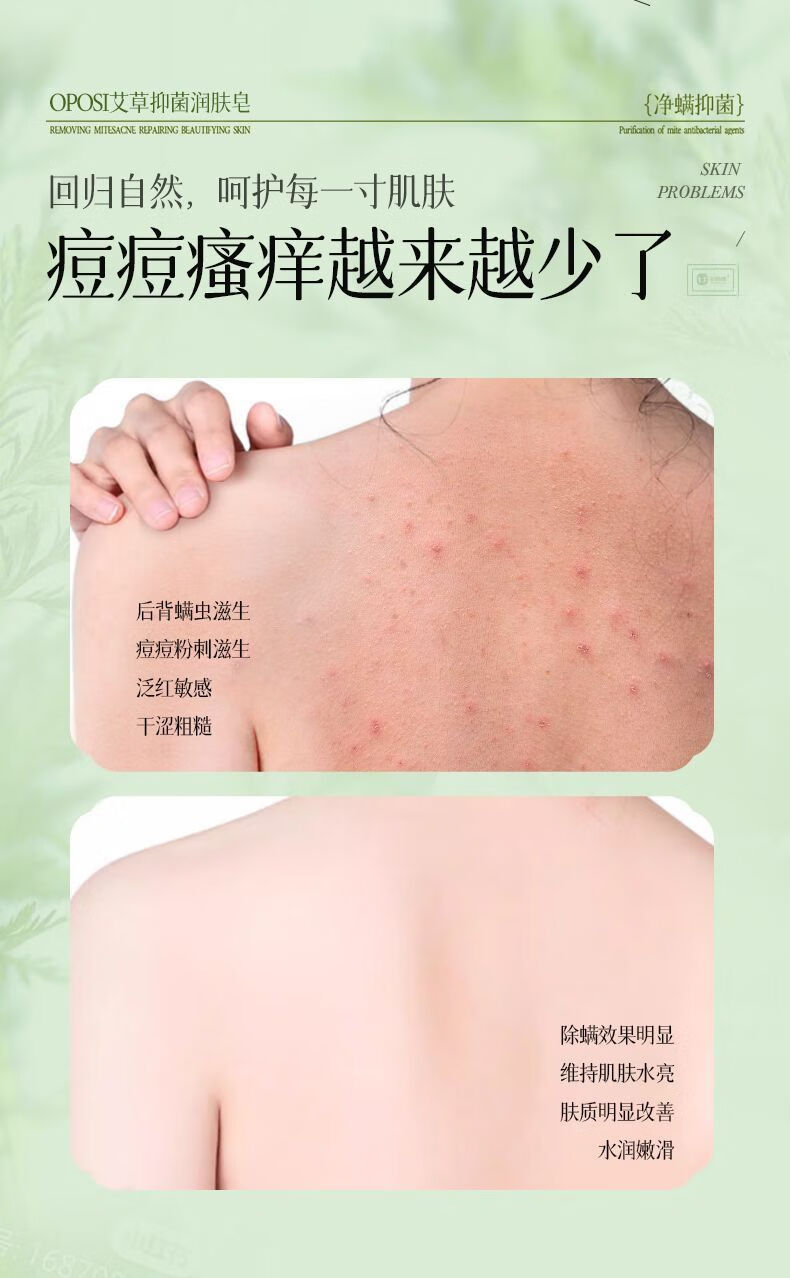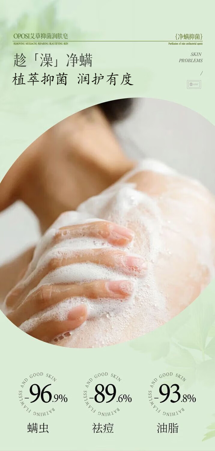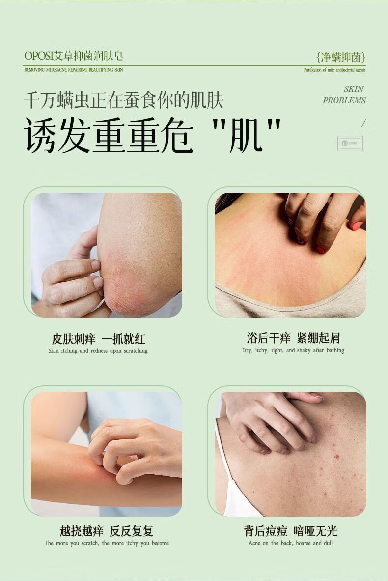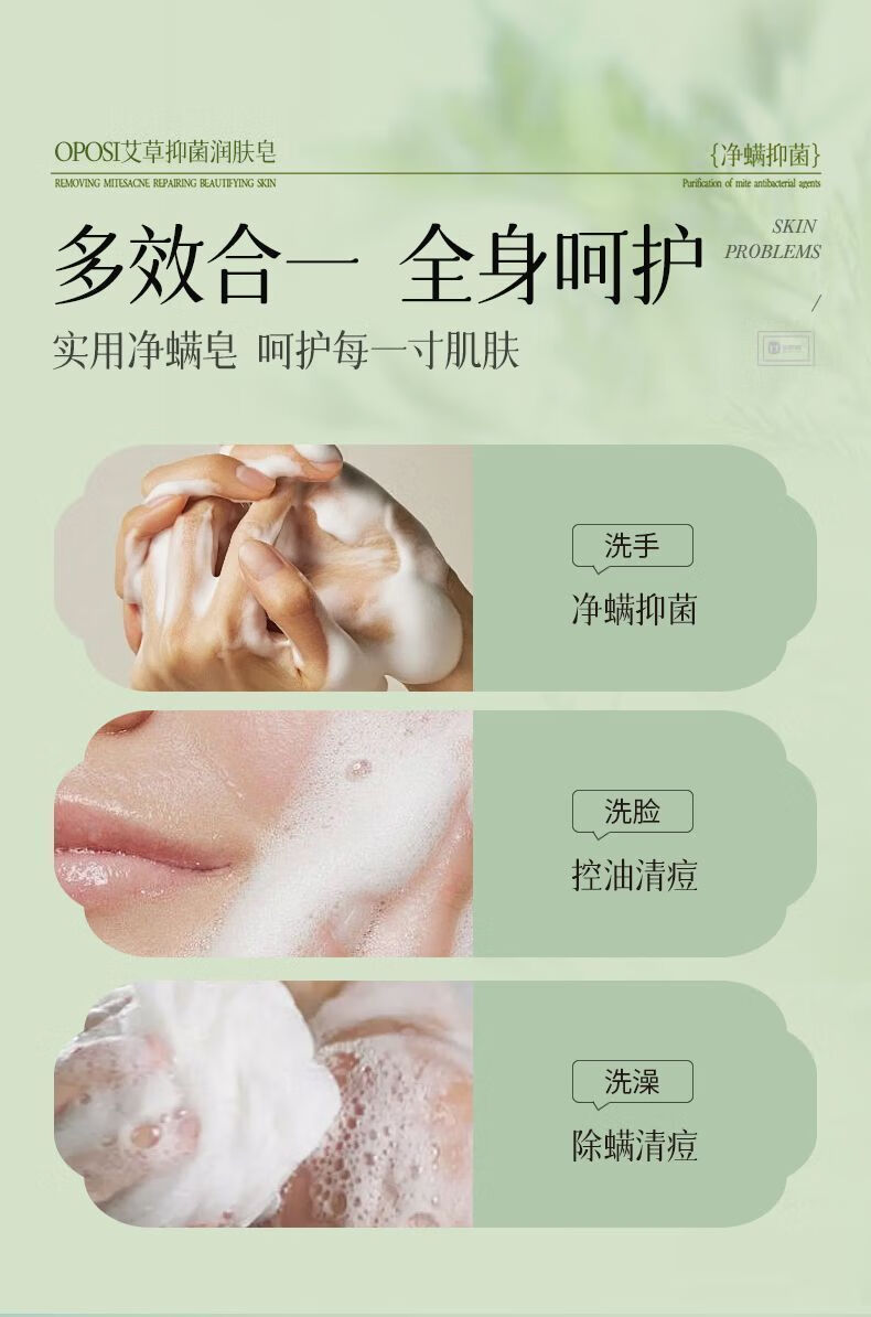 OPOSI【老牌国货】艾草止痒香皂抑菌洗脸皂沐浴皂身体清洁除螨手工肥皂 【2盒装】艾草抑菌润肤皂