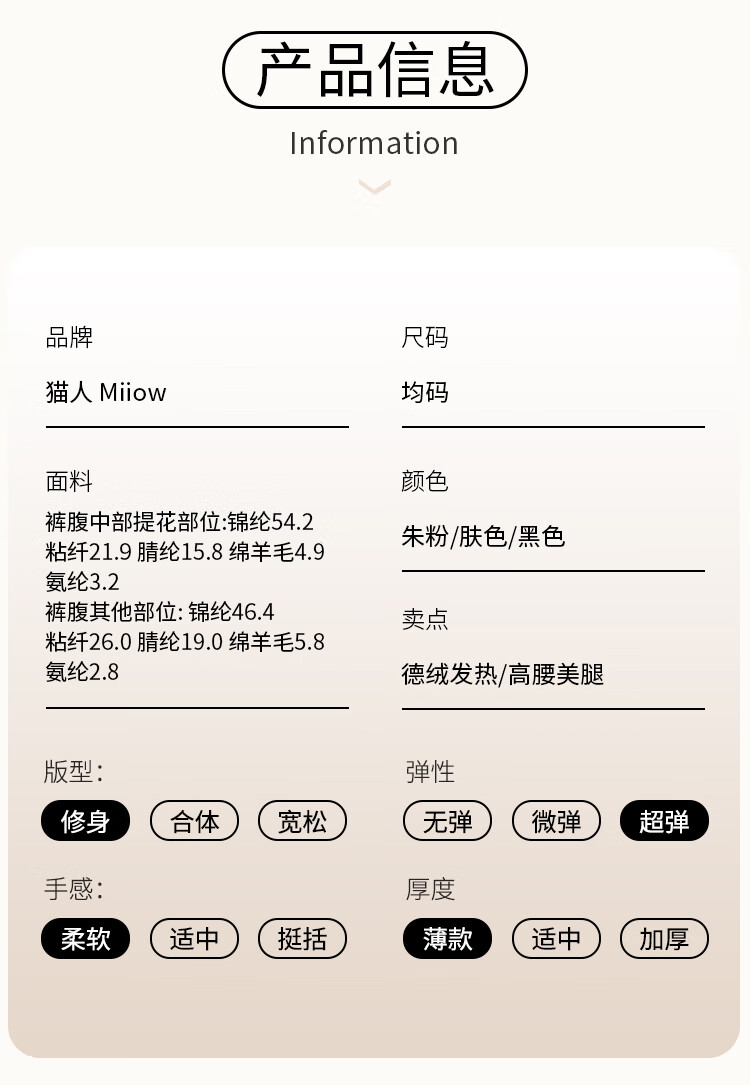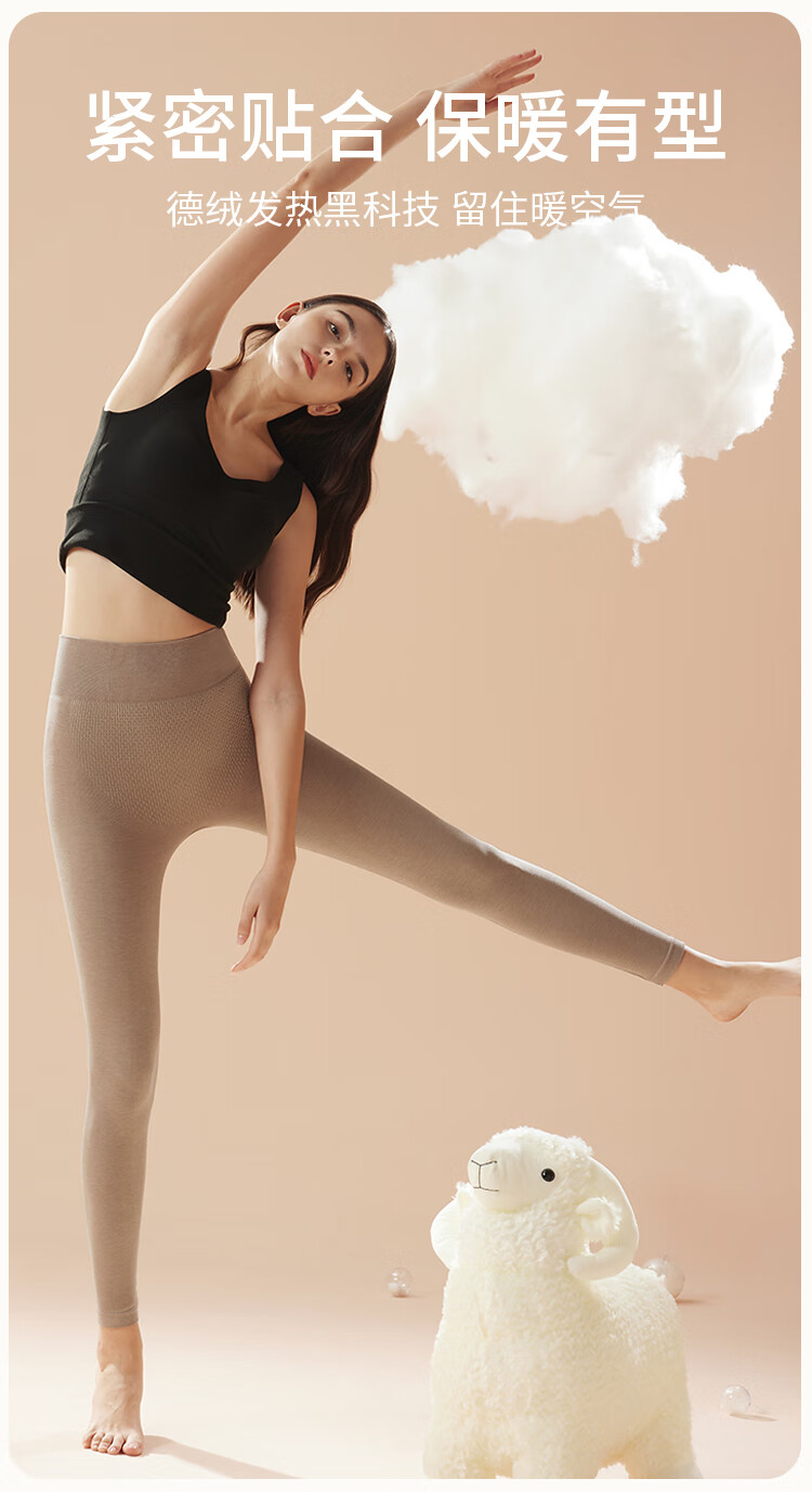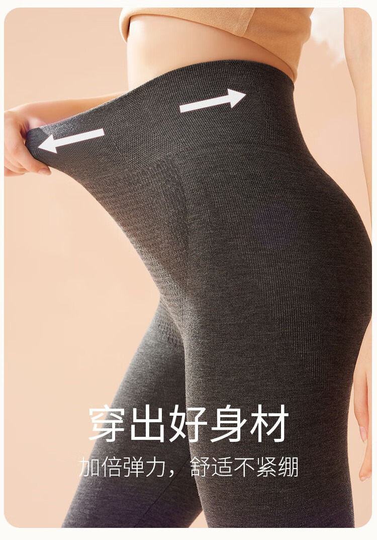 猫人秋裤女德绒加厚打底裤女保暖裤无痕紧身线裤高腰保暖棉毛裤黑L