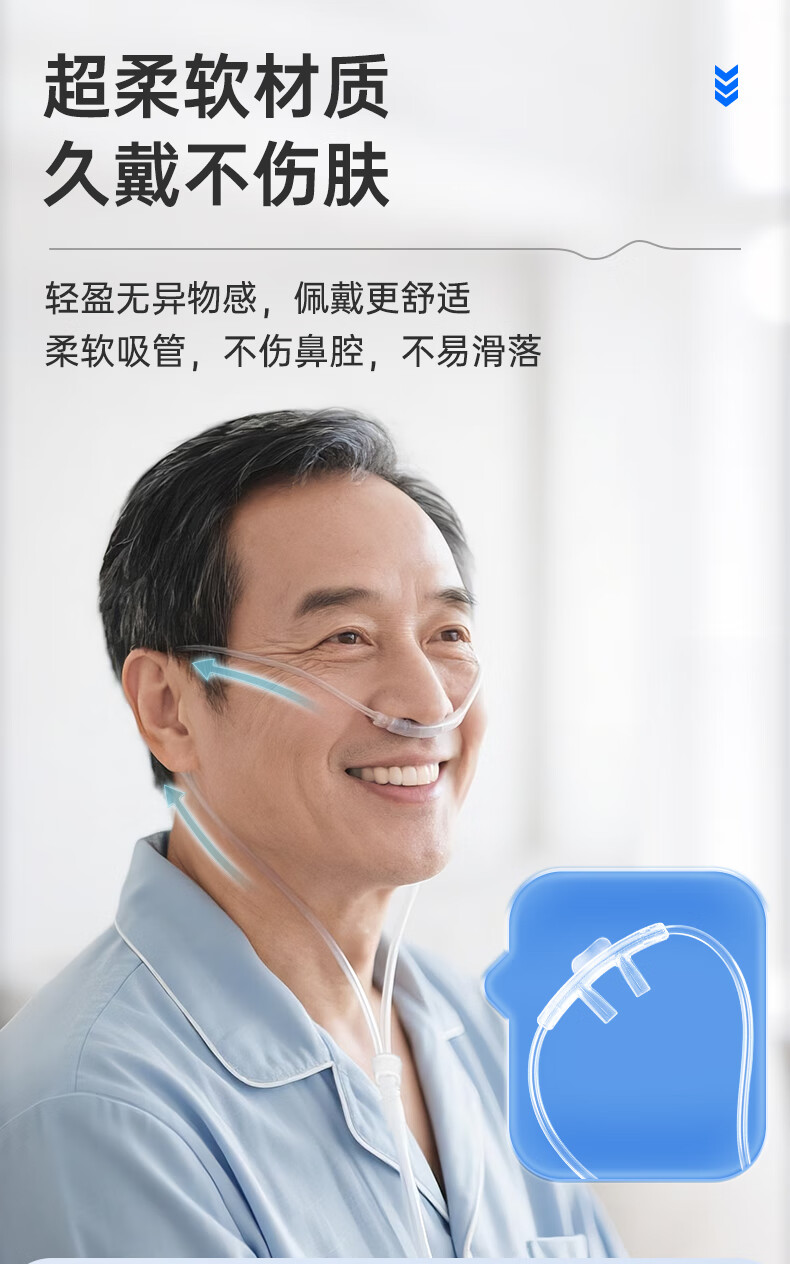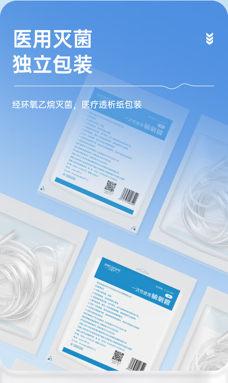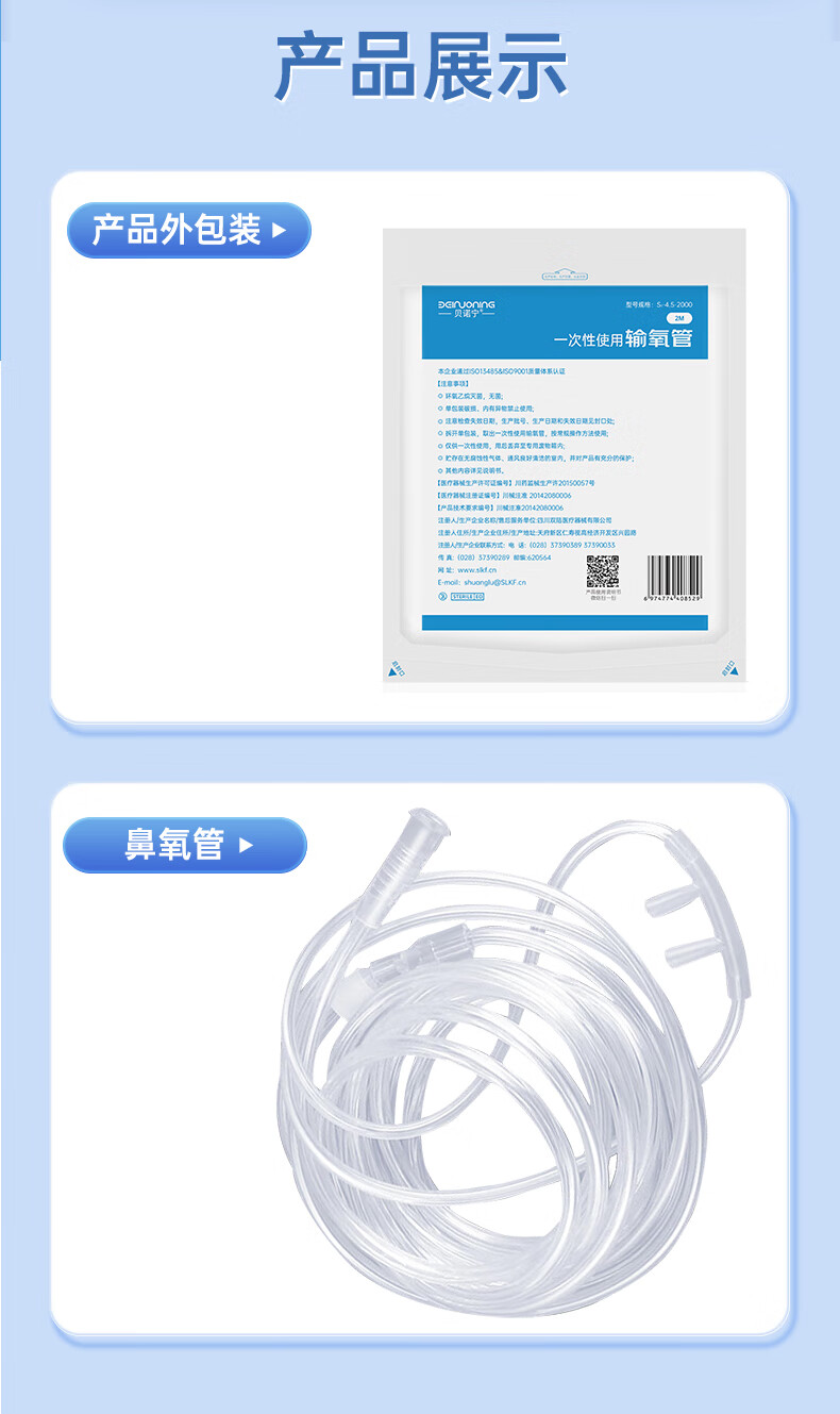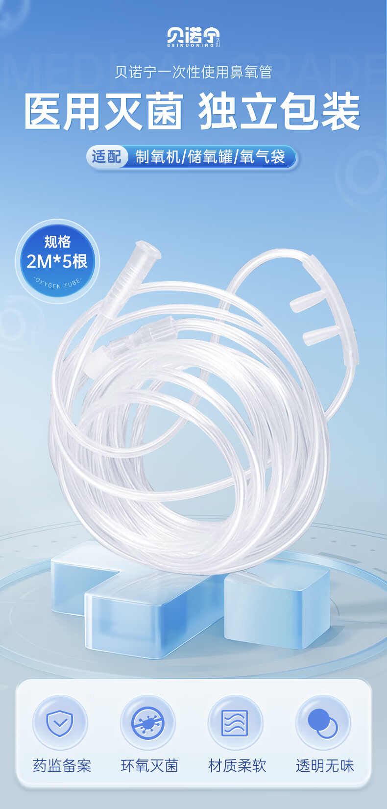 贝诺宁吸氧管氧气管鼻吸医用双鼻塞制氧机一次性鼻氧管2米*5根