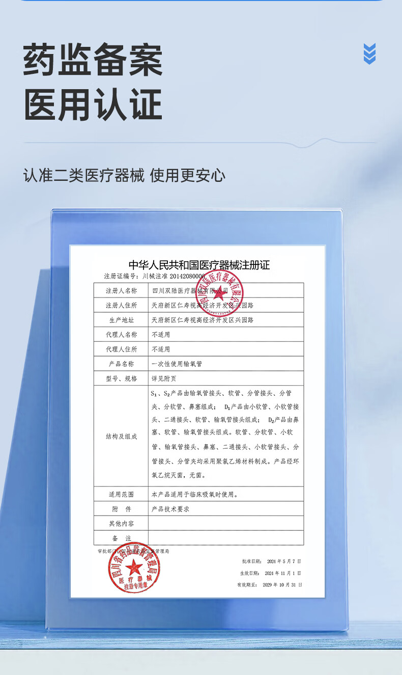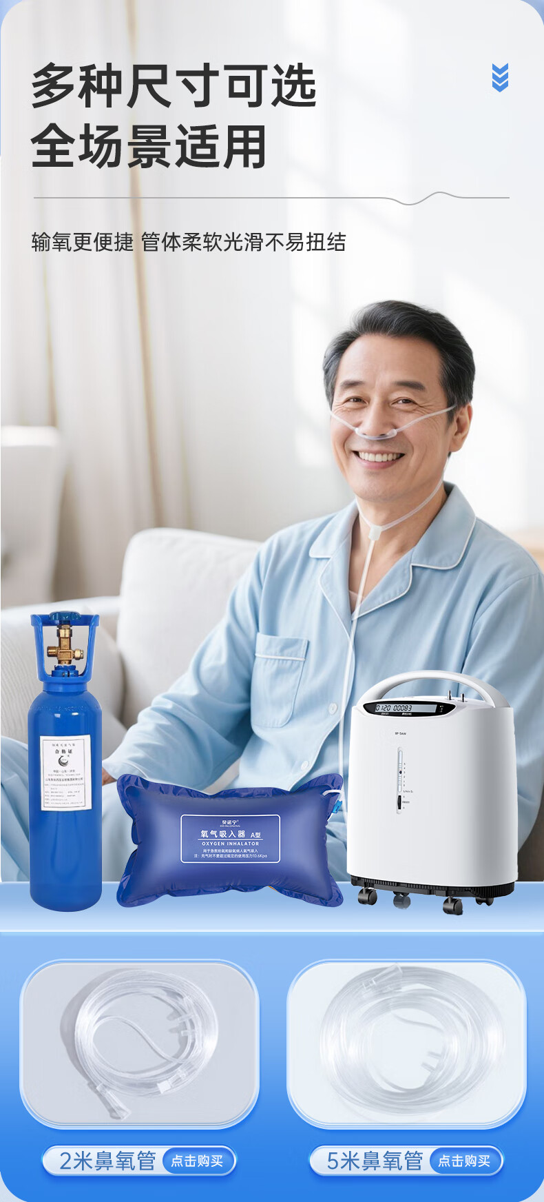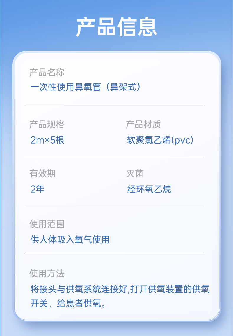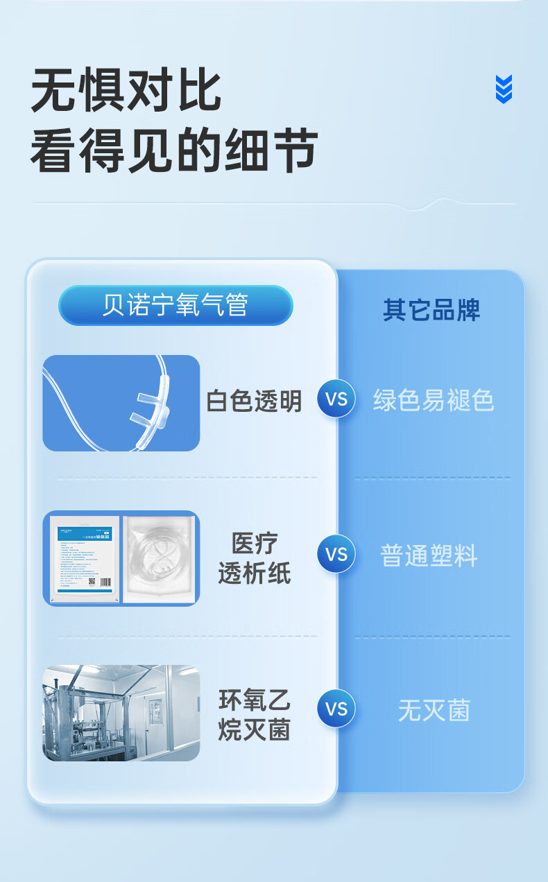 贝诺宁吸氧管氧气管鼻吸医用双鼻塞制氧机一次性鼻氧管2米*5根