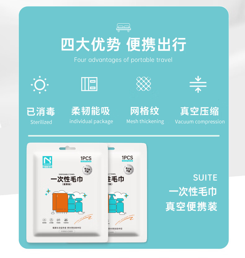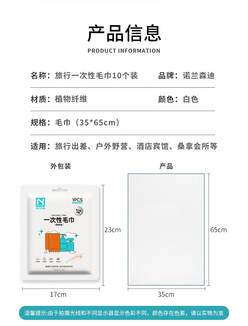 诺兰森迪一次性毛巾10条非压缩35*65cm加大加厚浴巾旅行洗脸巾酒店便携