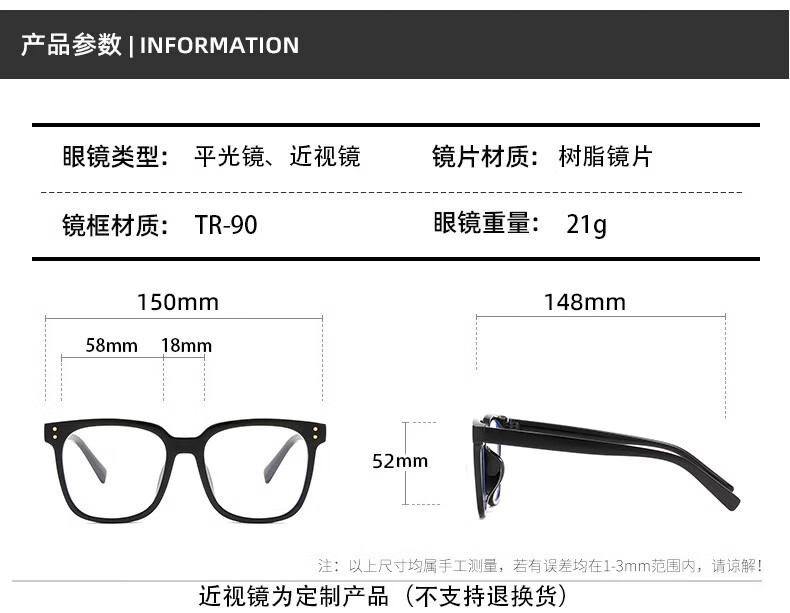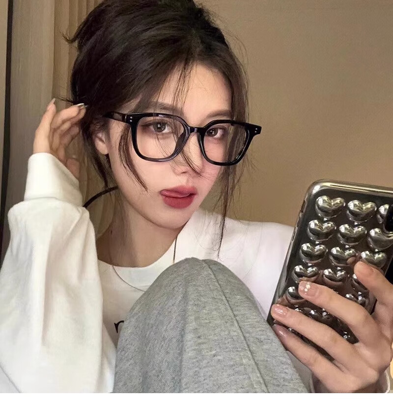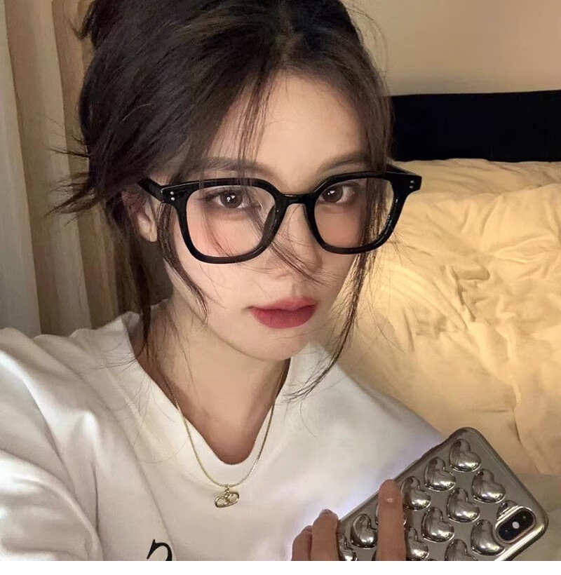 GOGOSOON日系黑框眼镜女大脸显瘦超轻方形镜框可配度数素颜防蓝光近视镜潮