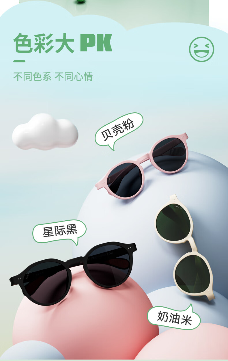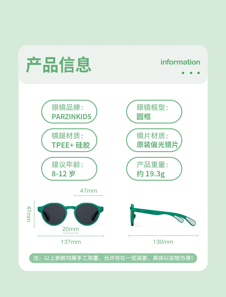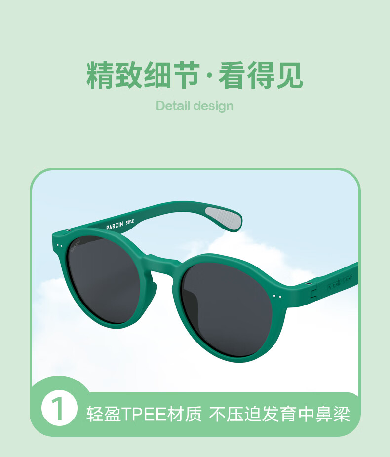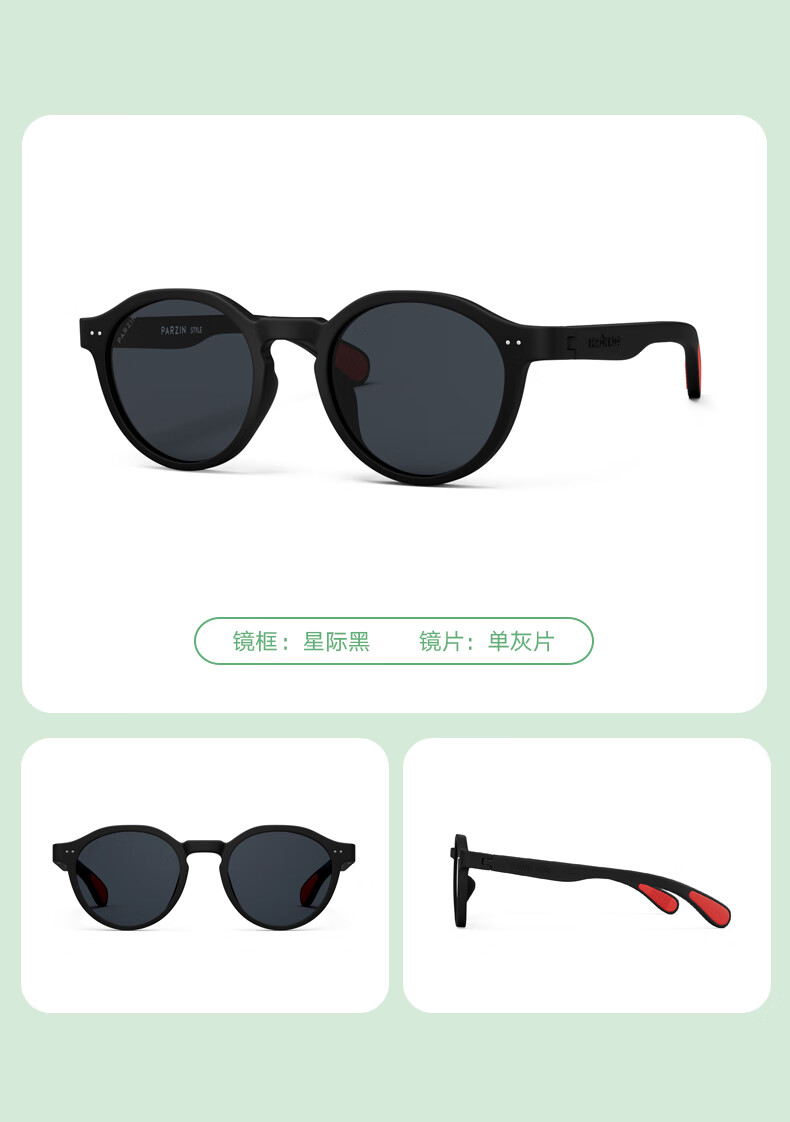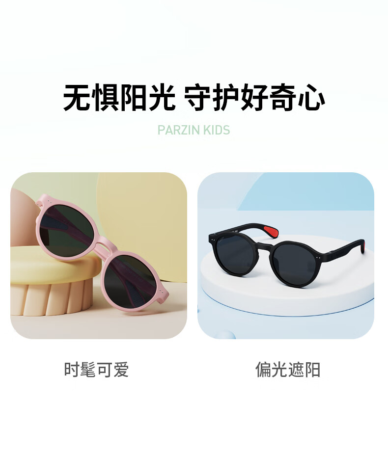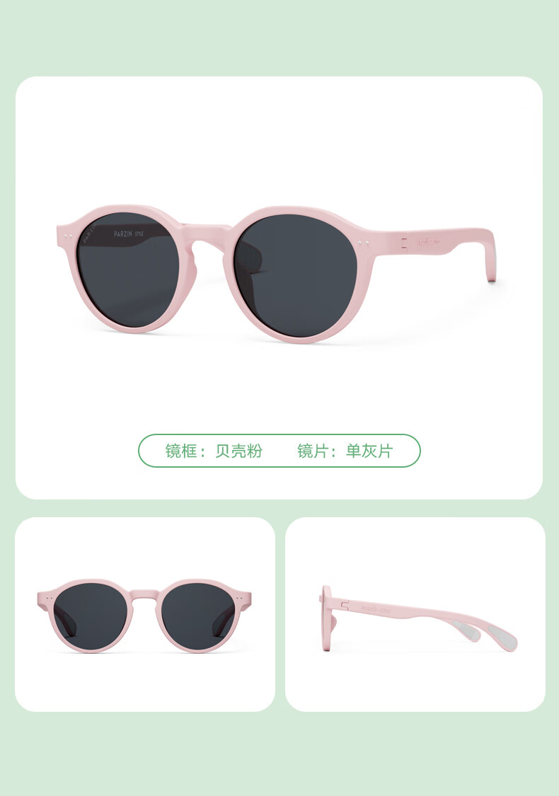 PARZIN KIDS儿童太阳镜 男女童轻盈时尚圆框防晒眼镜防紫外线墨镜8-12岁21037