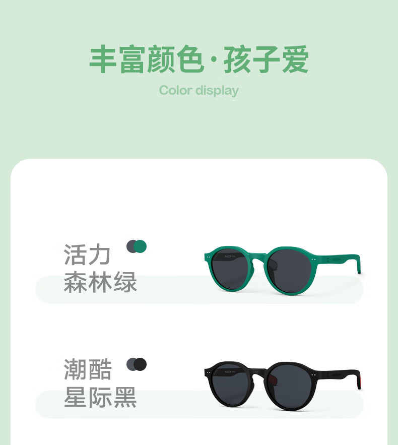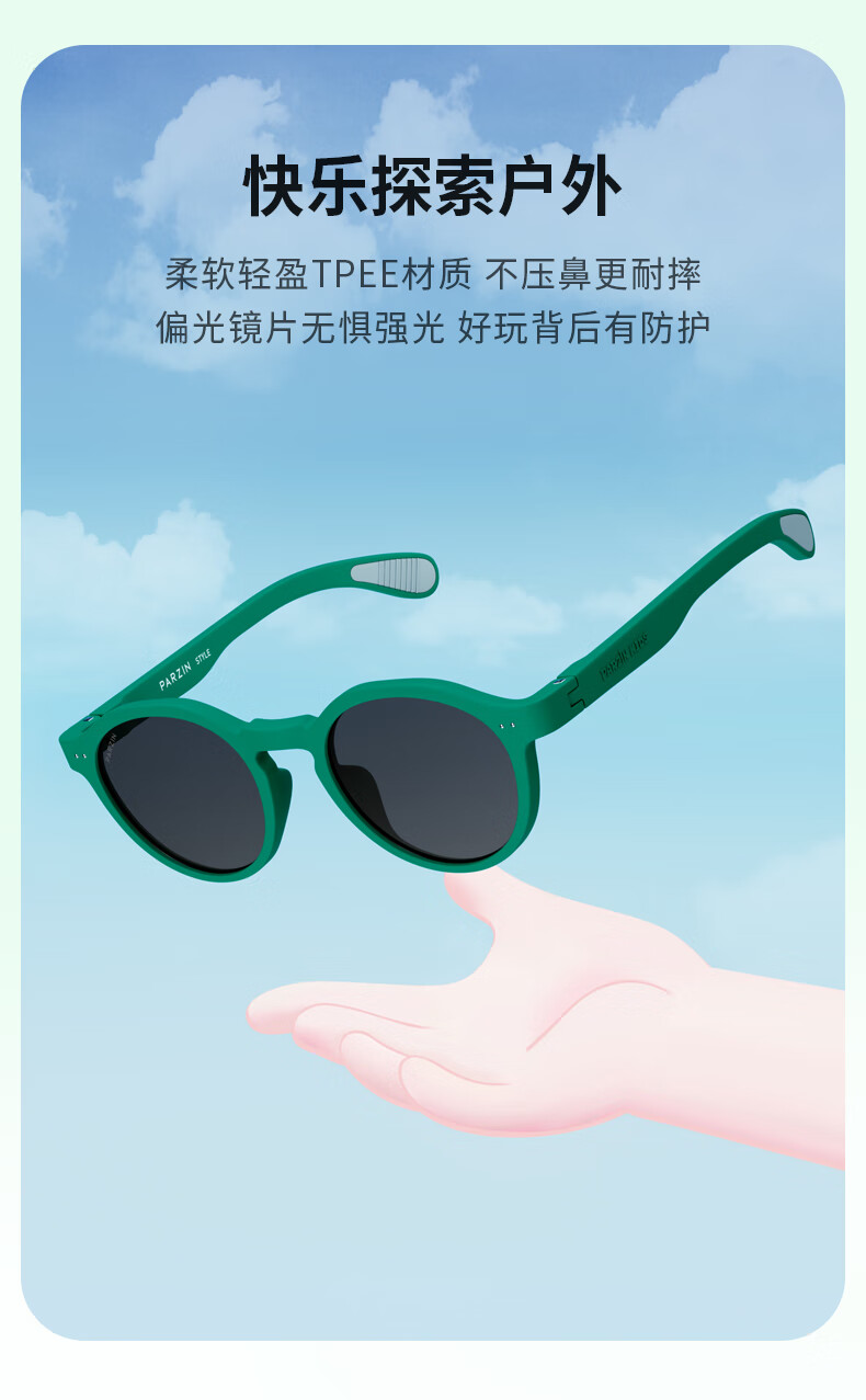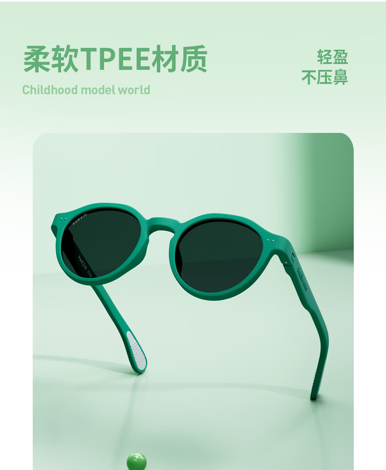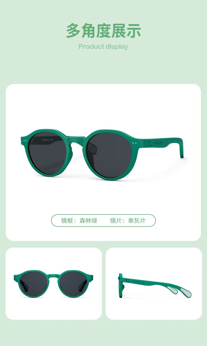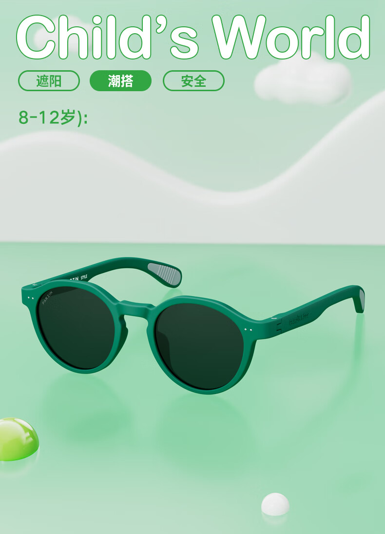 PARZIN KIDS儿童太阳镜 男女童轻盈时尚圆框防晒眼镜防紫外线墨镜8-12岁21037