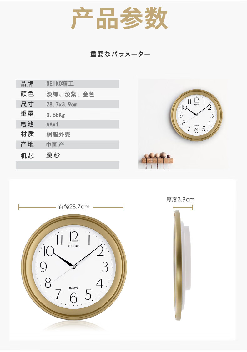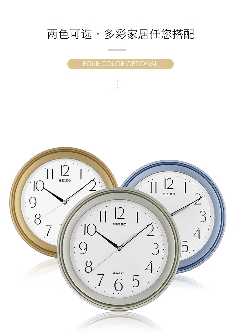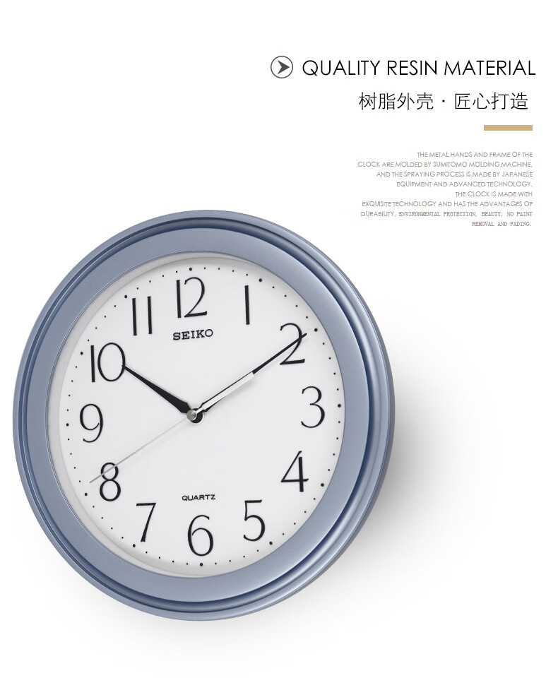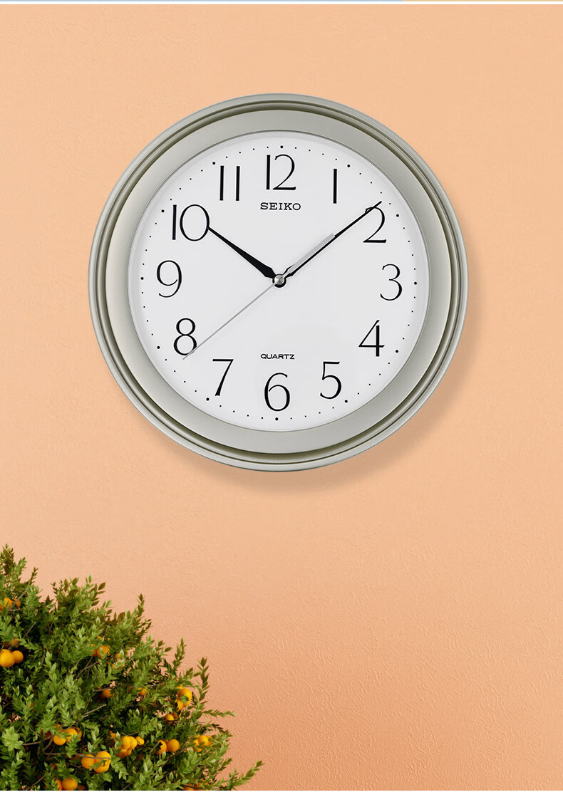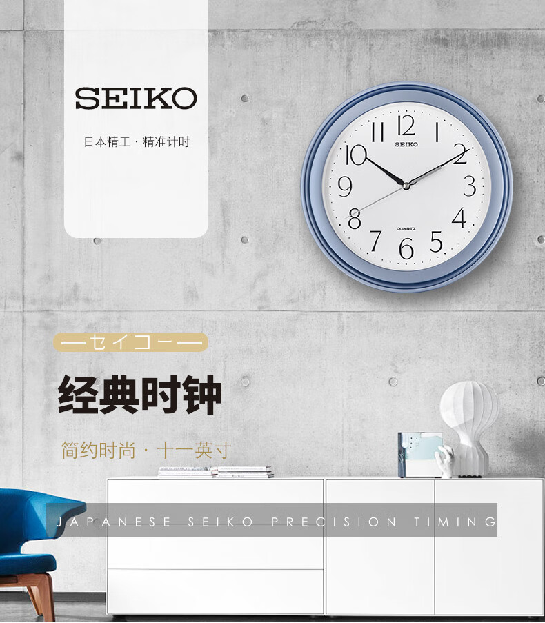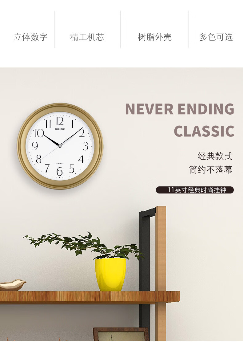 SEIKO 精工时钟现代简约客厅卧室办公室家用免打孔挂表11英寸28cm挂钟