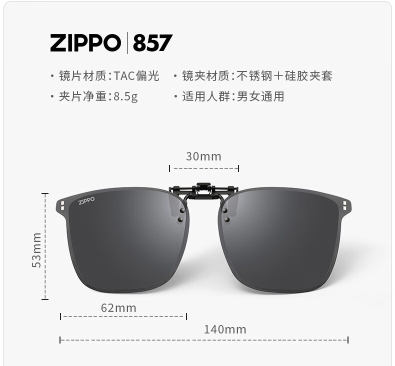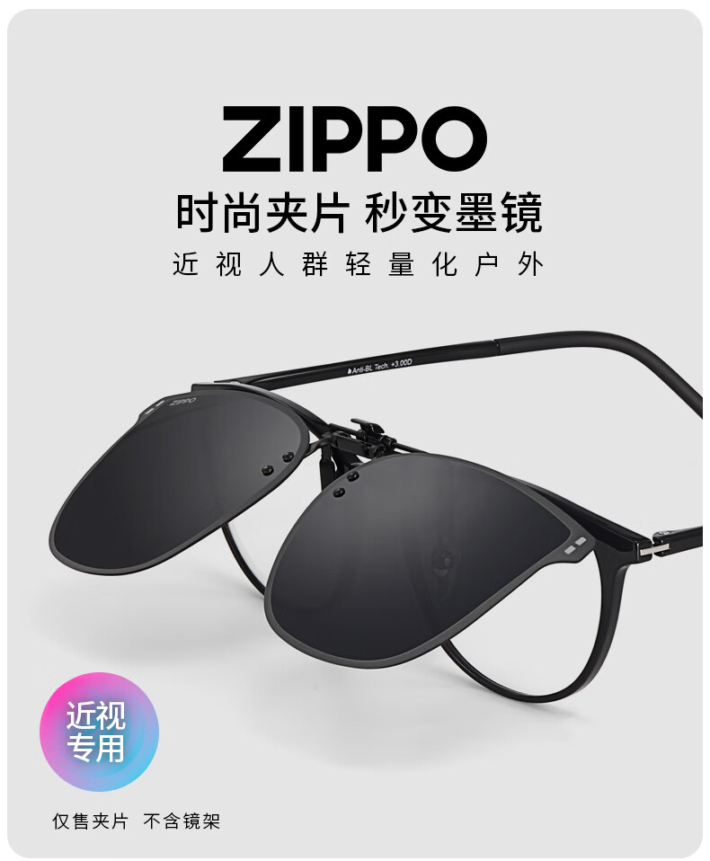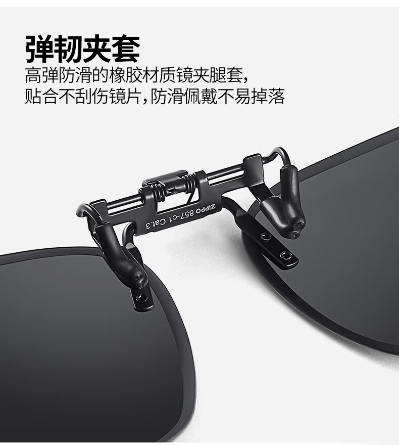 ZIPPO美国近视夹片偏光太阳镜墨镜开车驾驶户外专用男女超轻便携857C1