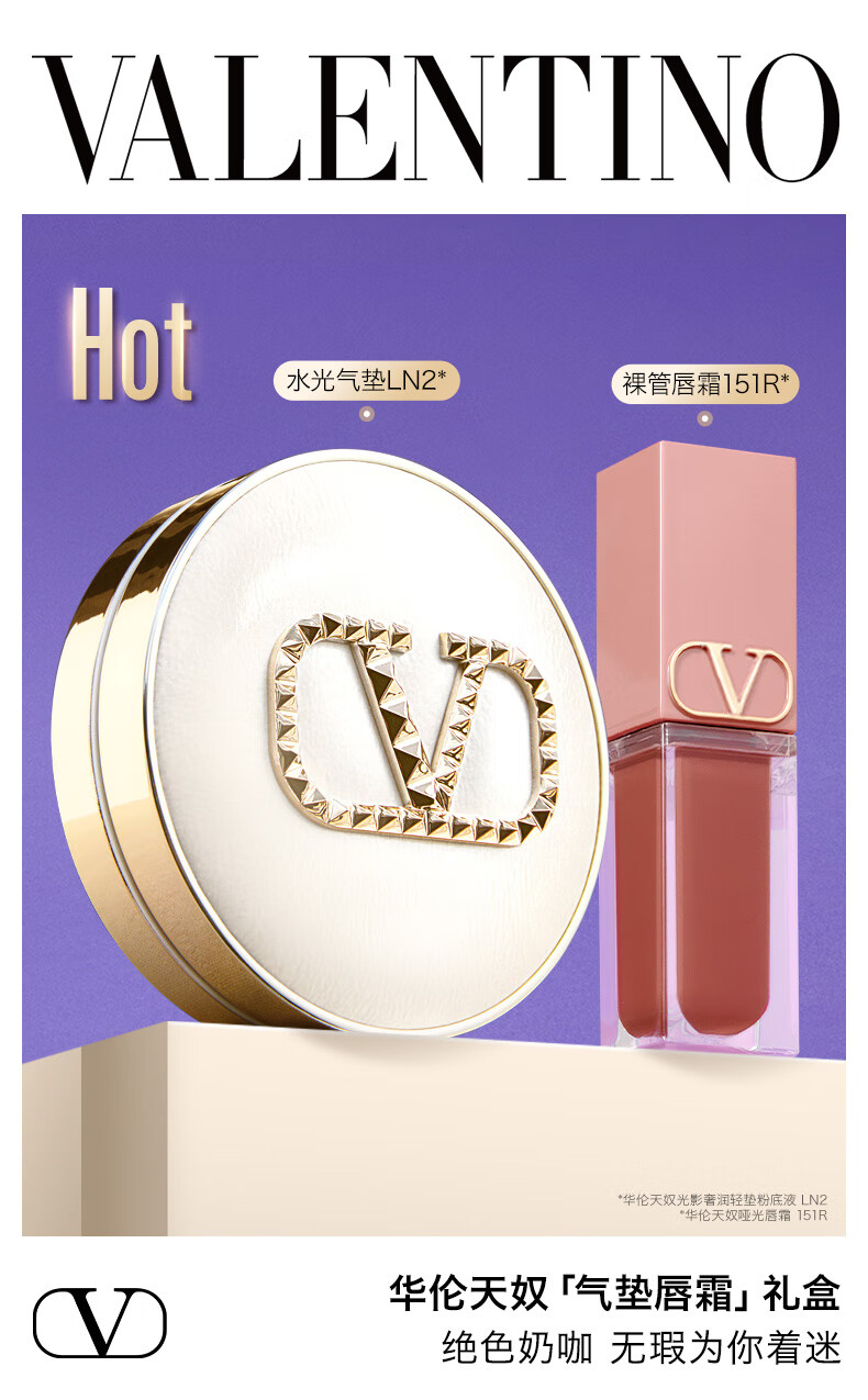 华伦天奴气垫口红礼盒唇霜151R+水光气垫LN2唇釉生日礼物女双十一
