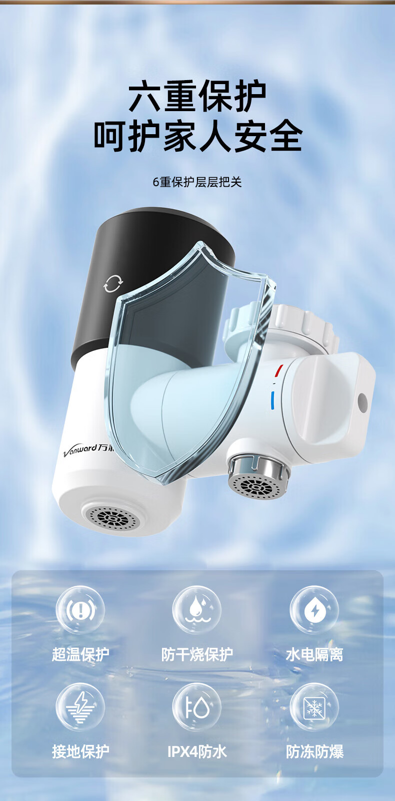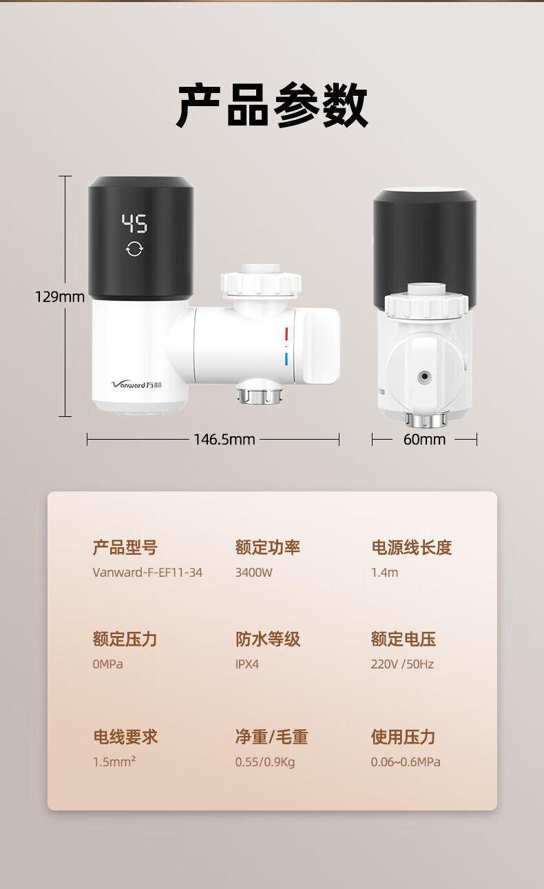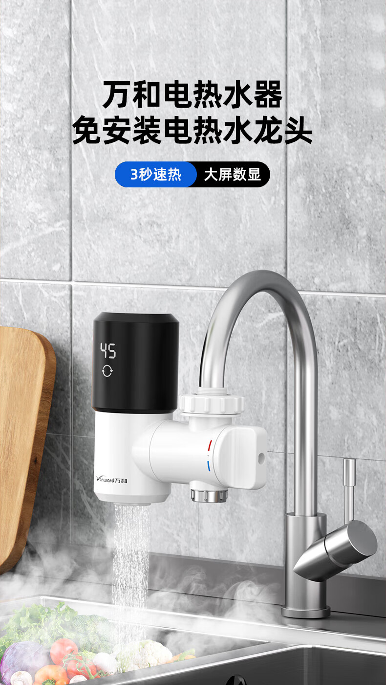 万和电热水龙头免安装速热即热式变频恒温厨房水龙头接驳式冷热两用 F-EF11D-34定频白漏保(兴泓) 无规格