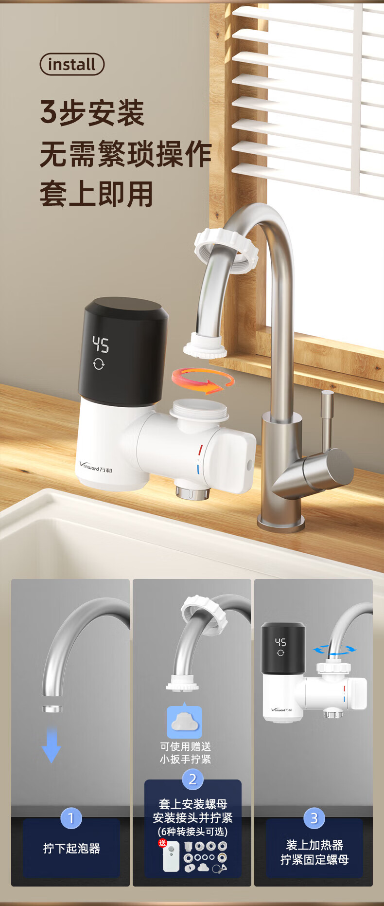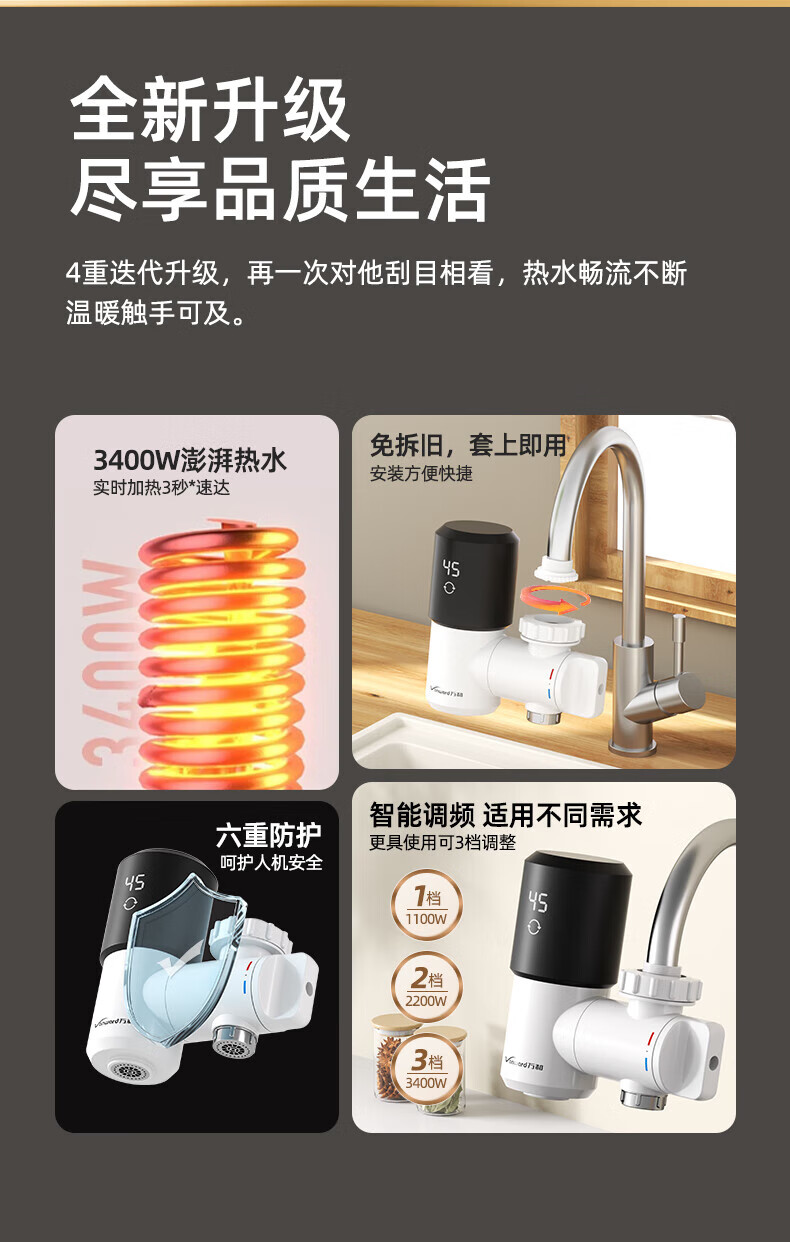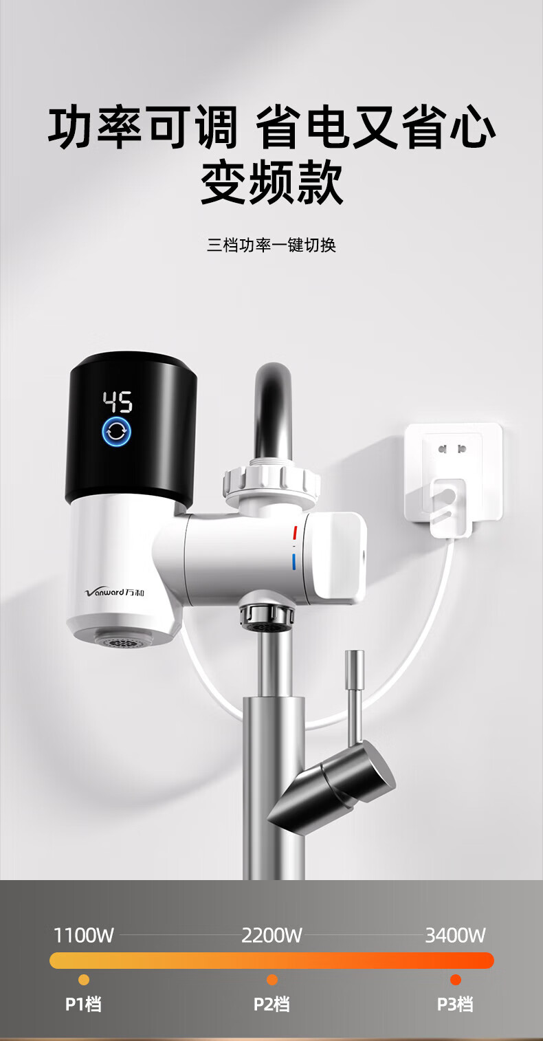 万和电热水龙头免安装速热即热式变频恒温厨房水龙头接驳式冷热两用 F-EF11D-34定频白漏保(兴泓) 无规格