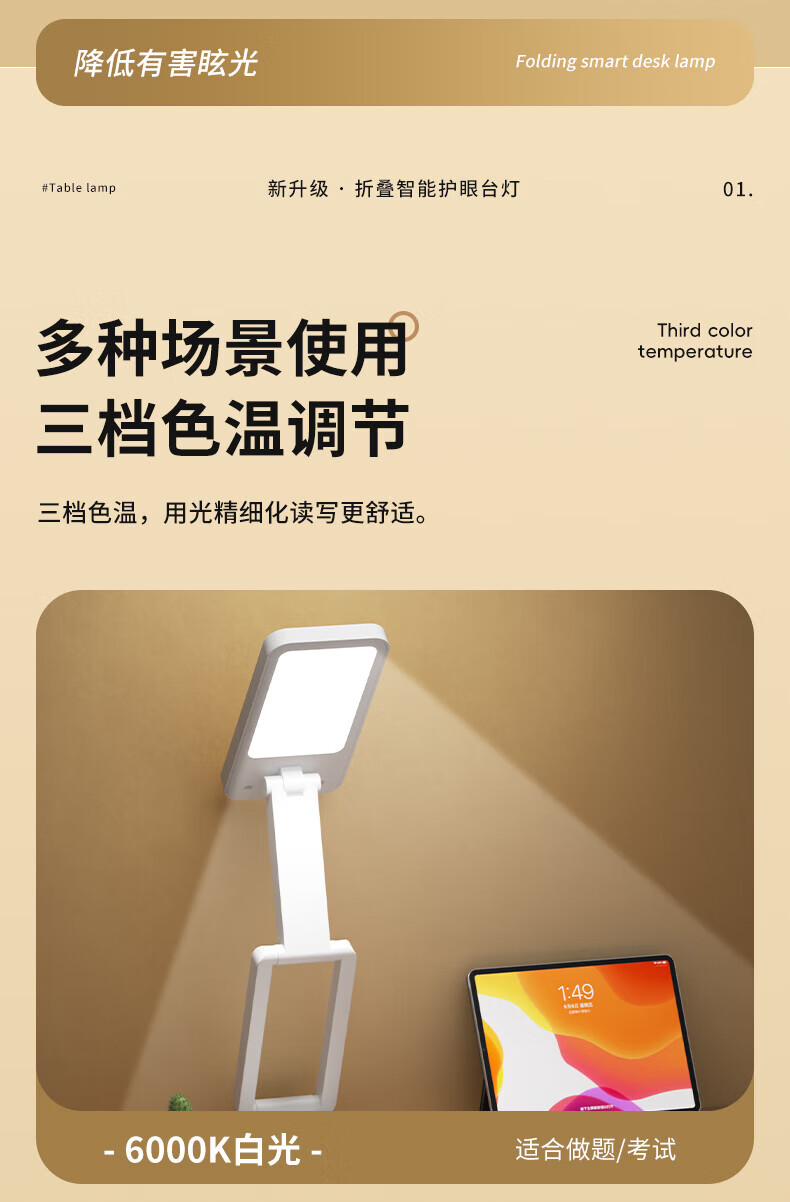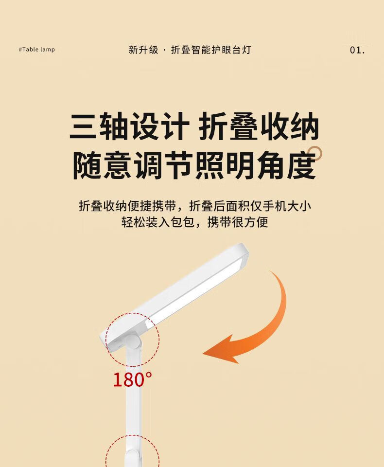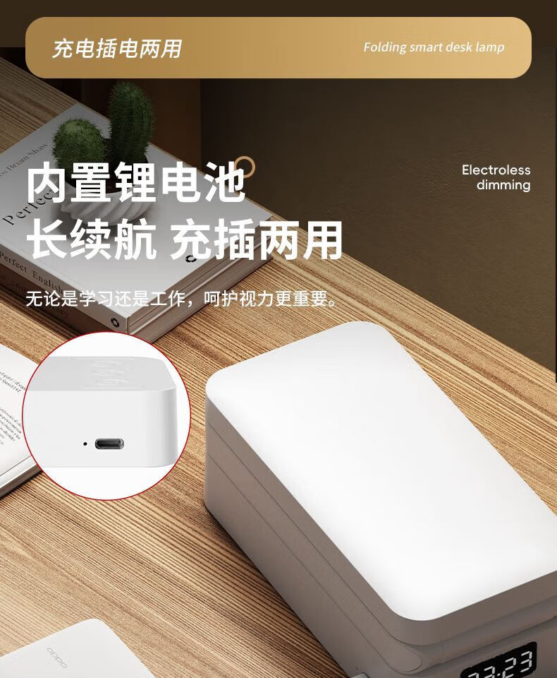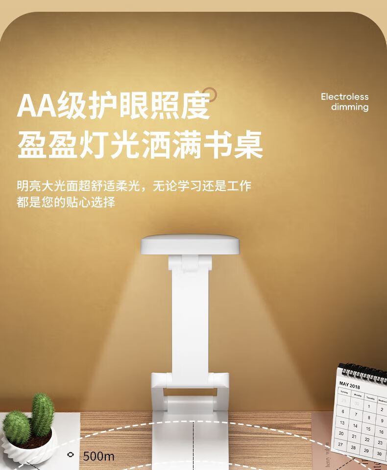 DEATKN德国折叠小台灯护眼学习专用宿舍高中大学生充电超长续航写作 基础版[插电使用]可调光调色