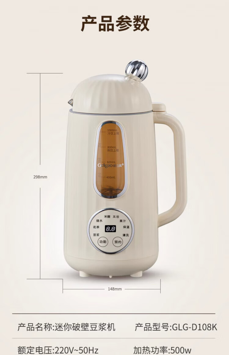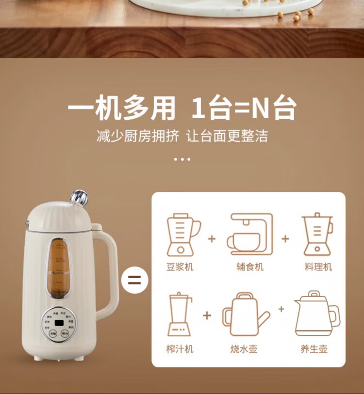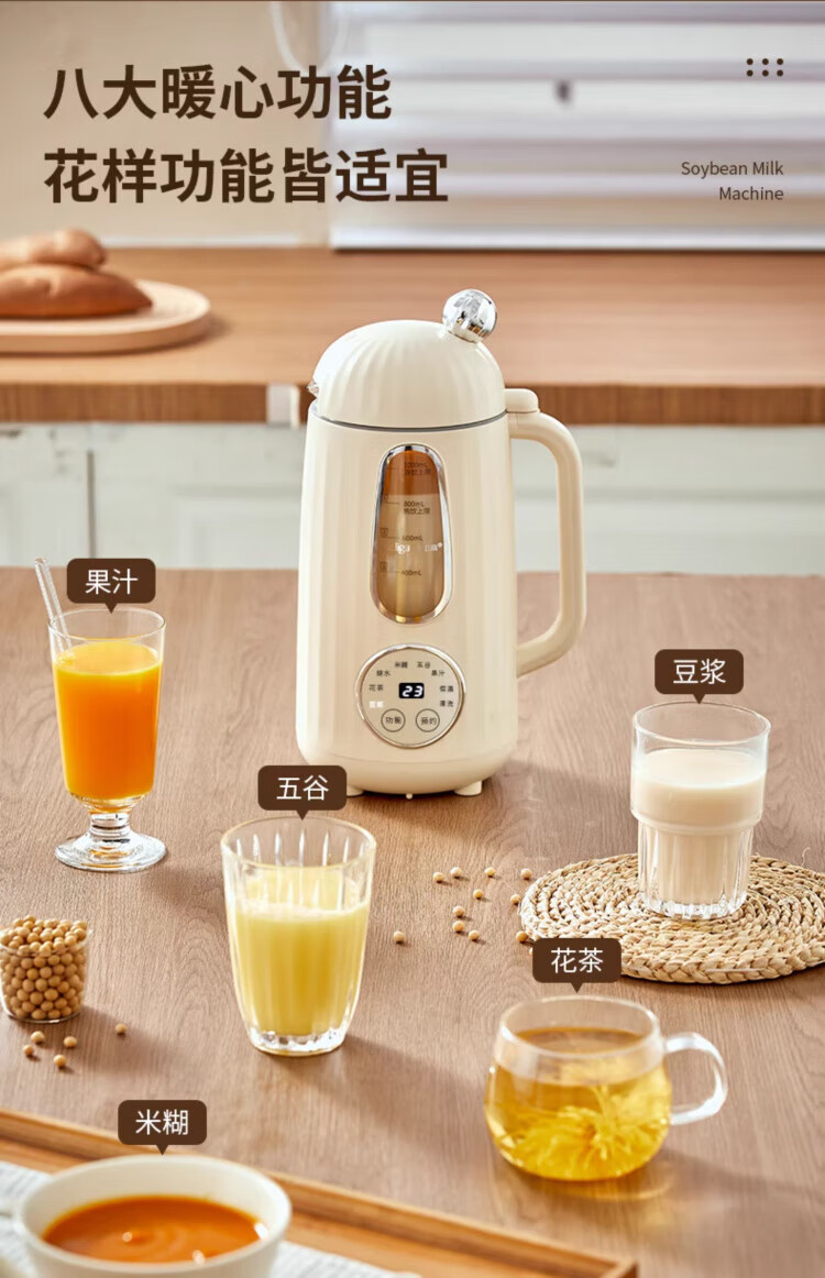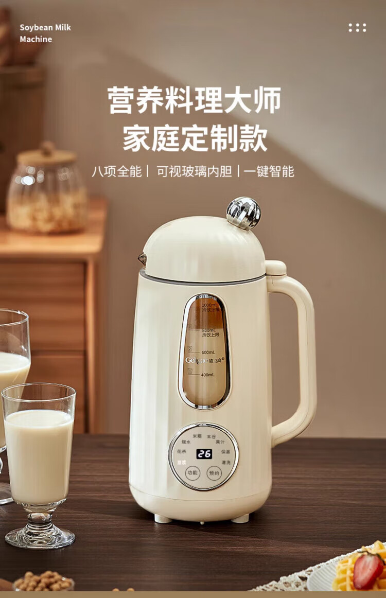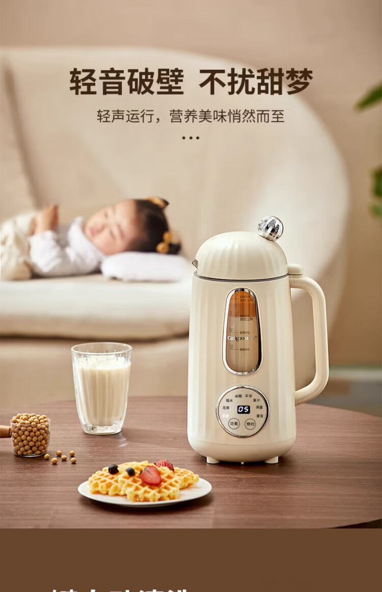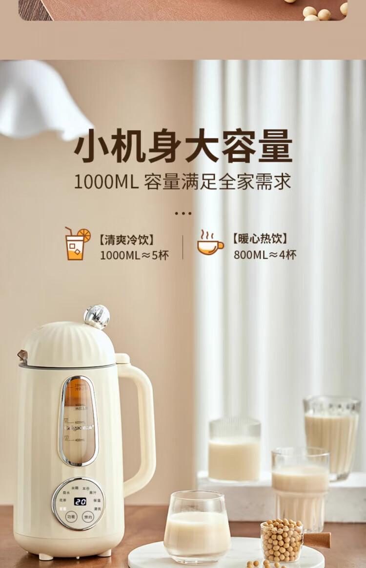 JFHSBS德国破壁机家用多功能迷你小型免煮豆浆机全自动榨汁料理机一体 奶油白 1L