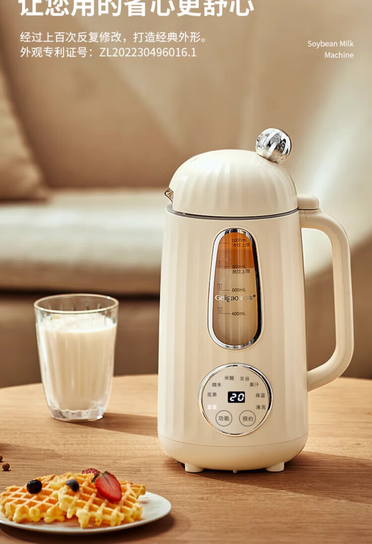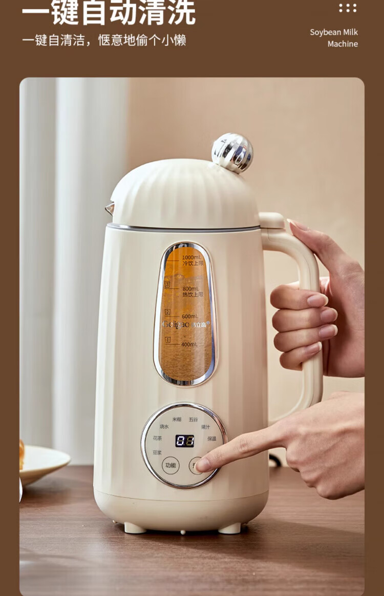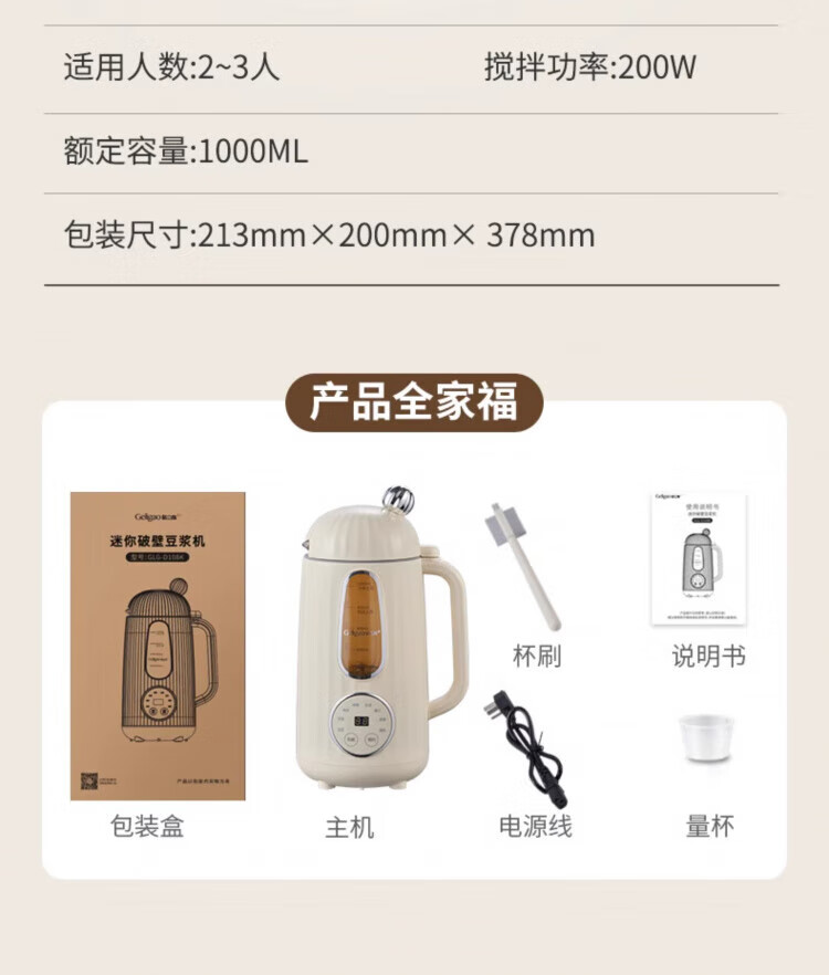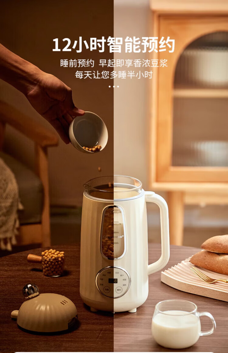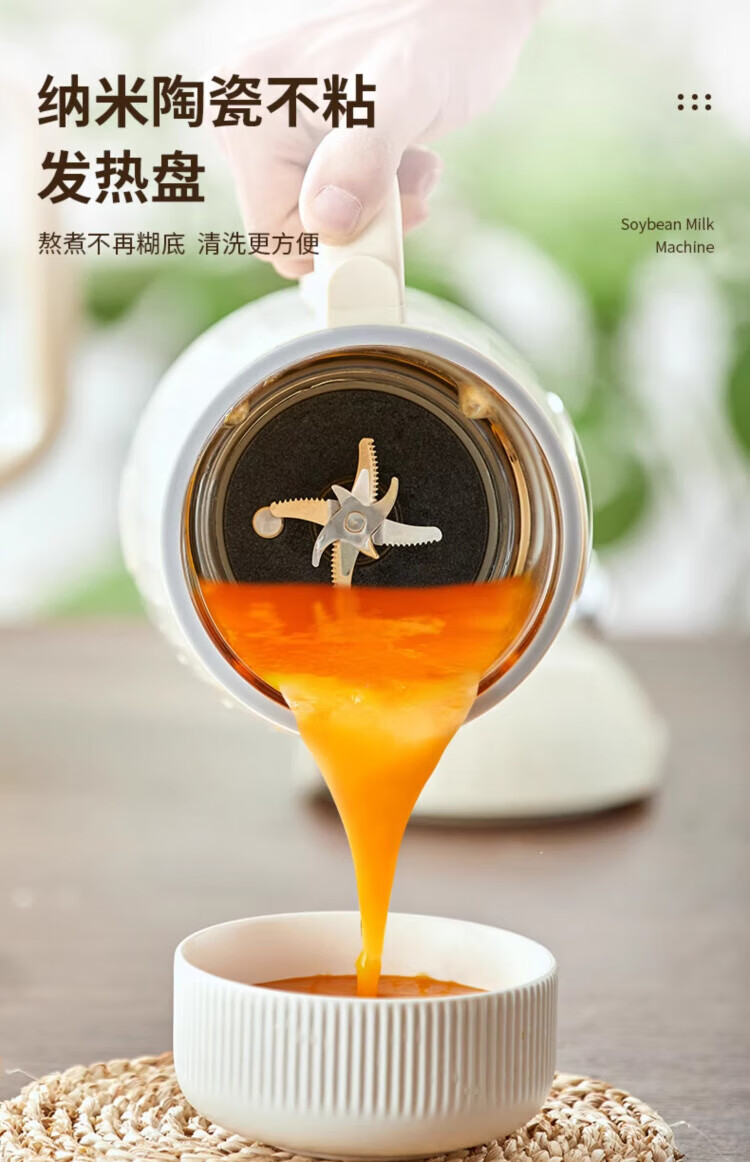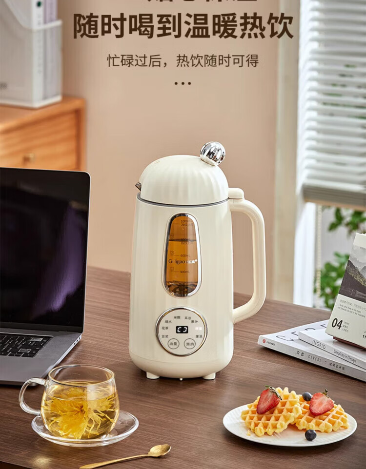 JFHSBS德国破壁机家用多功能迷你小型免煮豆浆机全自动榨汁料理机一体 奶油白 1L