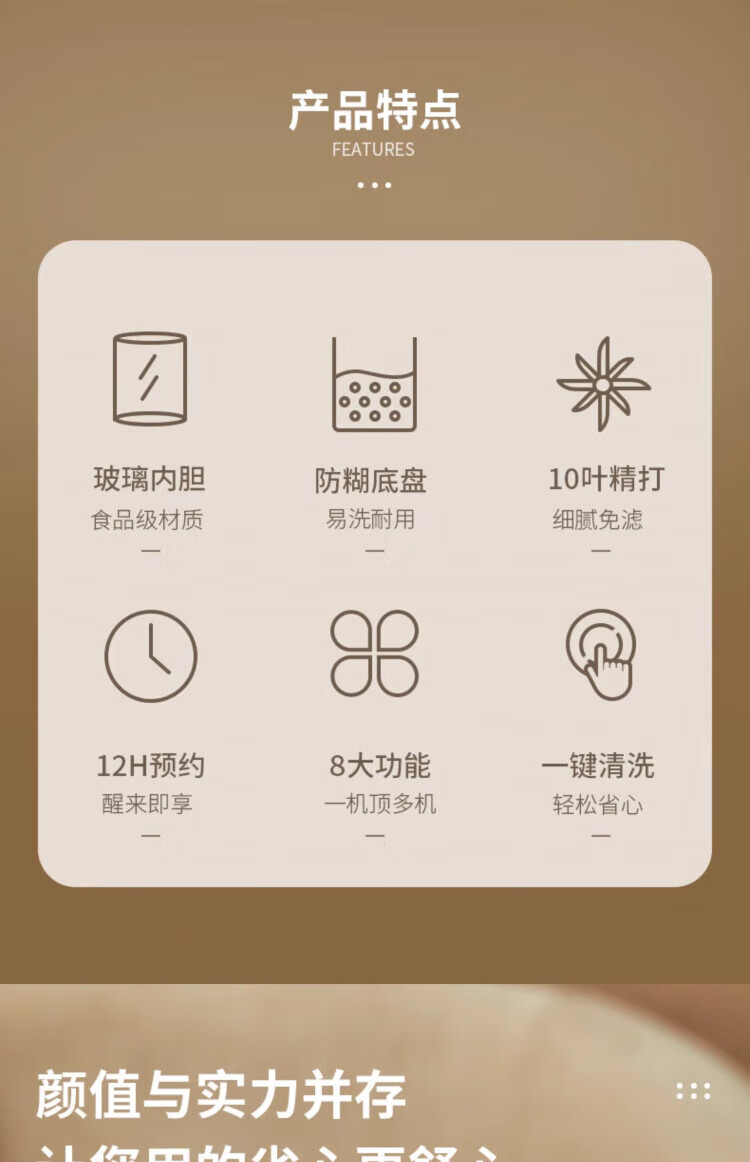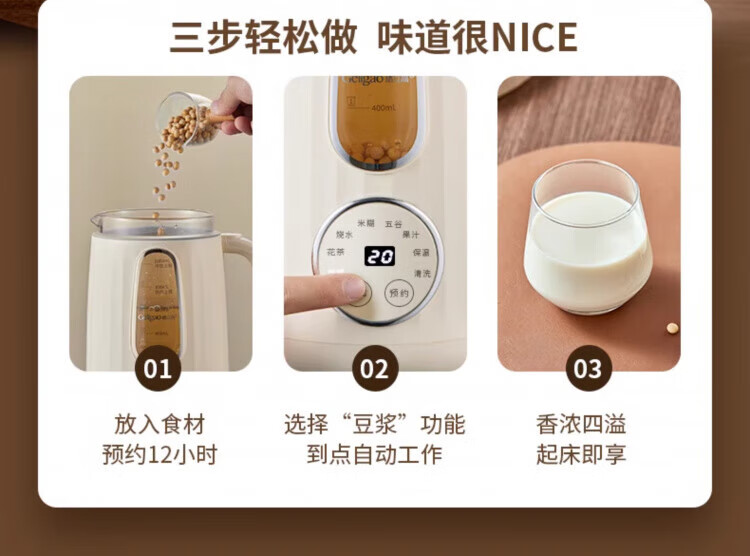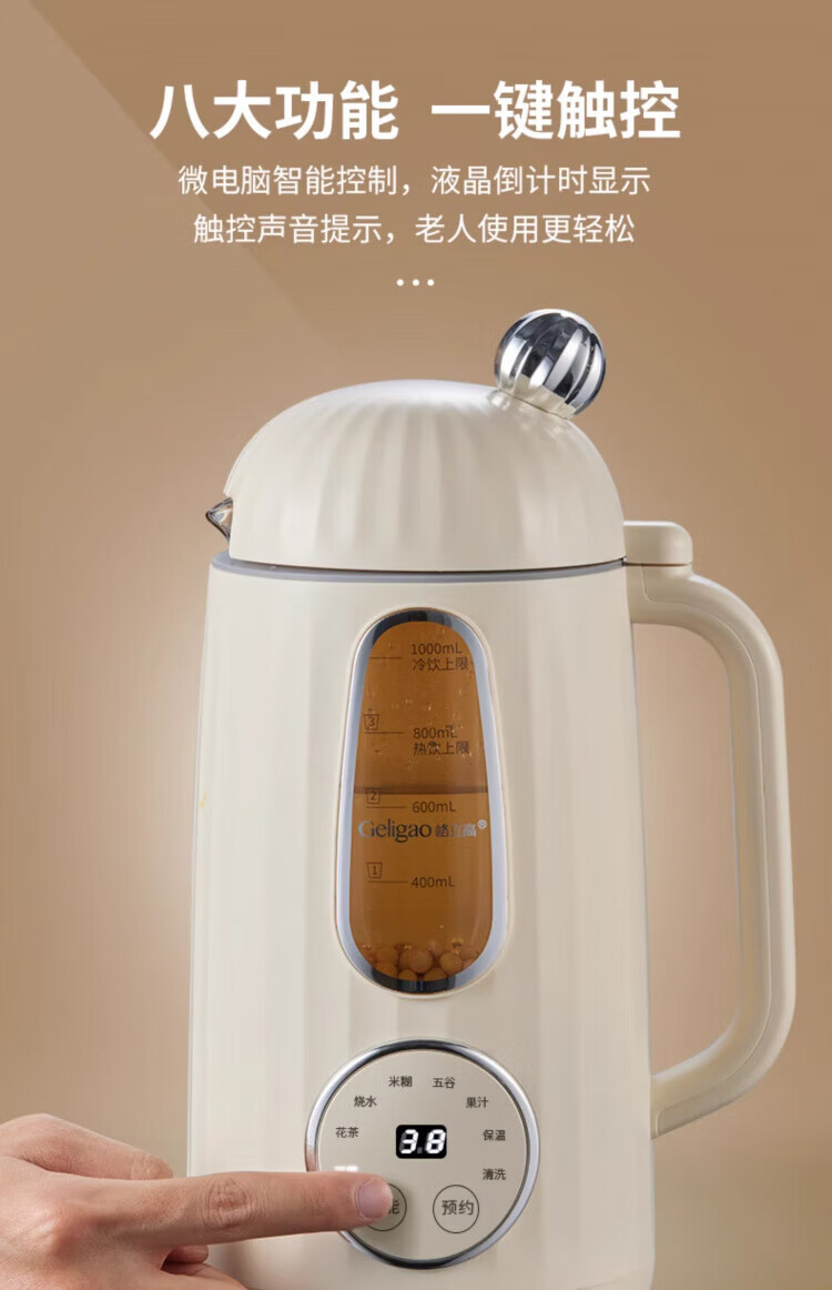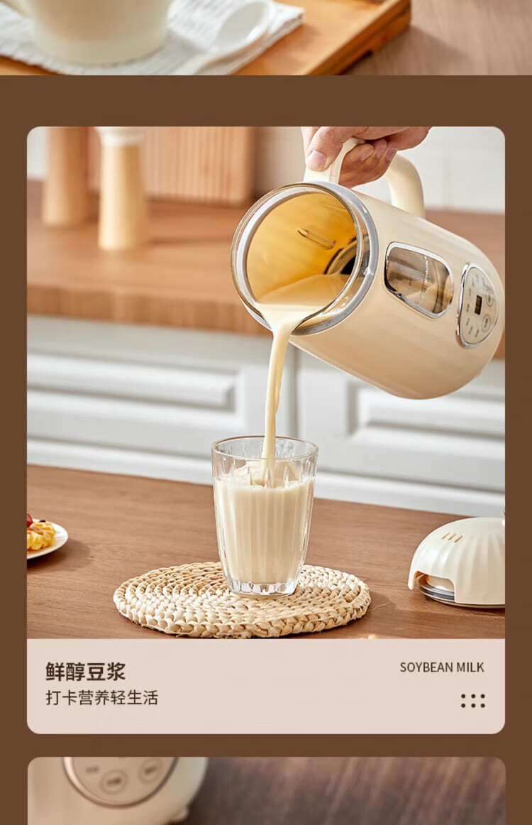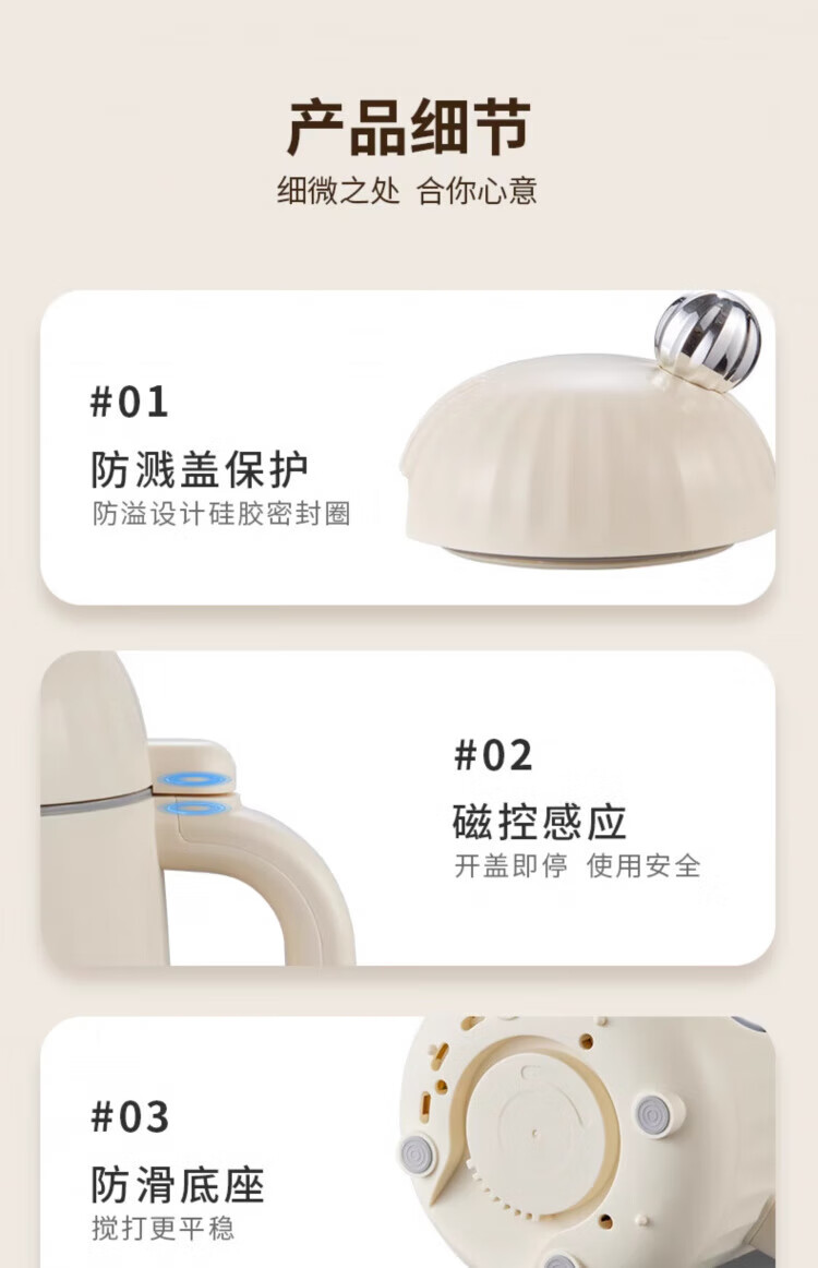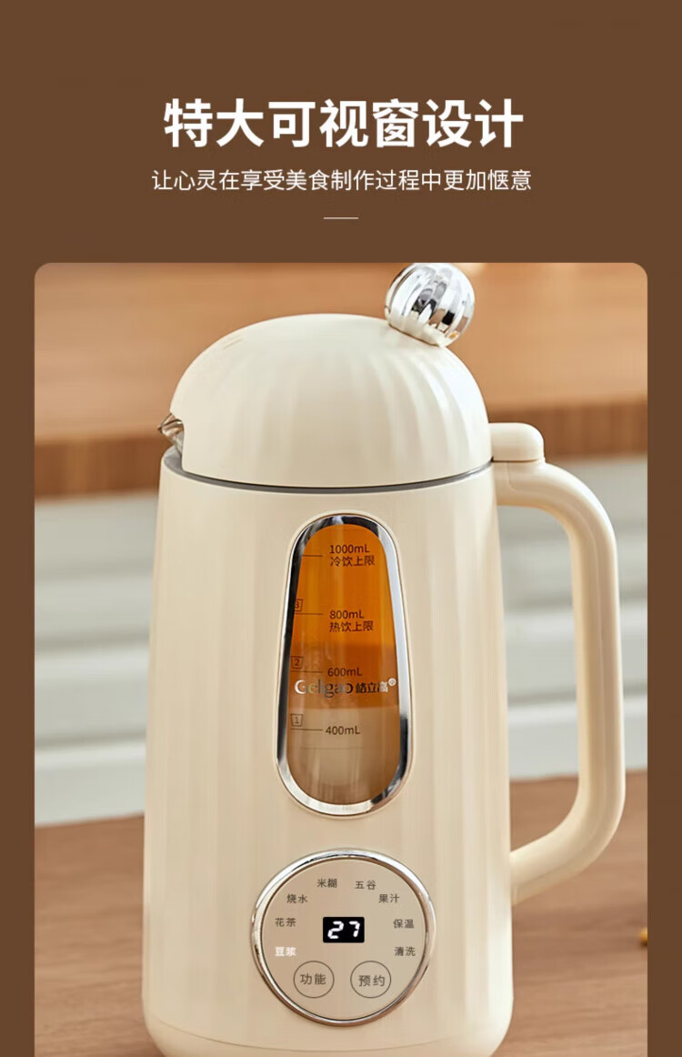 JFHSBS德国破壁机家用多功能迷你小型免煮豆浆机全自动榨汁料理机一体 奶油白 1L