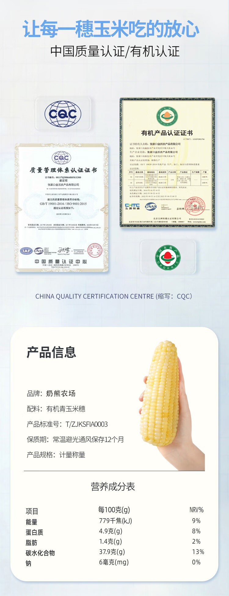 MILKBEAR FARM奶熊农场 黄糯玉米棒 4.16斤 8穗 低脂非东北玉米杂粮早餐礼盒