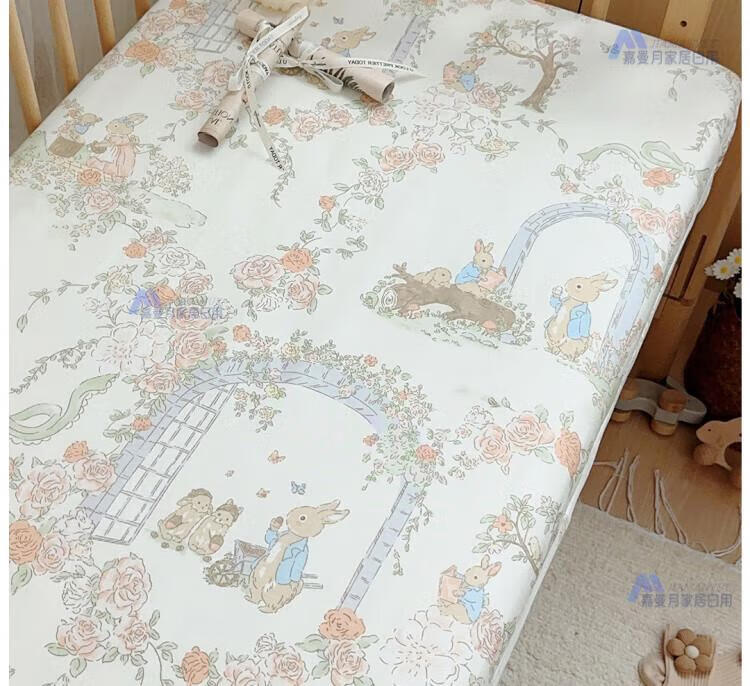 DEATKN日本婴儿床床笠母婴级纯棉床单儿童拼接床垫套罩新生儿宝宝小床笠 仙境花丛 140*70