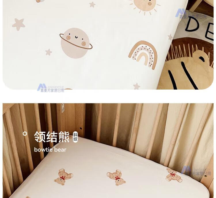 AILUKI日本婴儿床床围栏一片式软包防撞条儿童拼接床围挡布宝宝小床护栏 米色星空熊双面床围【高30cm】 长度100cm
