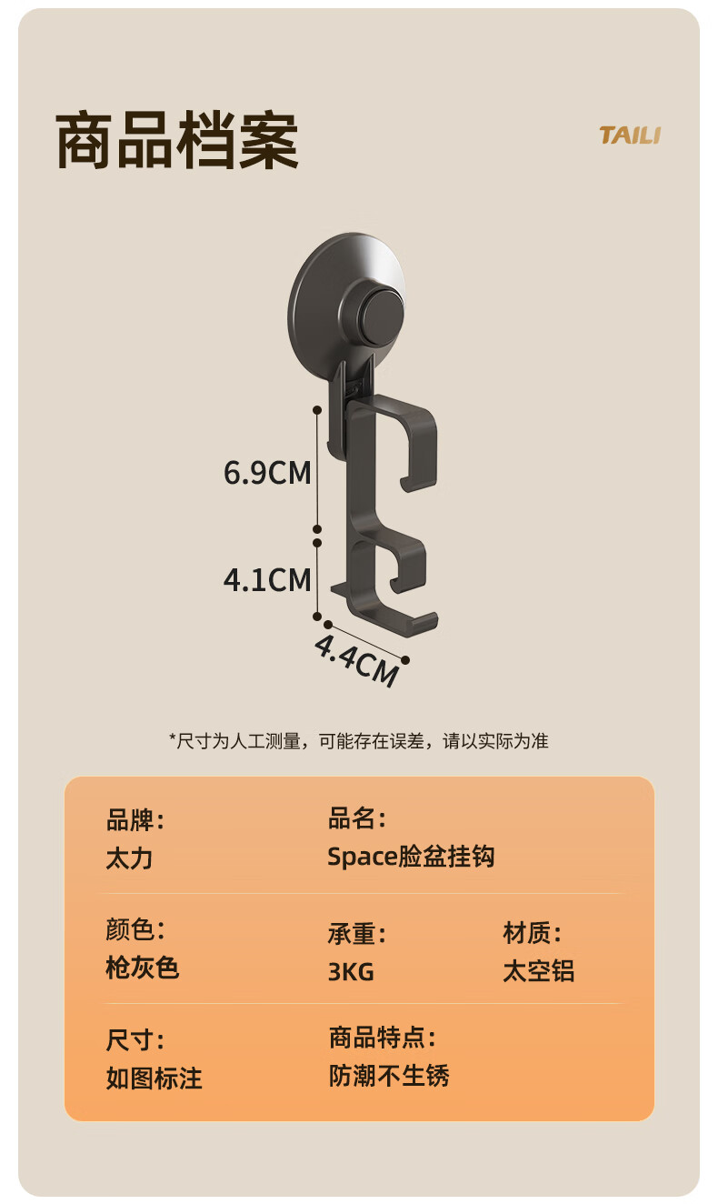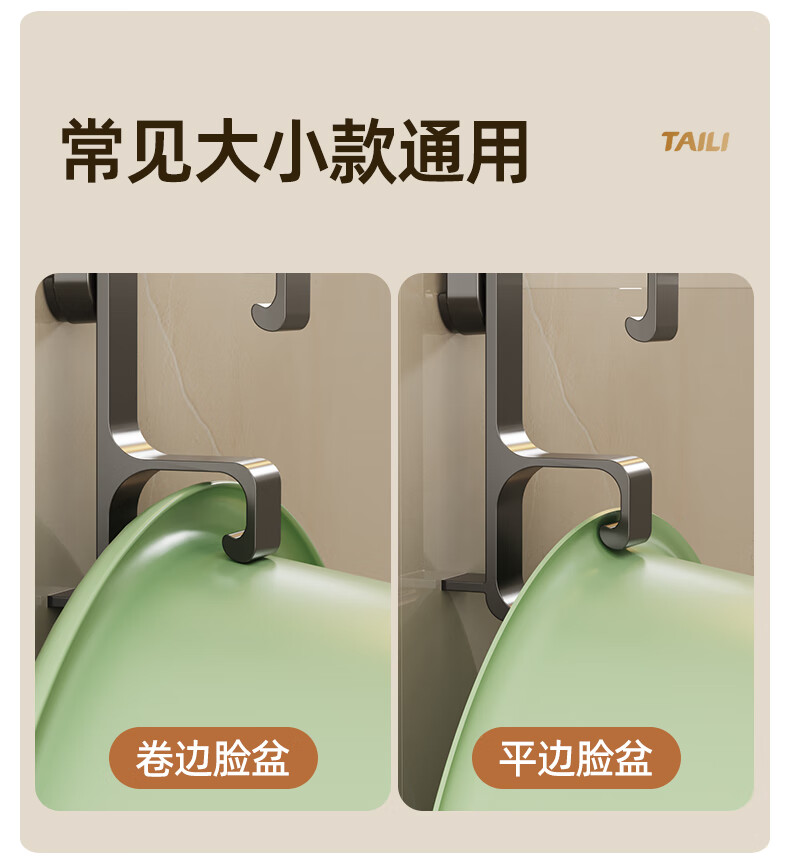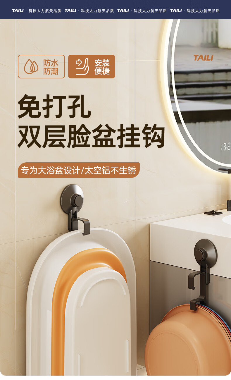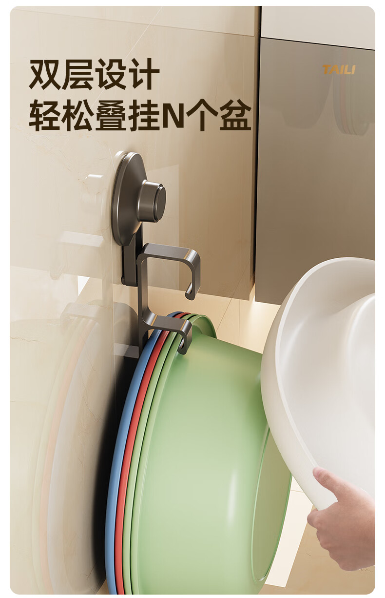 太力Space系列脸盆挂钩免打孔浴室收纳挂钩卫生间脸盆架子 脸盆挂钩【单层1个装】
