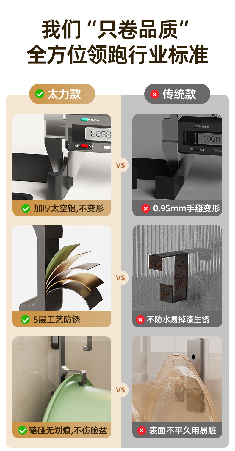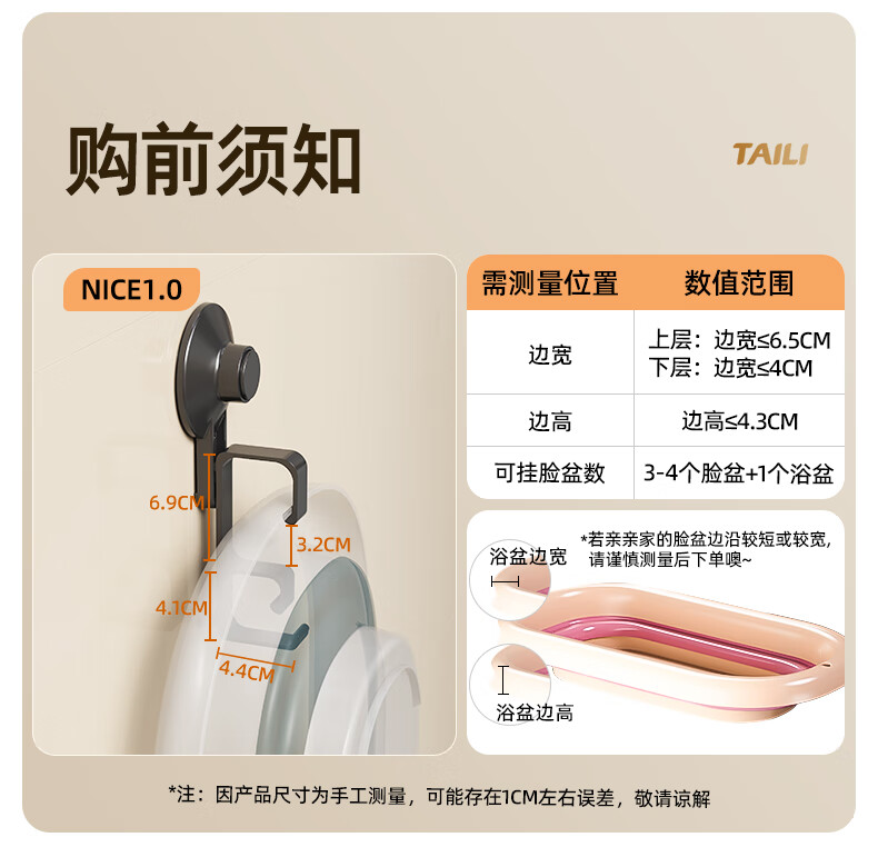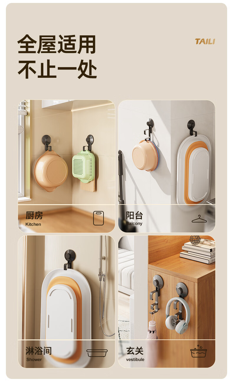 太力Space系列脸盆挂钩免打孔浴室收纳挂钩卫生间脸盆架子 脸盆挂钩【单层1个装】