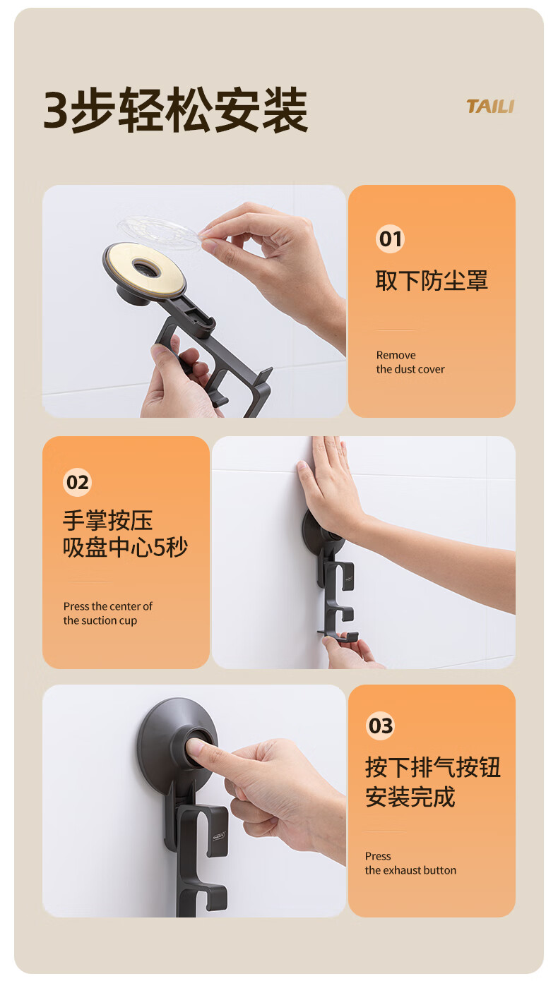 太力吸盘式吹风机置物支架壁挂免打孔带收纳盒徕芬戴森通用电吹风架 象牙白【带沥水收纳盒】