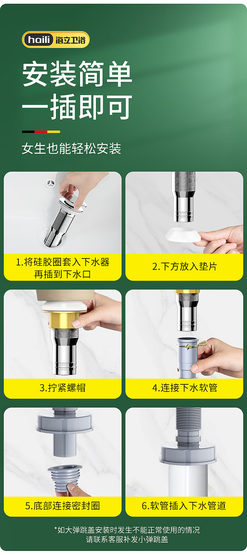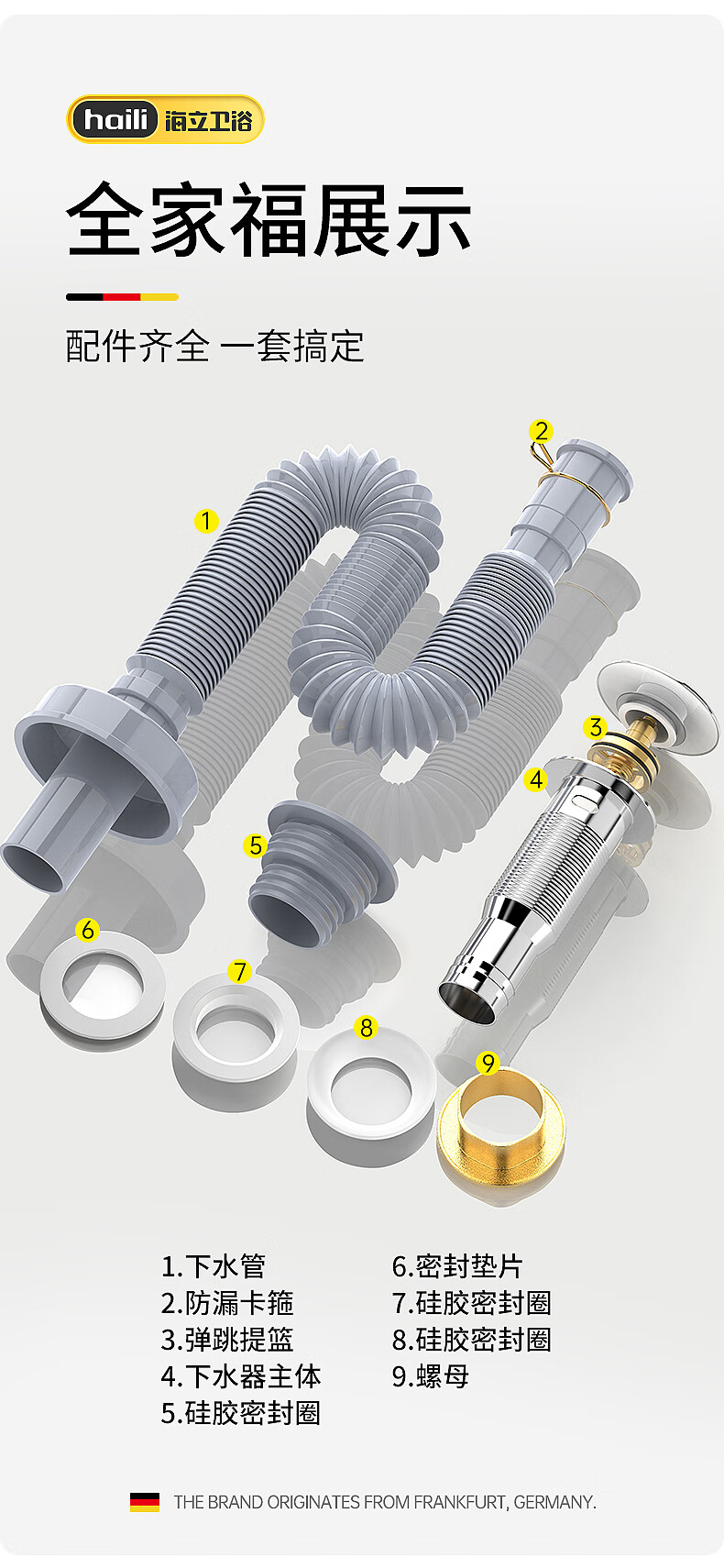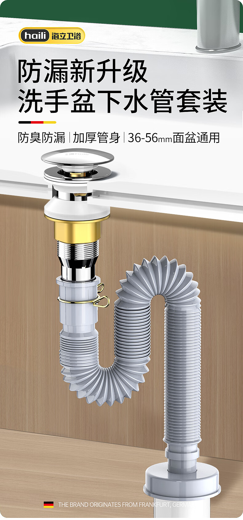 海立洗手盆下水管防臭弹跳下水器套装卫生间洗脸池台盆管墙排MS241