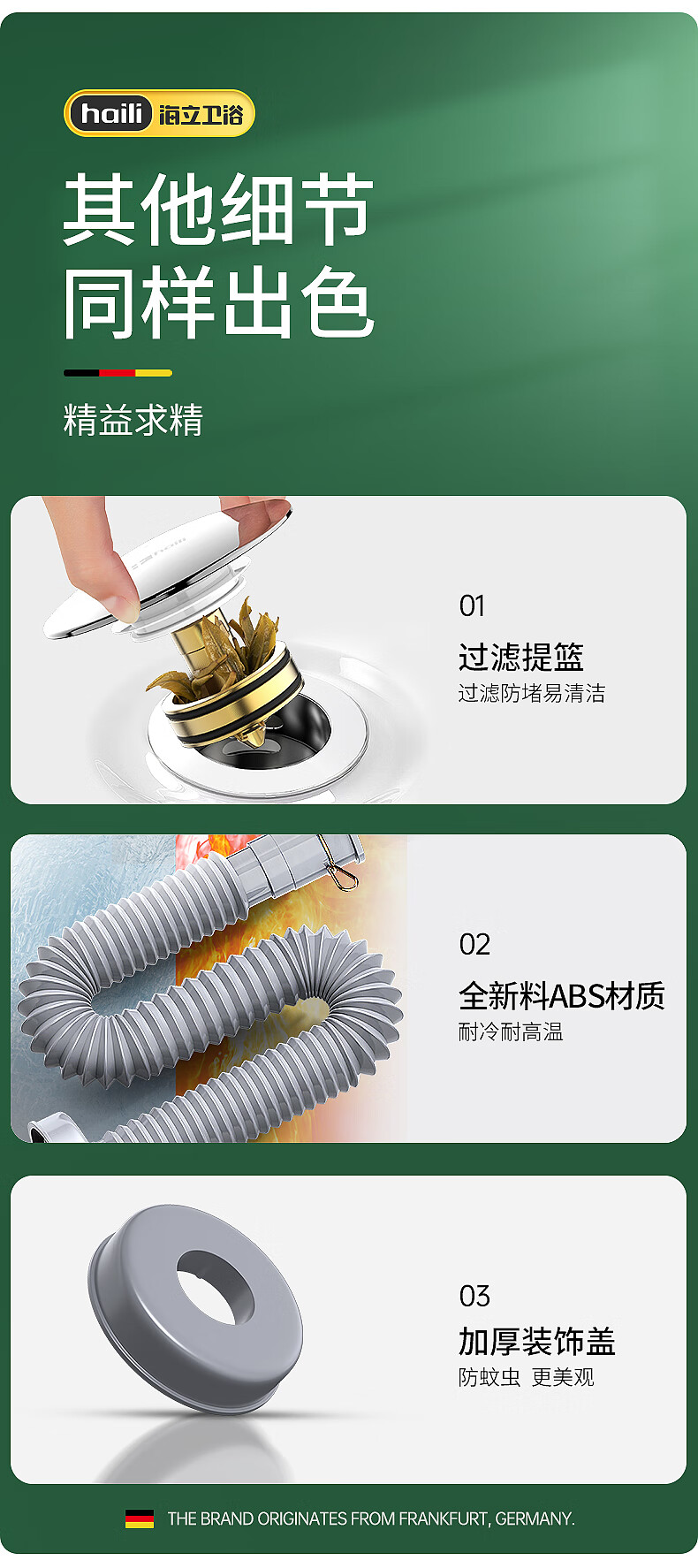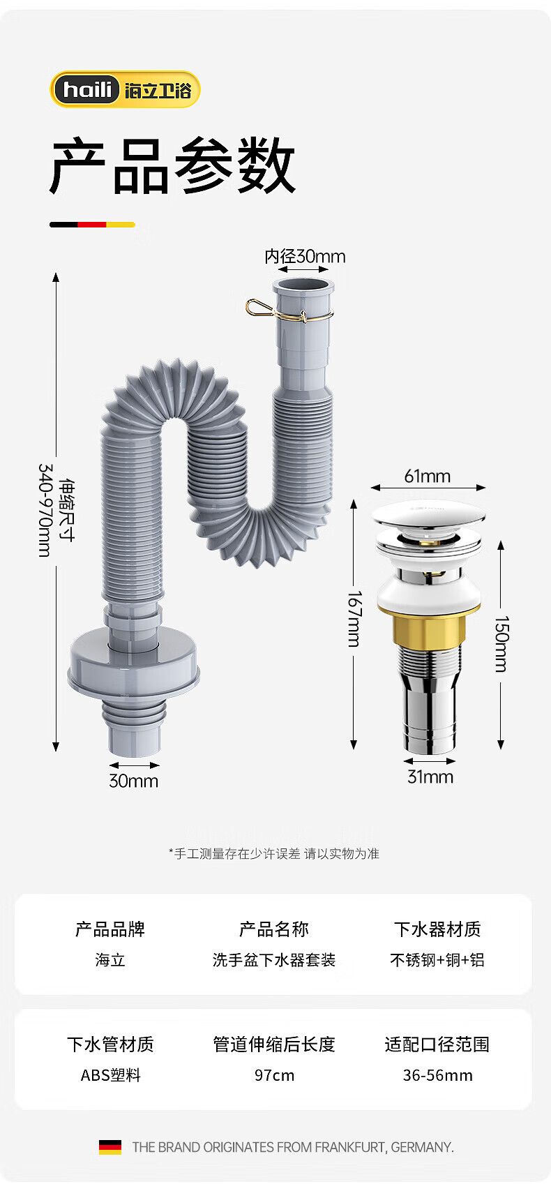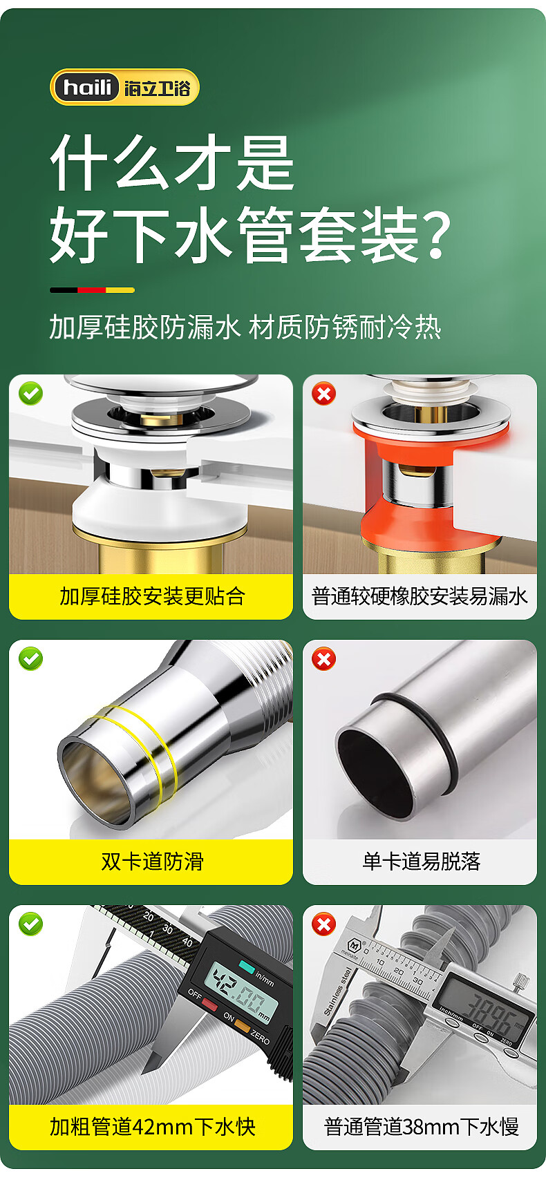 海立洗手盆下水管防臭弹跳下水器套装卫生间洗脸池台盆管墙排MS241