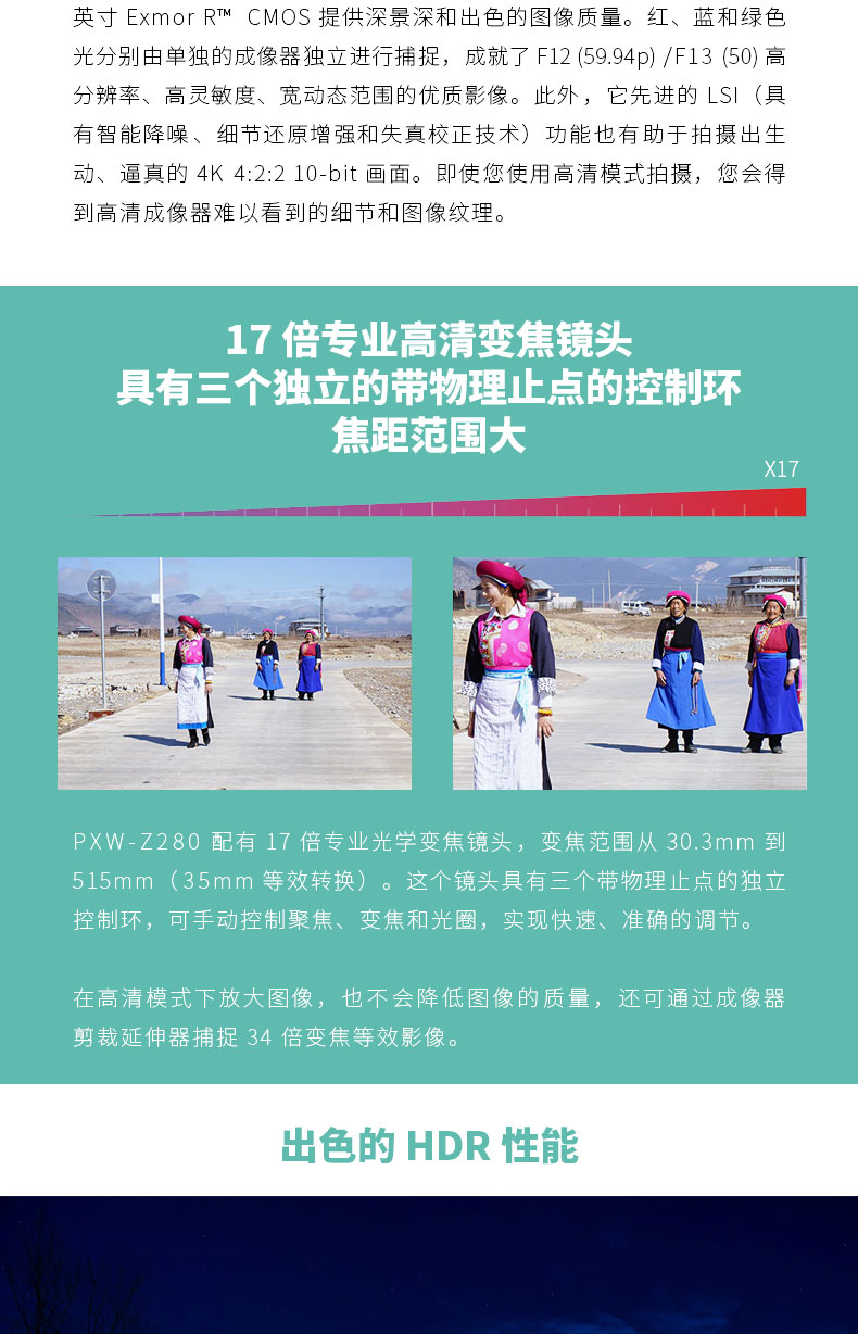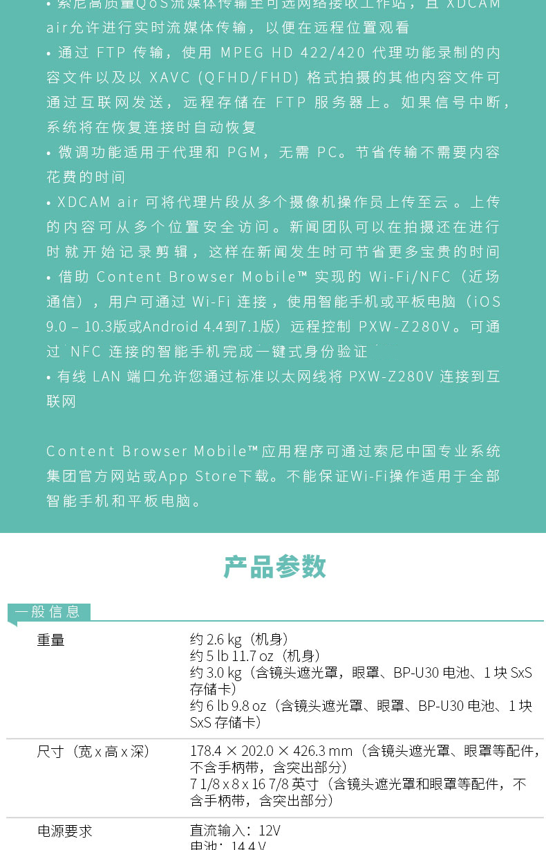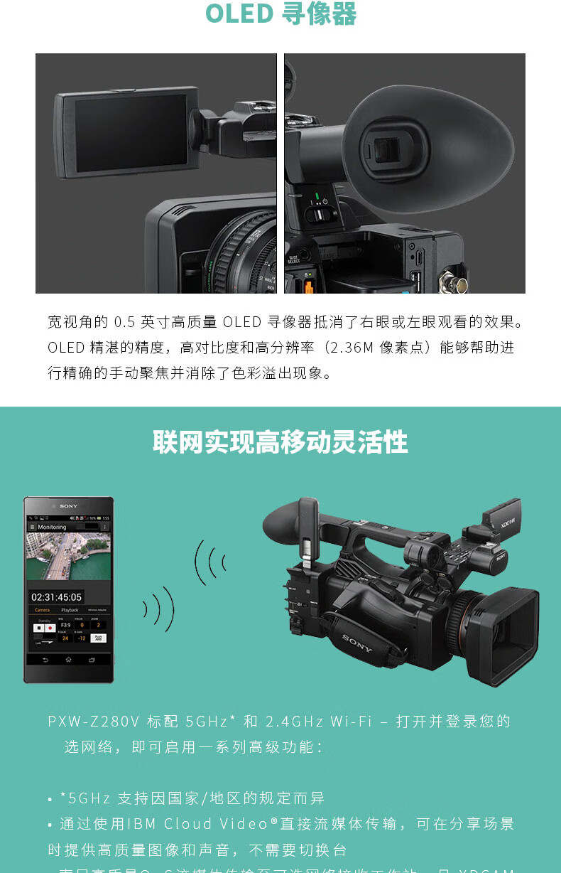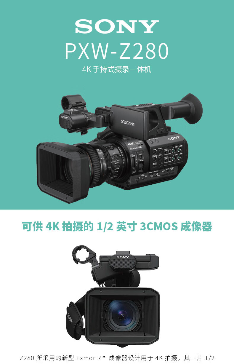 索尼(SONY)PXW-Z280V(双电池套装)4K专业摄像机1/2英寸3CMOS /12GSDI/S-LOG3新闻/纪录片/电视台推荐型号