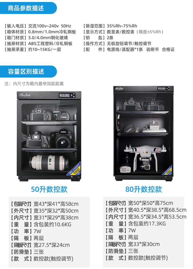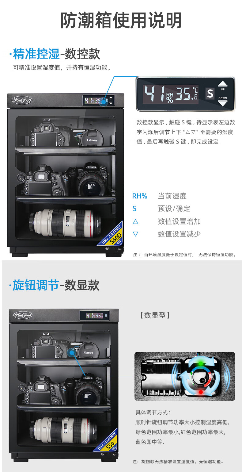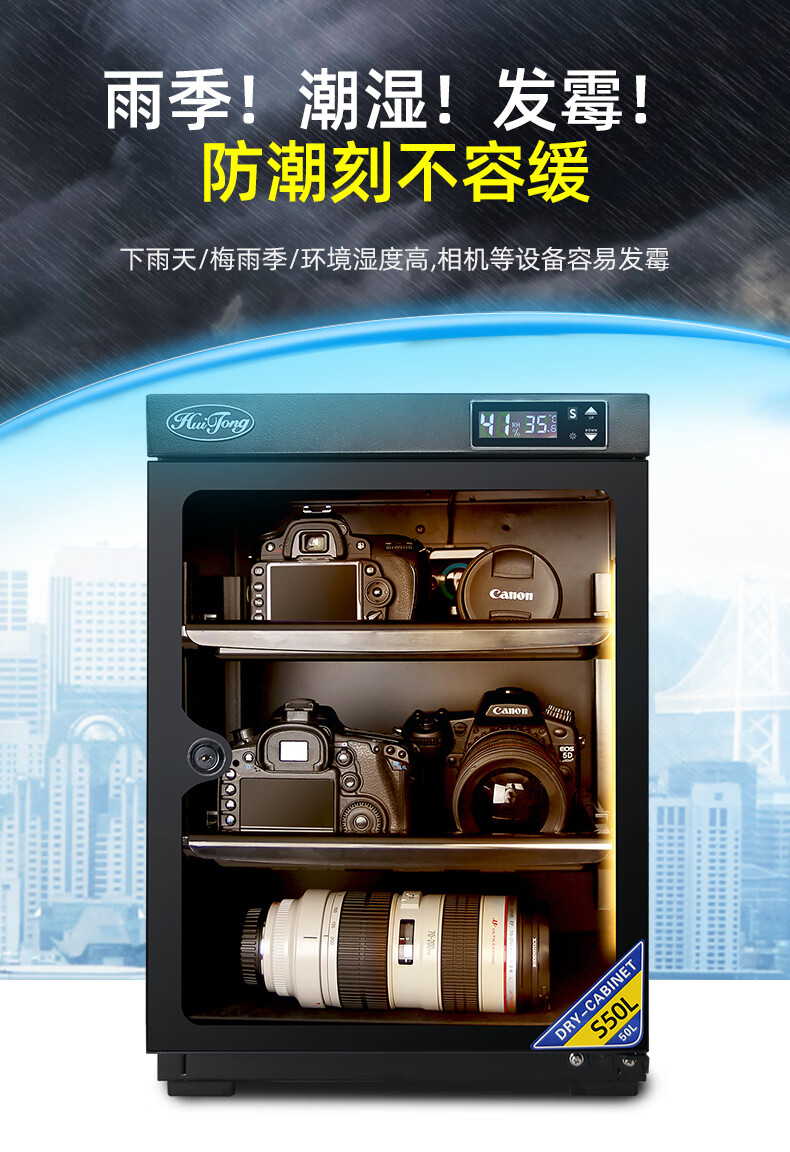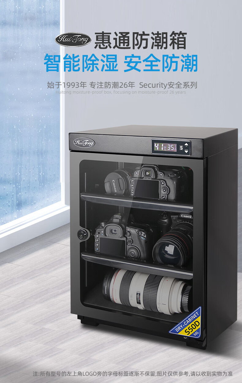 HuiTong 惠通防潮箱50/80/100/300L单反相机镜头办公家用电子除湿柜邮票茶叶干燥箱 【S50D数控型】+送镜头垫