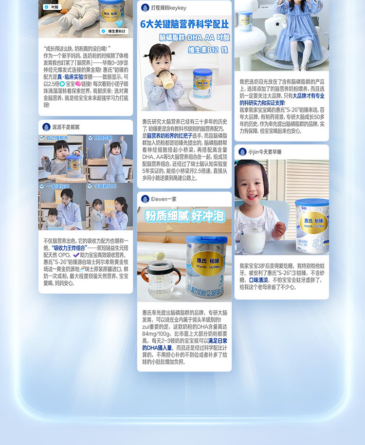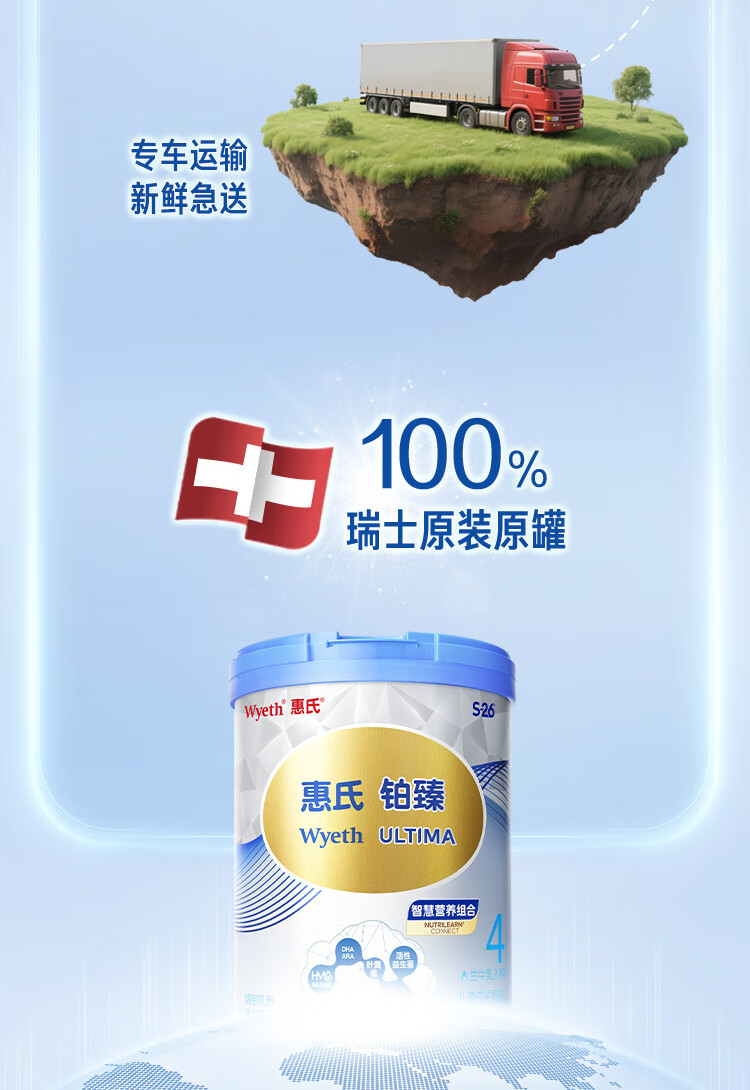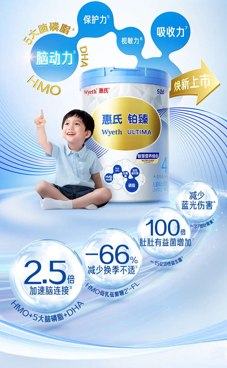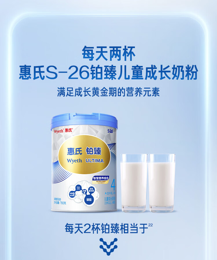 惠氏(Wyeth)铂臻助力脑力学习进口DHA儿童成长奶粉4段(3岁以上)780g